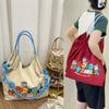 La bolsa tiene una abertura con cremallera, un bolsillo interior y un diseño de correa de hombro contrastante, estilo ins