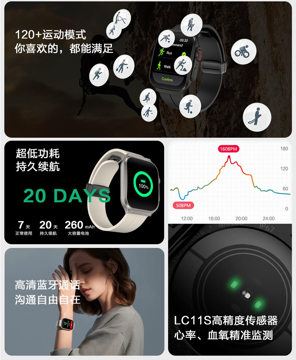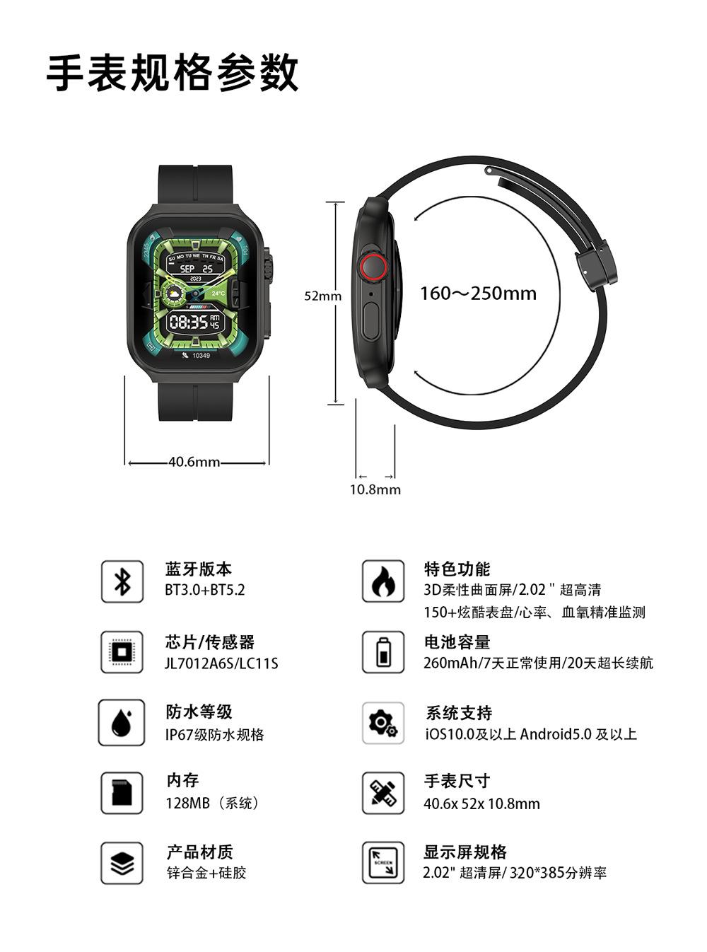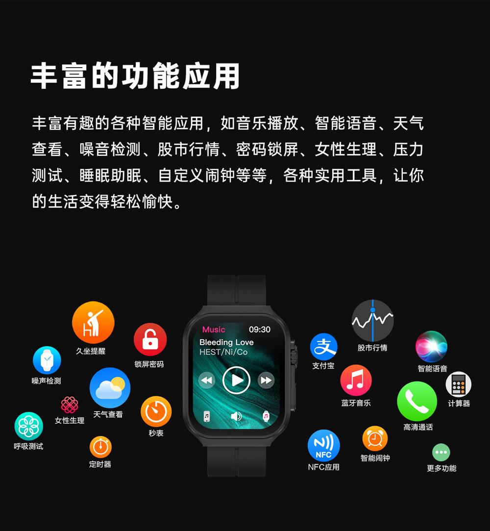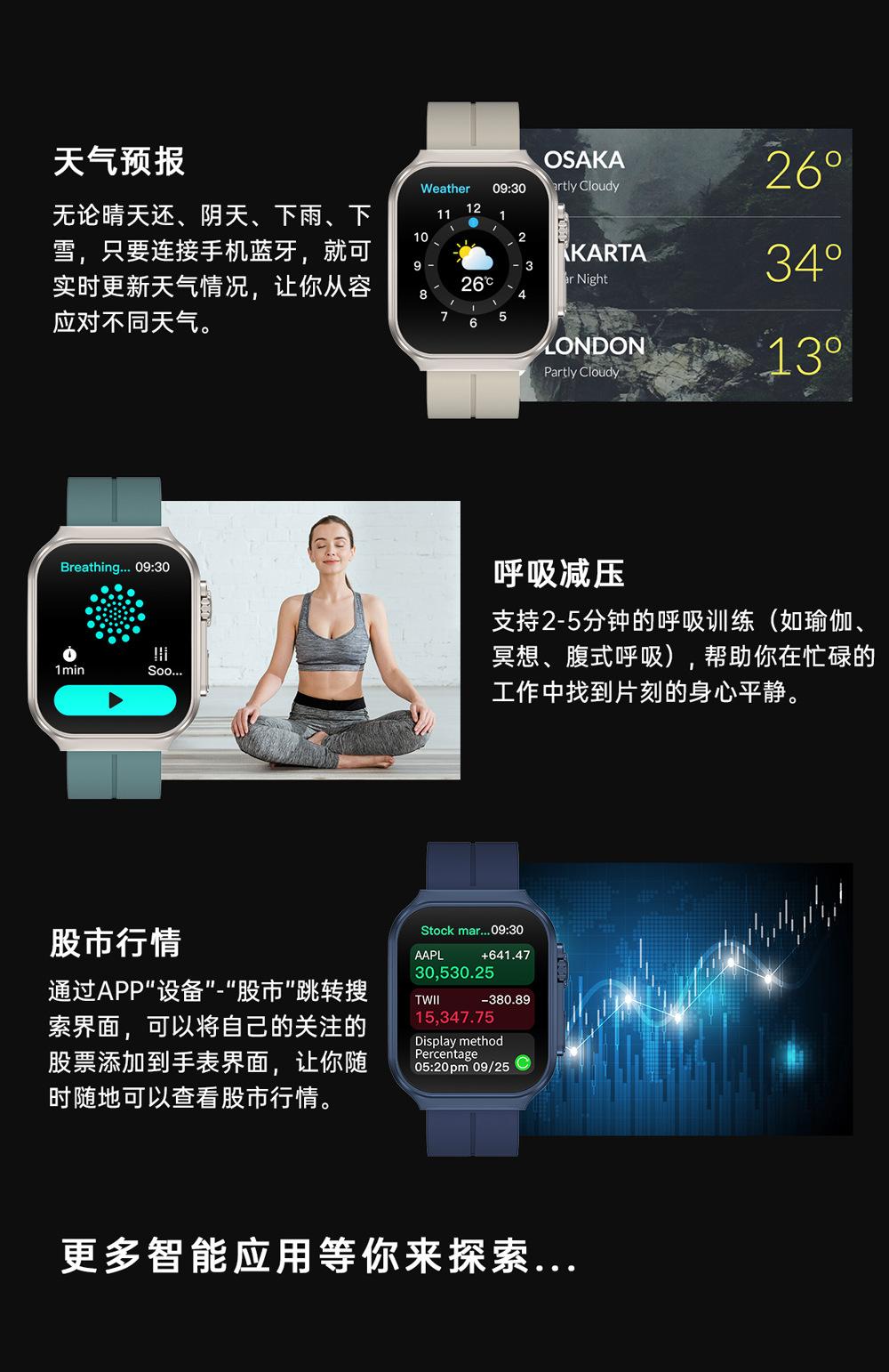 Waterproof, Take photos, Step counting, Heart rate monitoring, Blood pressure measurement, Social Entertainmen...