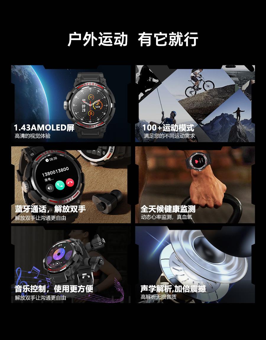 Heart rate monitoring, Blood pressure measurement, Social Entertainment, Measuring body temperature, Bluetooth...