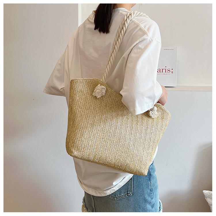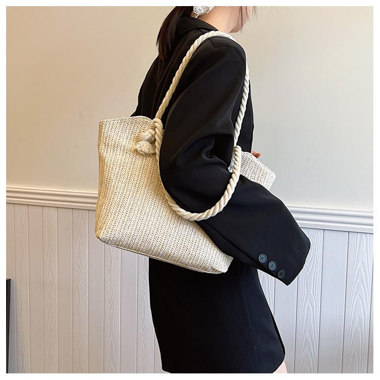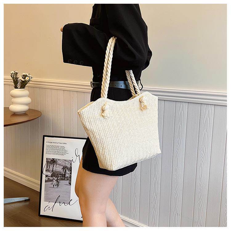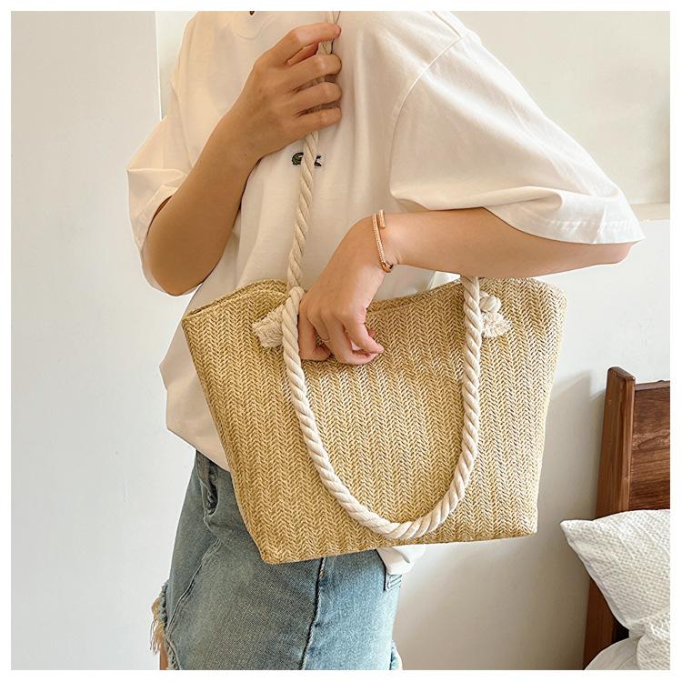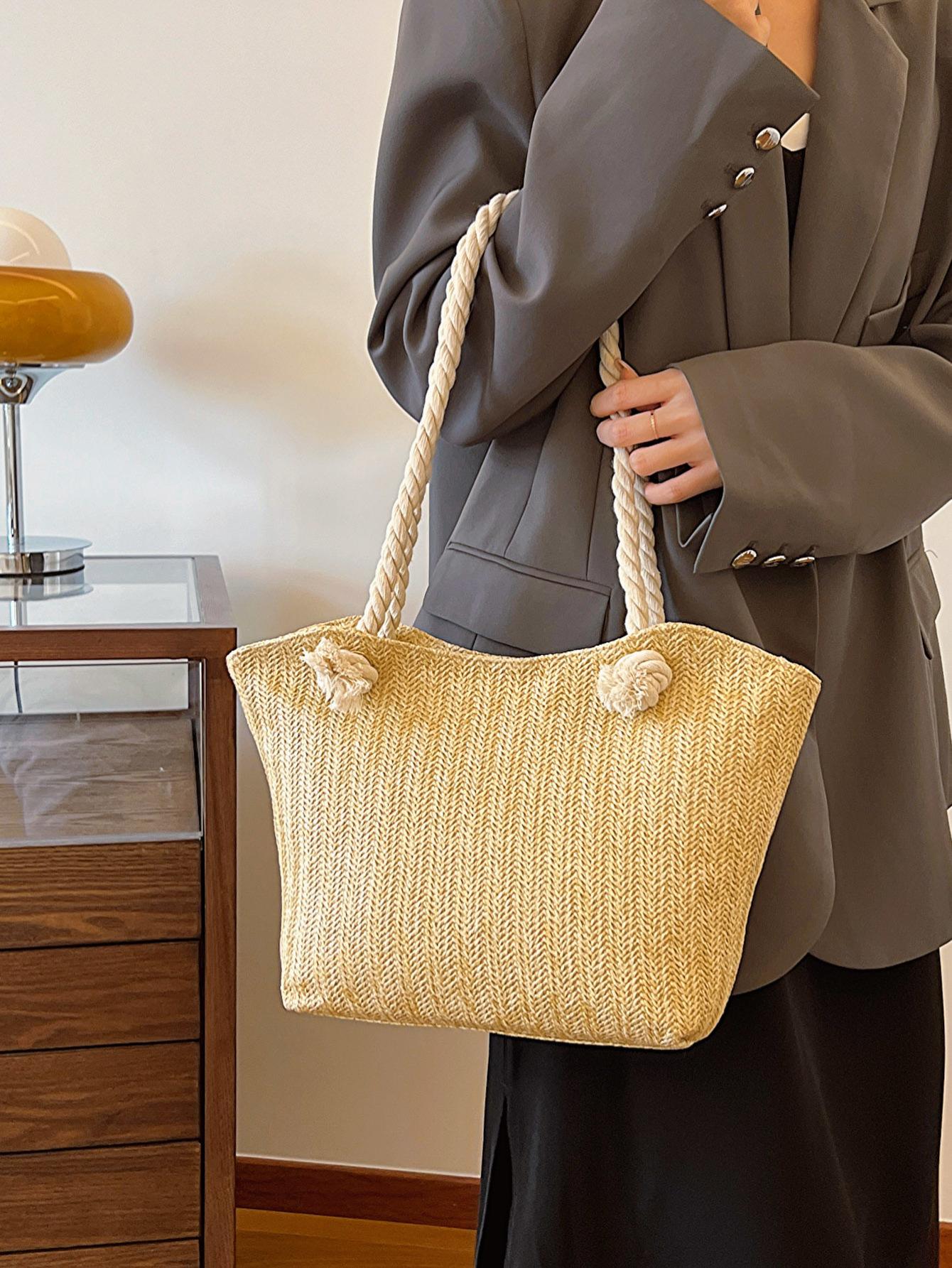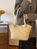 Bolso de paja tejido de gran capacidad, nuevo y elegante bolso de mano portátil para vacaciones, bolso de hombro moderno y combinable.