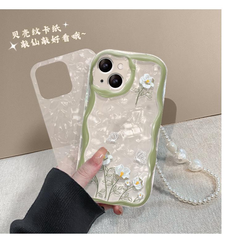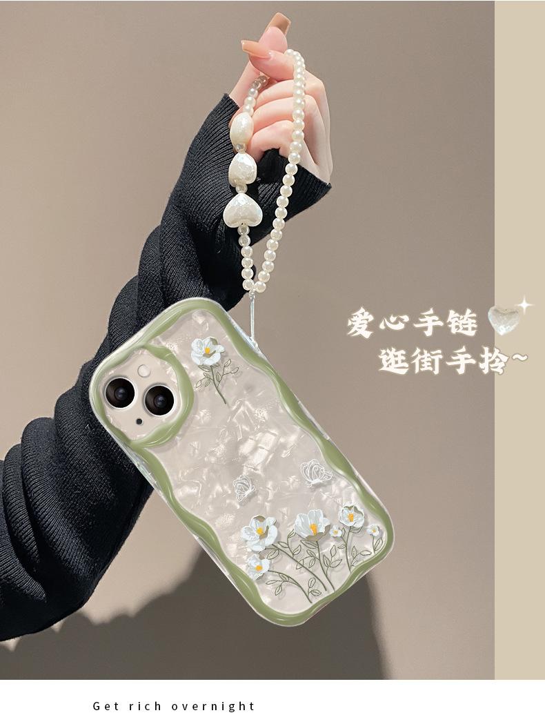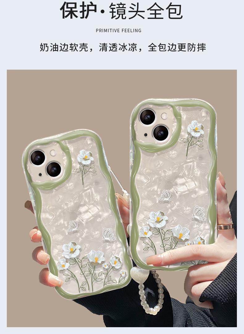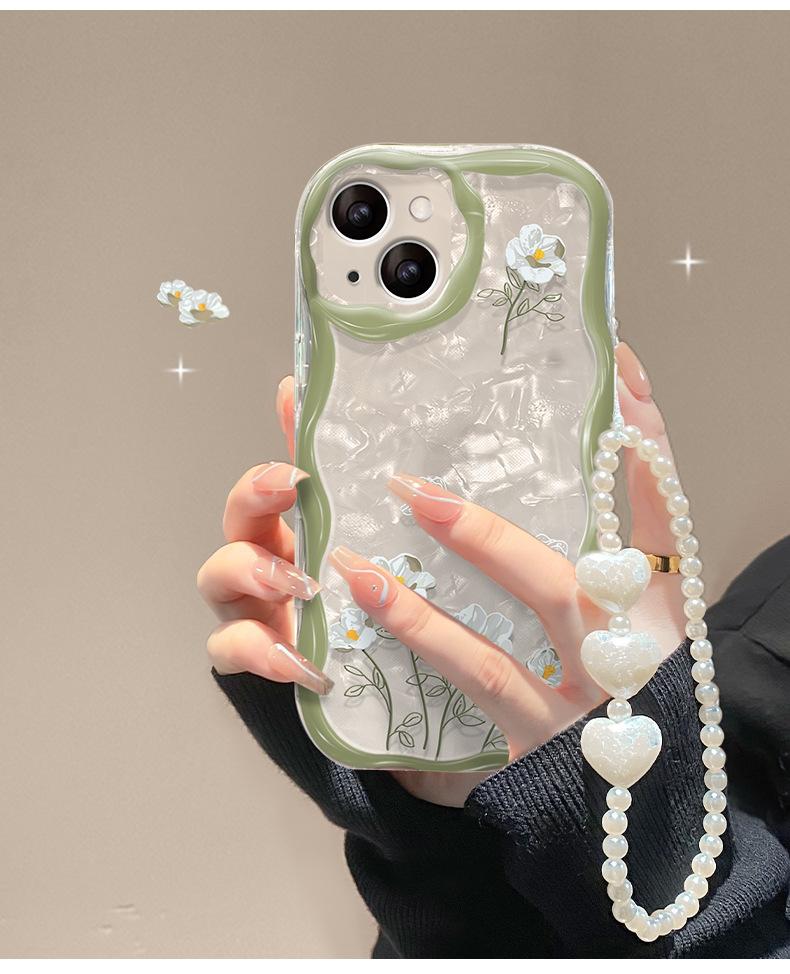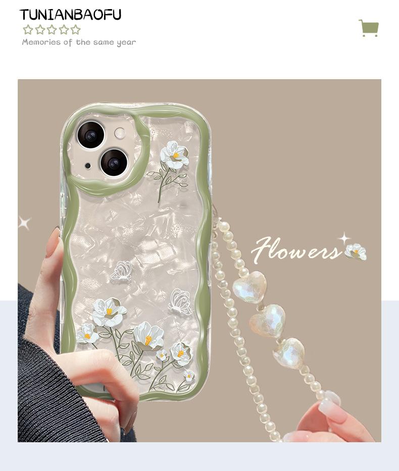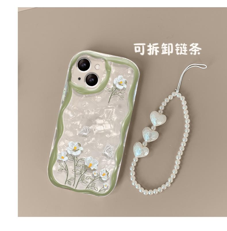 Cadena de flores de ramo blanco adecuada para funda de teléfono móvil iPhone 14/13 Apple 15promax transparente 7/8Plus silicona
