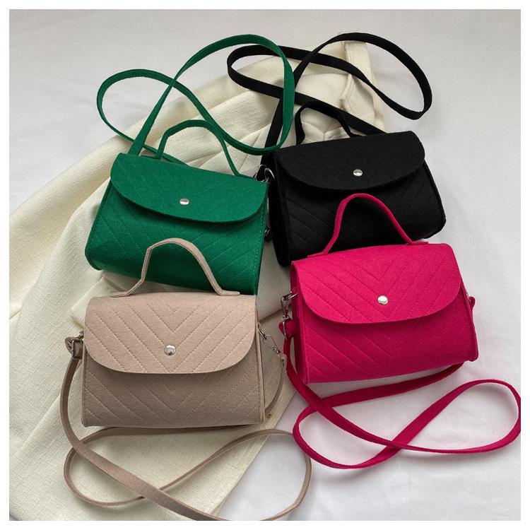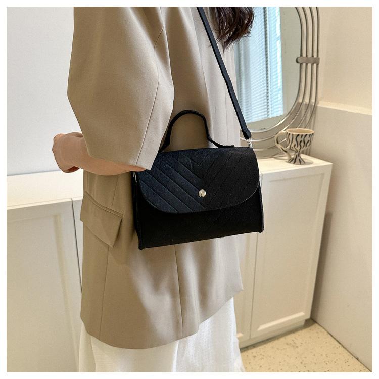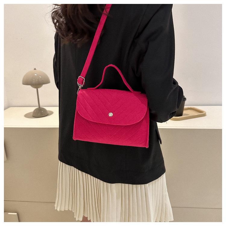 Bolso Cuadrado Pequeño de Fieltro de Color Sólido a la Moda 2023 Estilo Coreano Moderno Simple Bolso de Mano Textura Moda Casual Bolso de Hombro