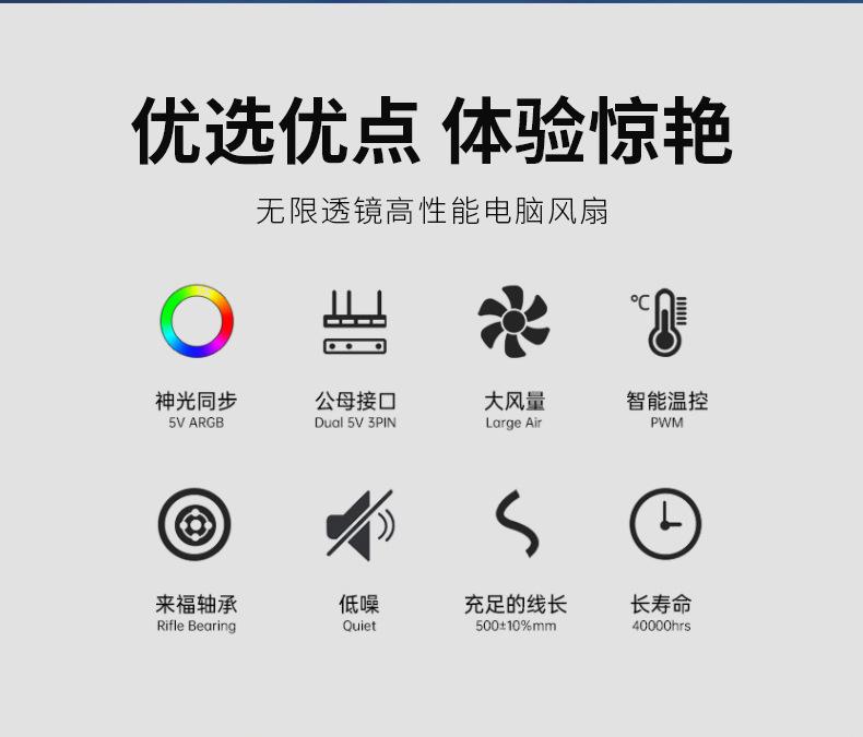 Radiador de chasis de color mágico host de computadora de escritorio transfronterizo ARGB shuang control de temperatura PWM sincrónico ventilador silencioso