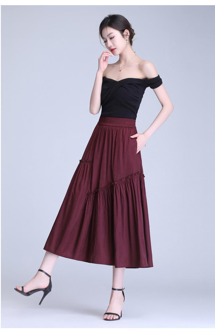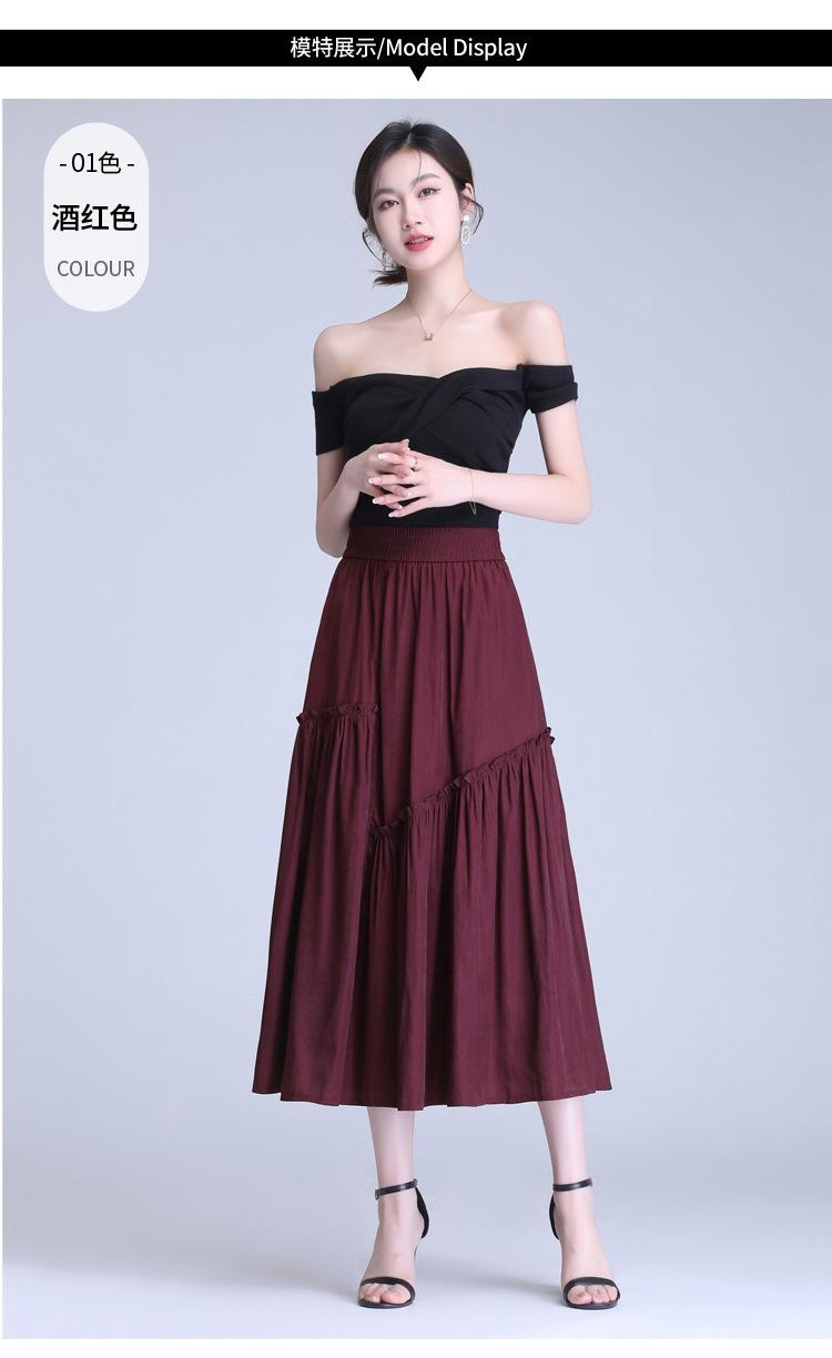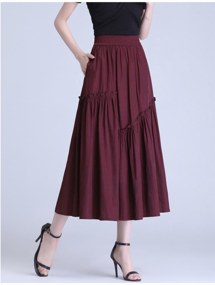 Verano 2025 Nueva Falda Casual Grande Acampanada Plisada A-Line de Cintura Alta para Viajero Parcheada Midi