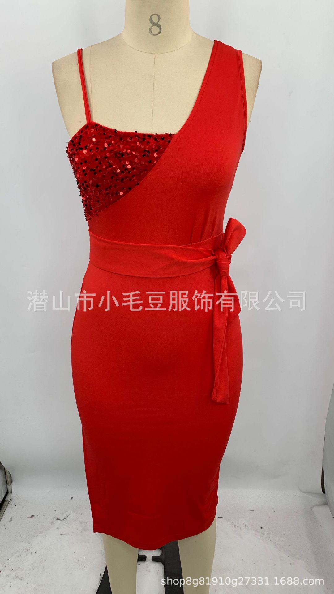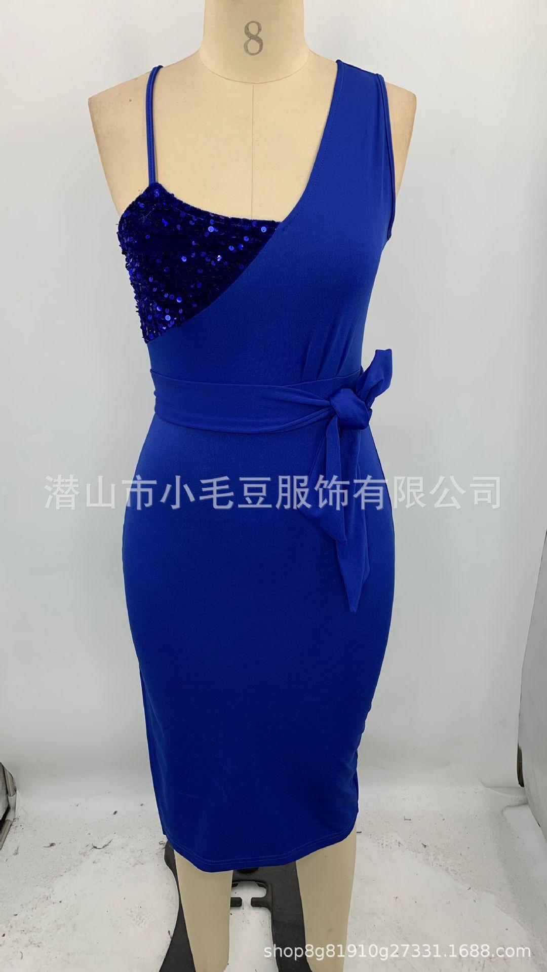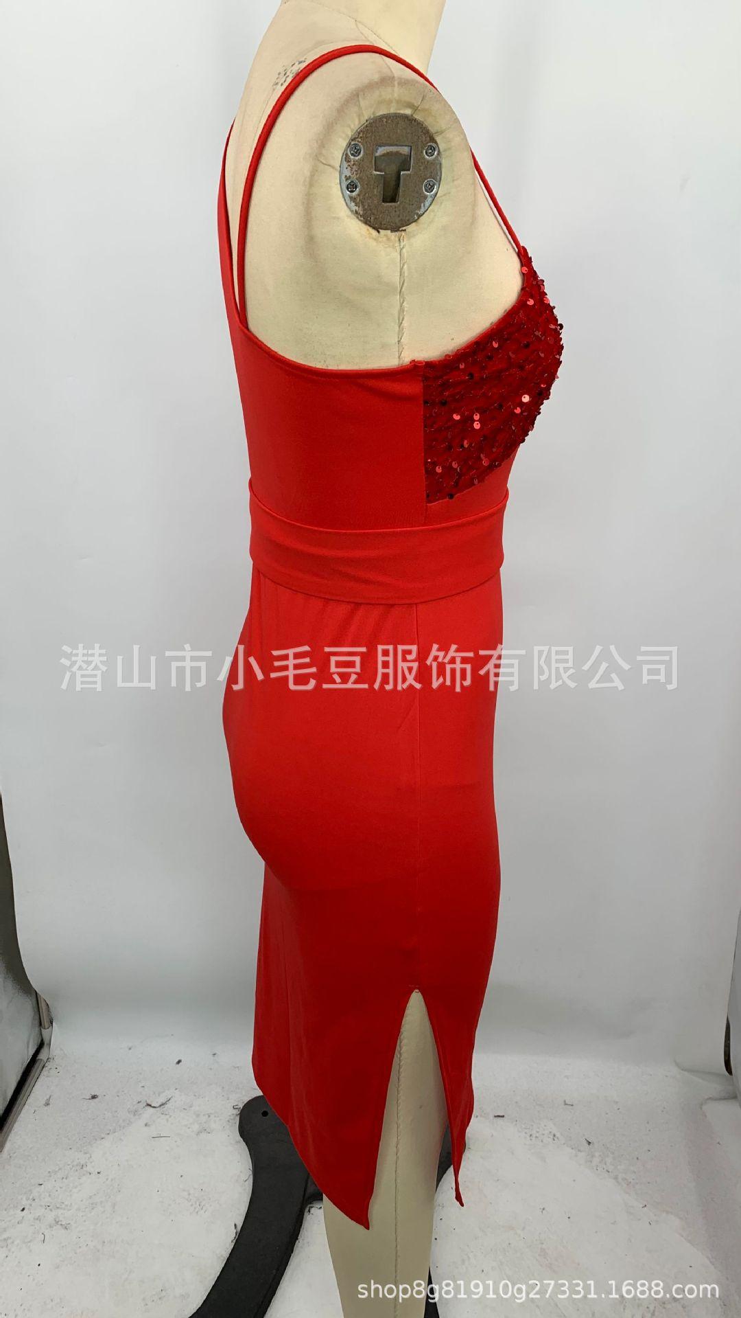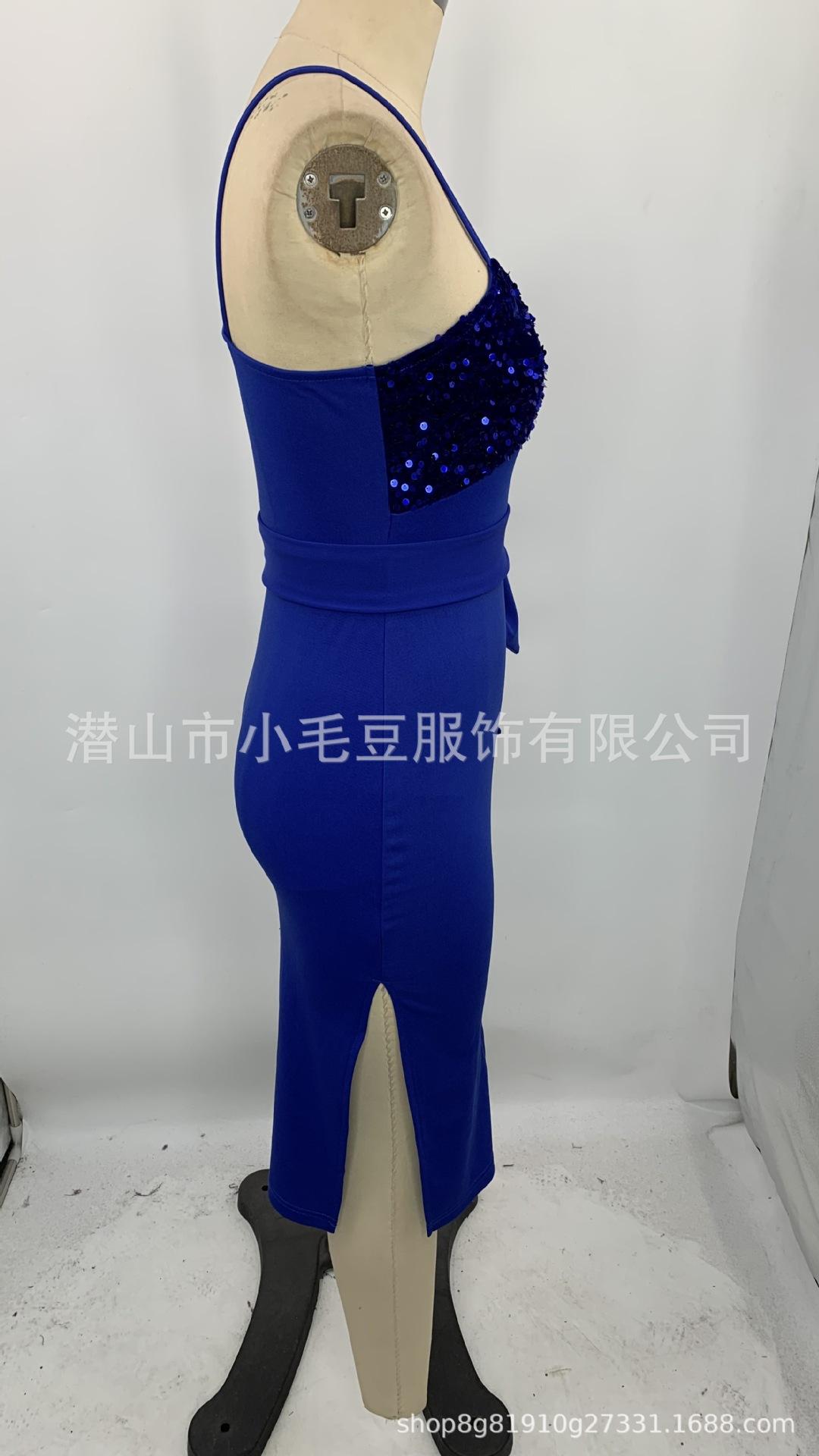 Compra Vestido de tirantes transfronterizo europeo y americano, moda sexy, ajustado, con costuras de lentejuelas, vestido de mujer al por mayor en Joom.pro