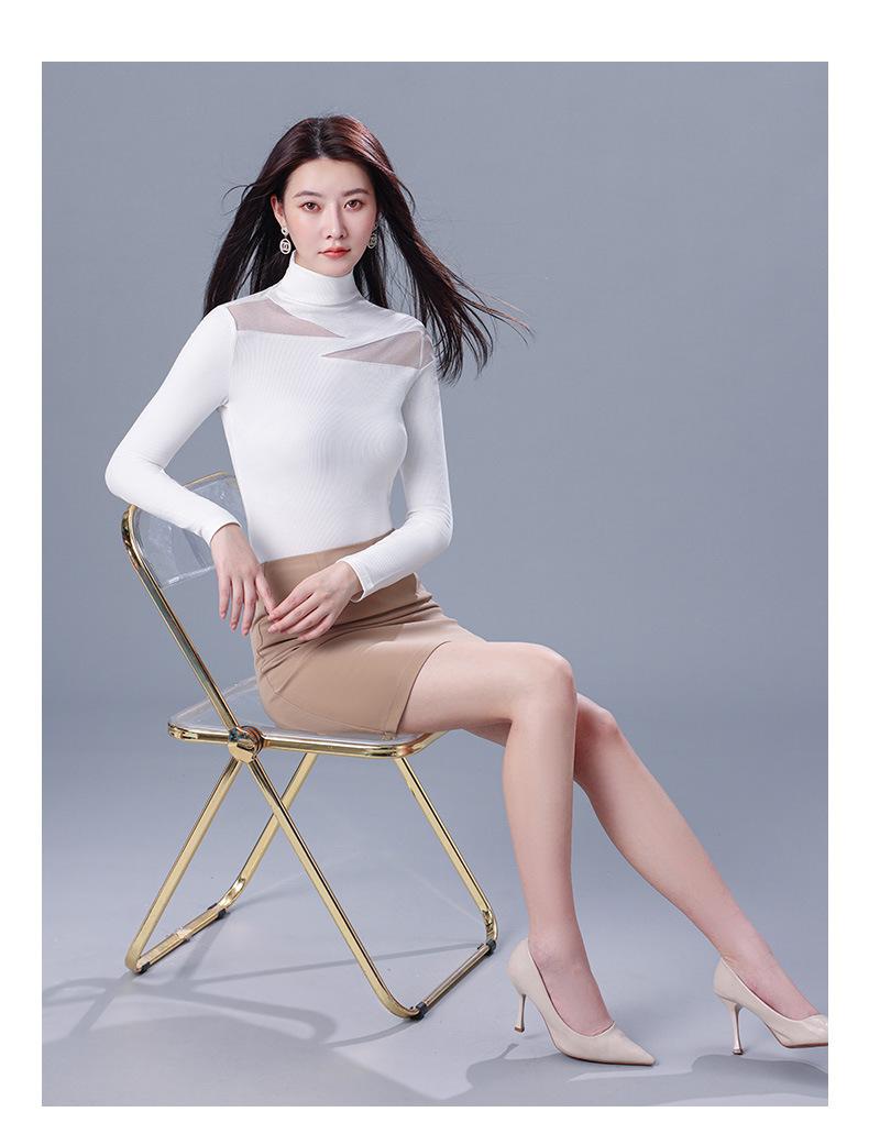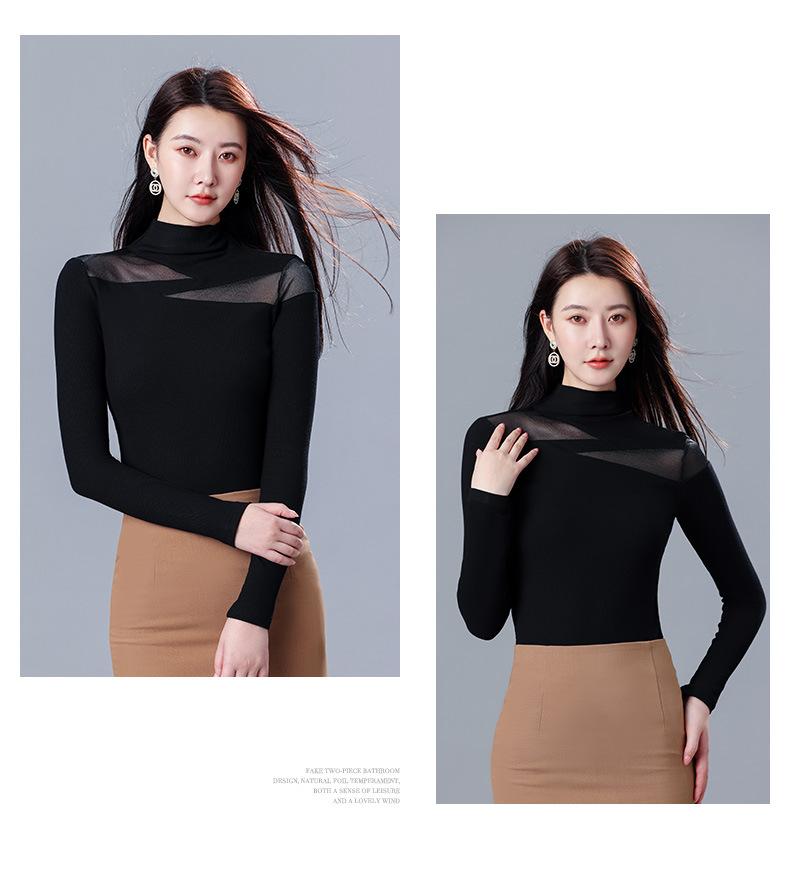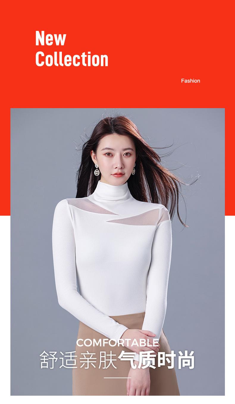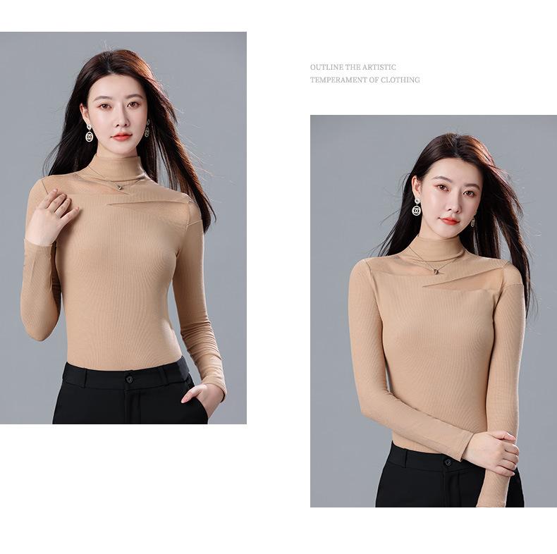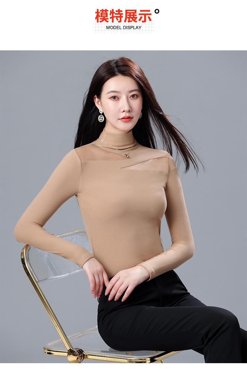 Camiseta básica de cuello alto medio con forro polar para mujer 2025 Invierno Nuevo Traje de mujer de alta elasticidad con suéter de punto ajustado a la moda