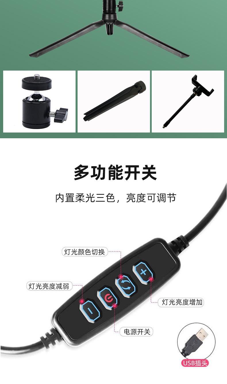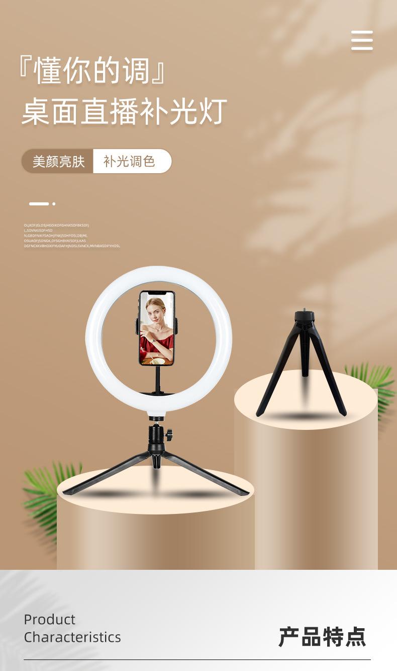 Soporte de Luz de Anillo de Escritorio para Transmisión en Vivo Móvil de 10 pulgadas, Trípode Portátil para Fotografía Selfie, Luz de Relleno LED para Belleza