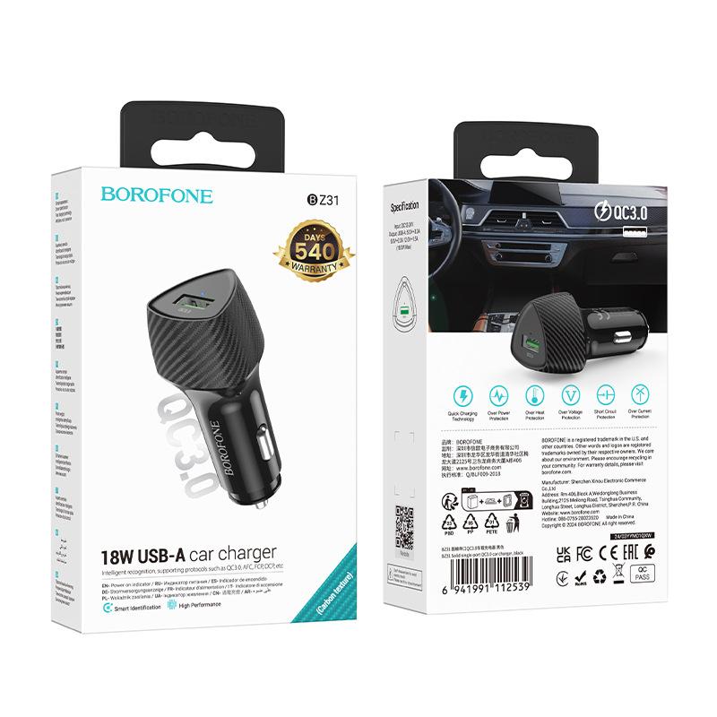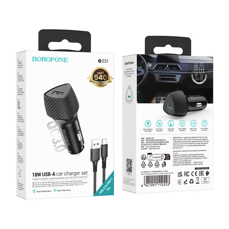 BZ31 GUV juego de cargador de coche QC3.0 de un solo puerto (Tipo-C)