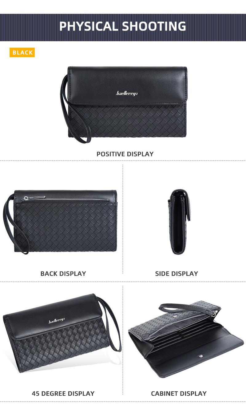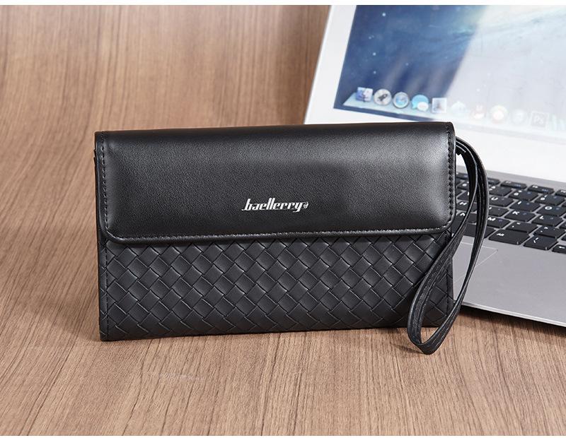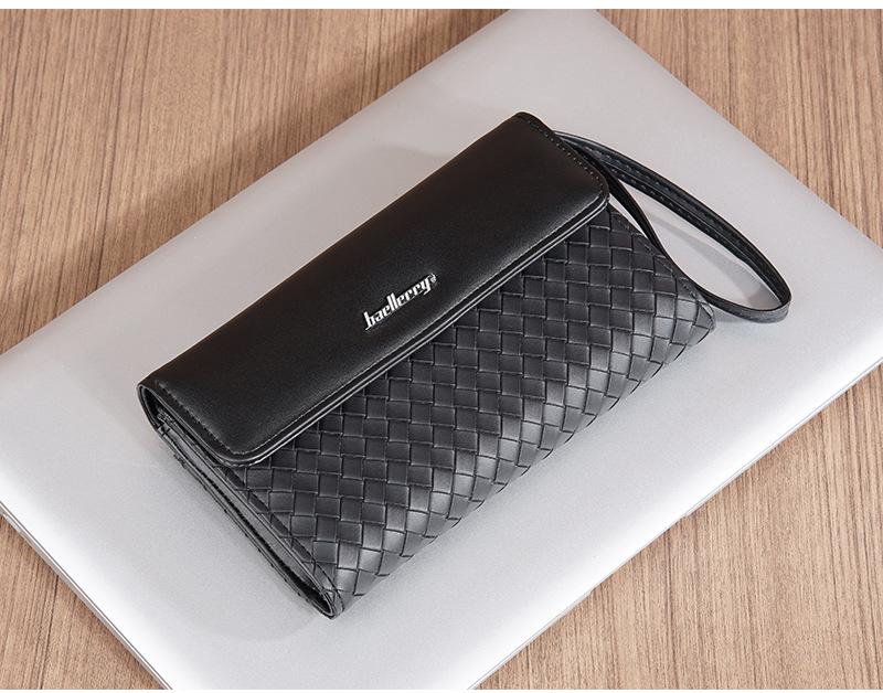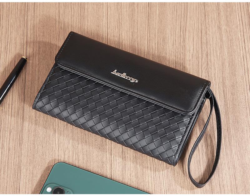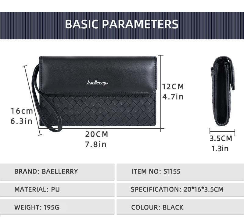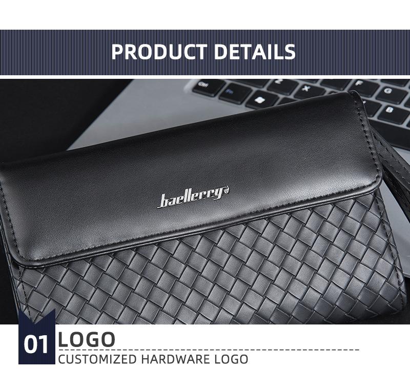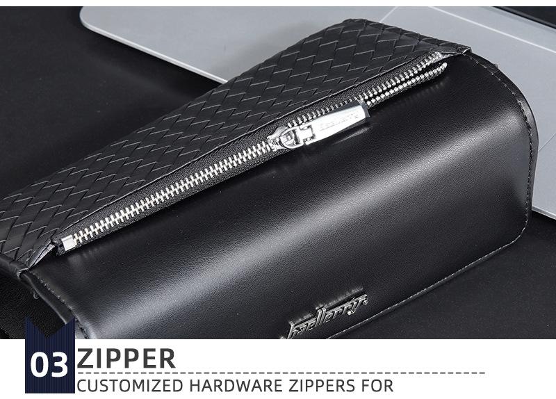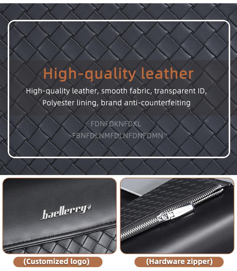 Nueva cartera para hombre Baellerry, cartera de mano de cuero de negocios con cremallera, tarjetero y diseño tejido europeo y americano.