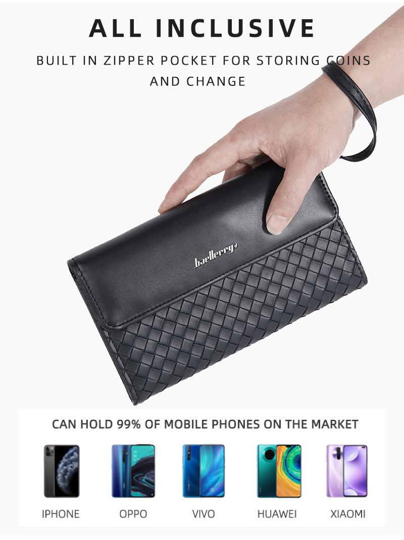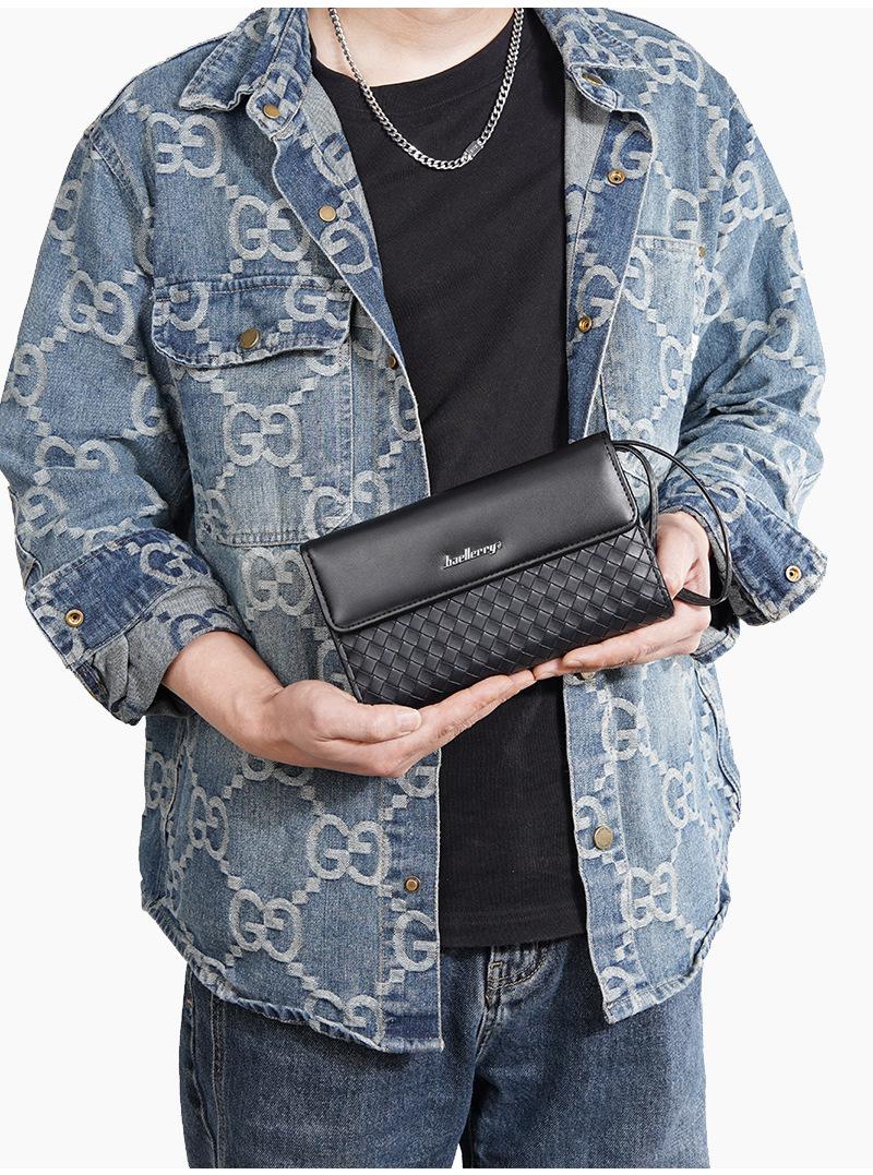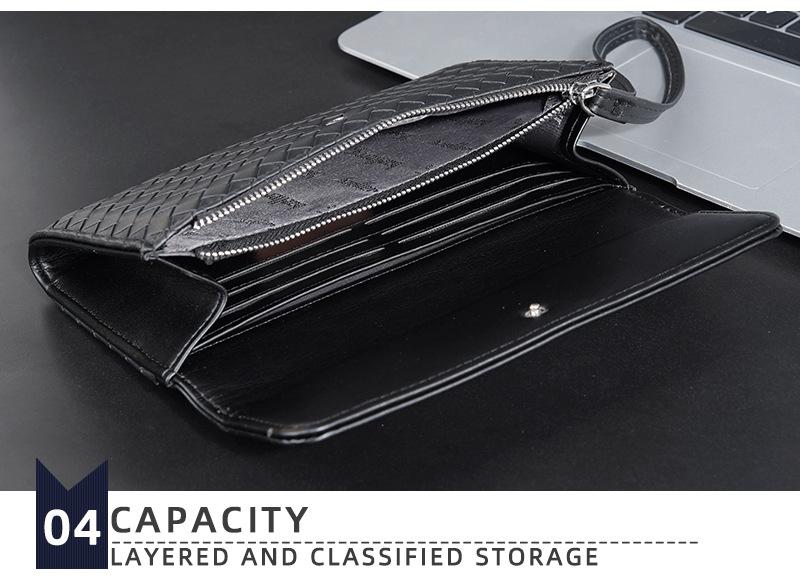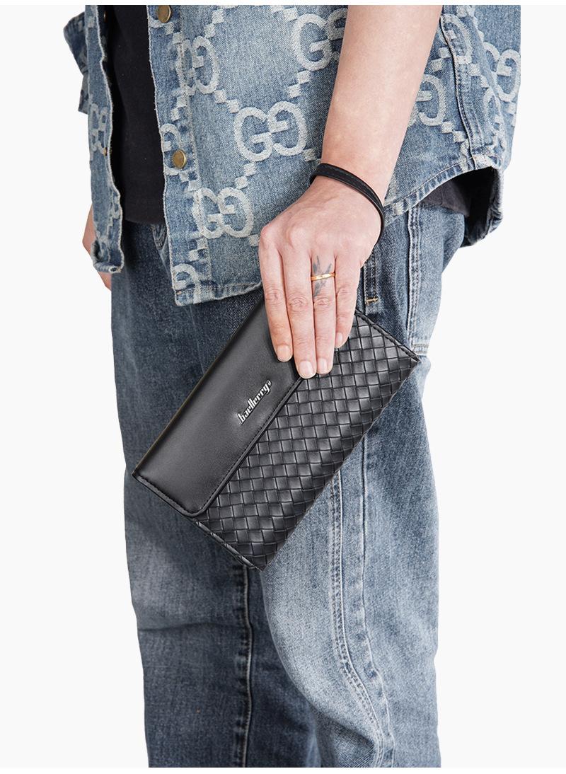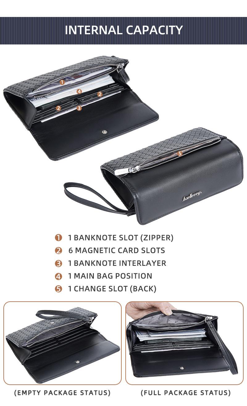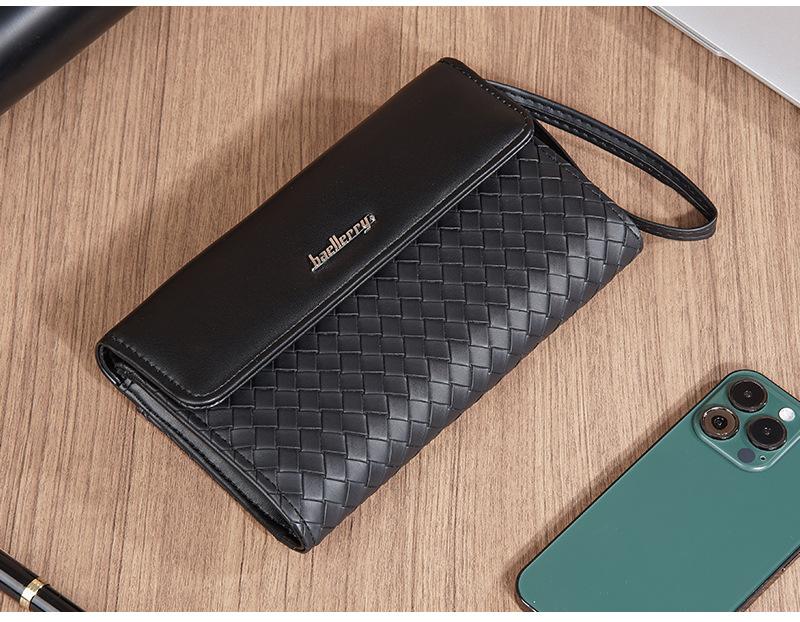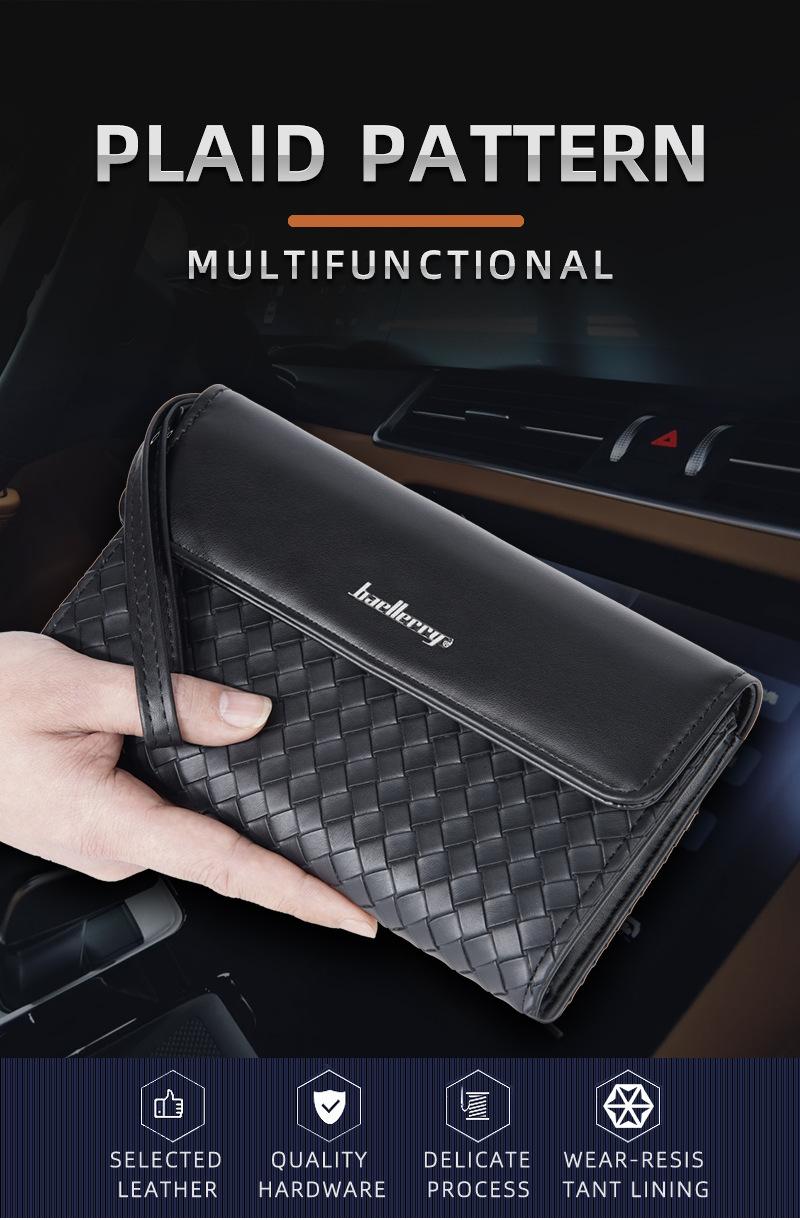Nueva cartera para hombre Baellerry, cartera de mano de cuero de negocios con cremallera, tarjetero y diseño tejido europeo y americano.