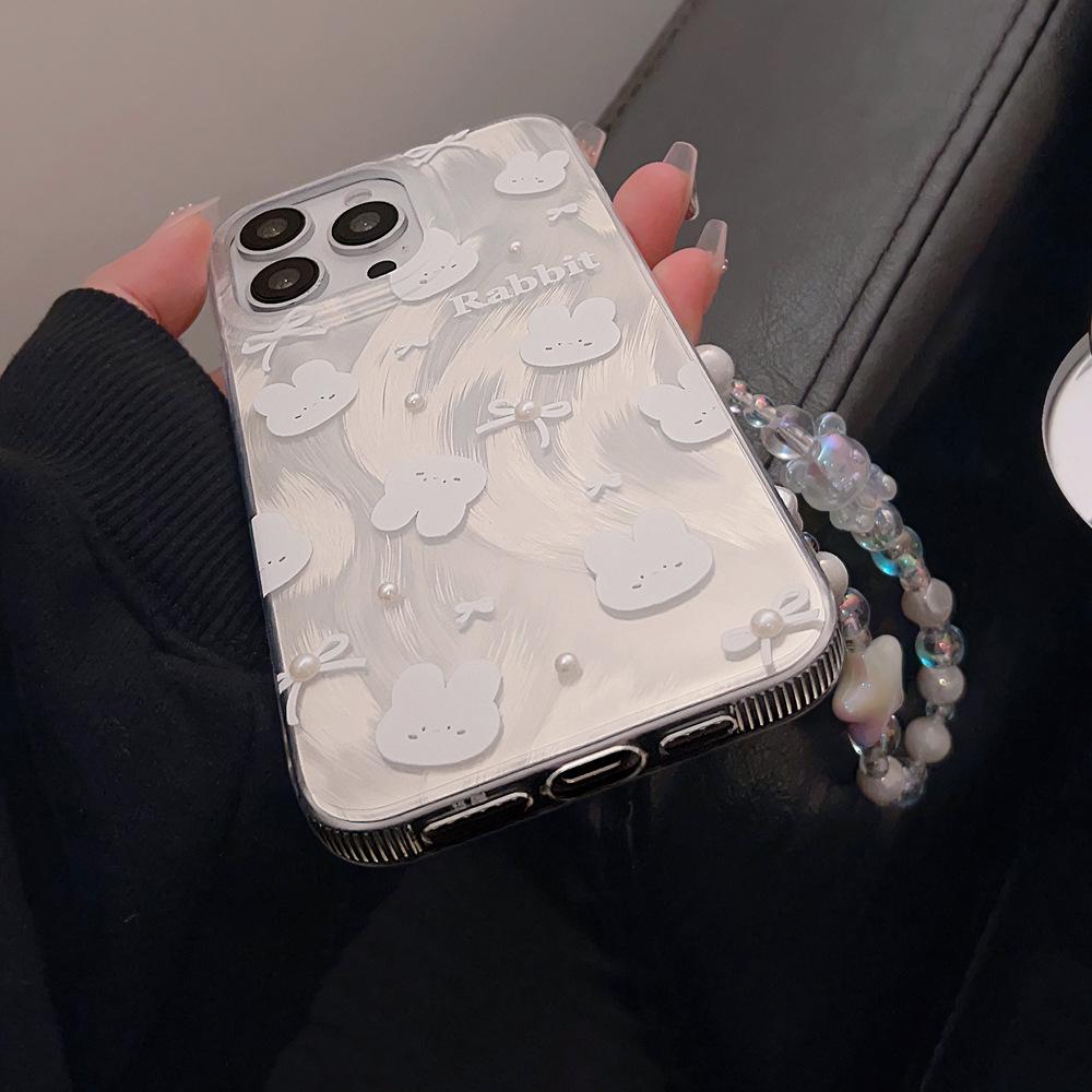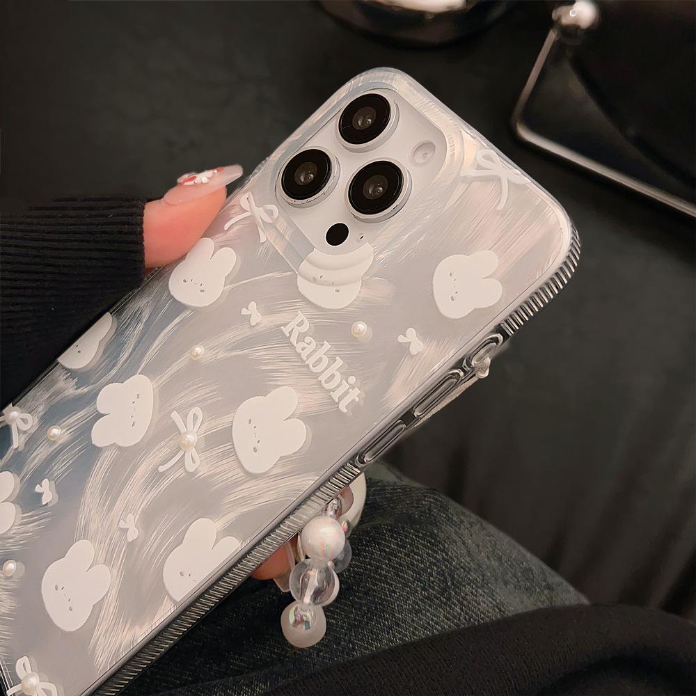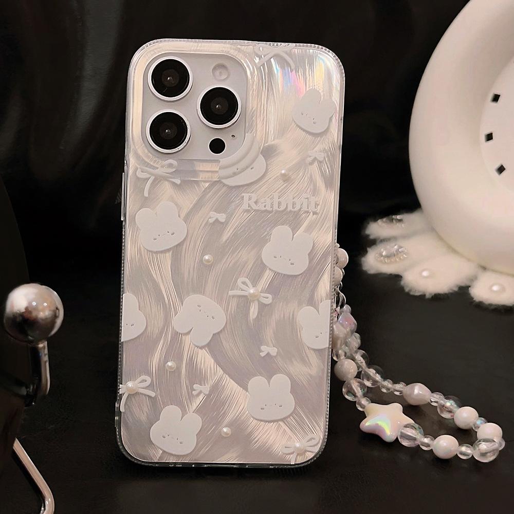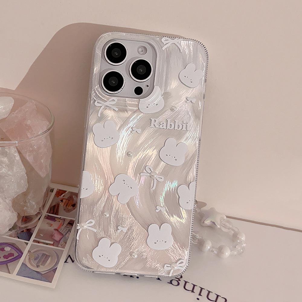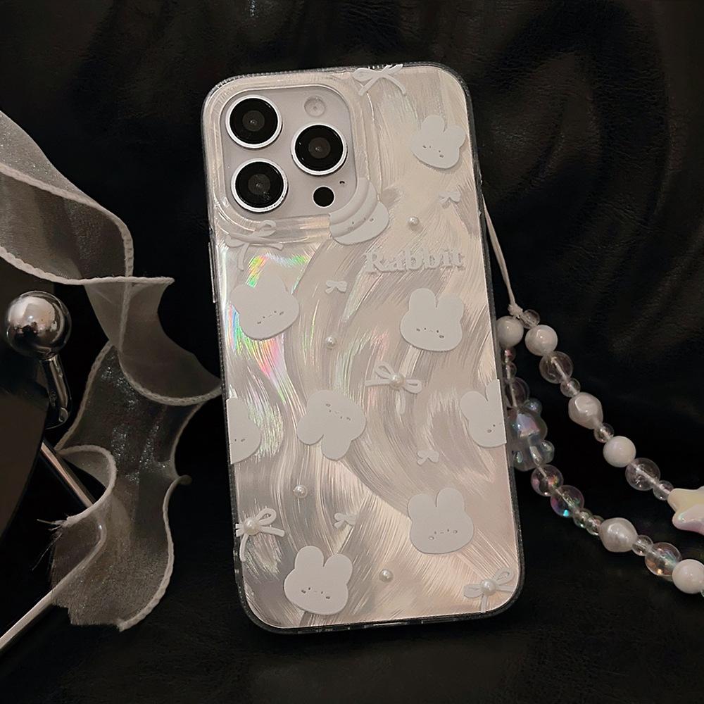 Funda para teléfono de conejito con lazo simple y linda Adecuada para Apple 15 Pro Max, iPhone 14, Lujo ligero 16 Perla 17