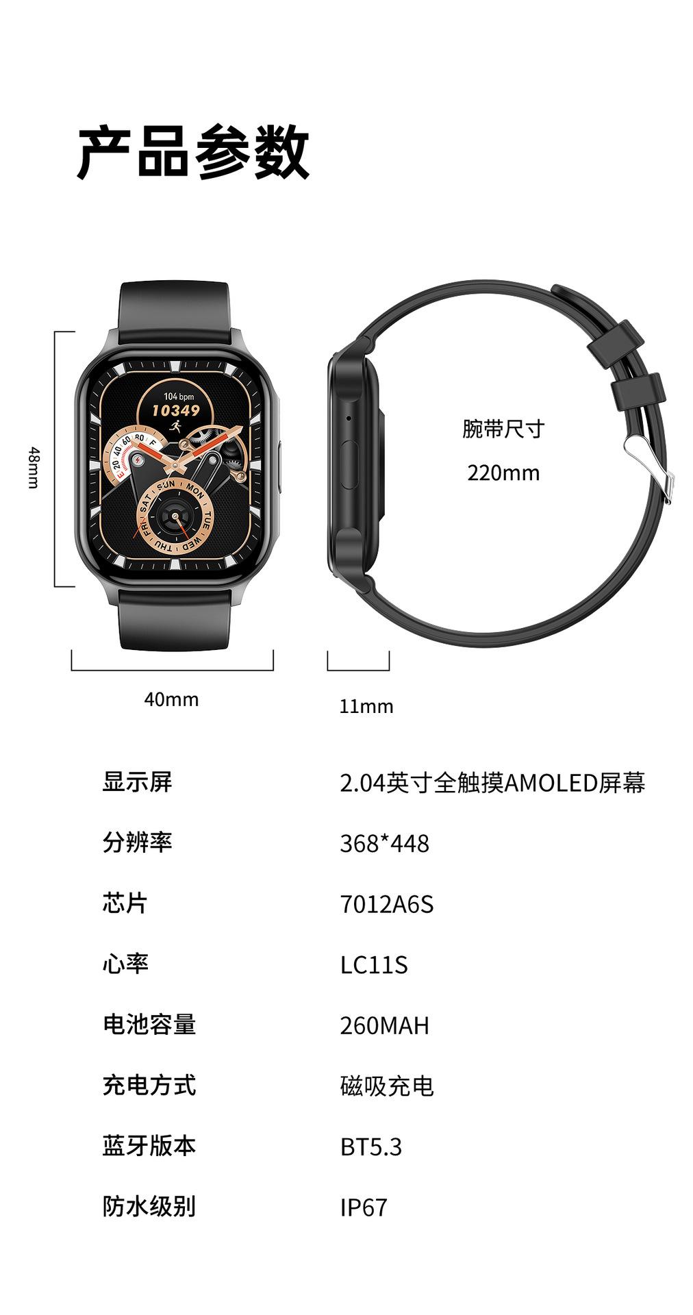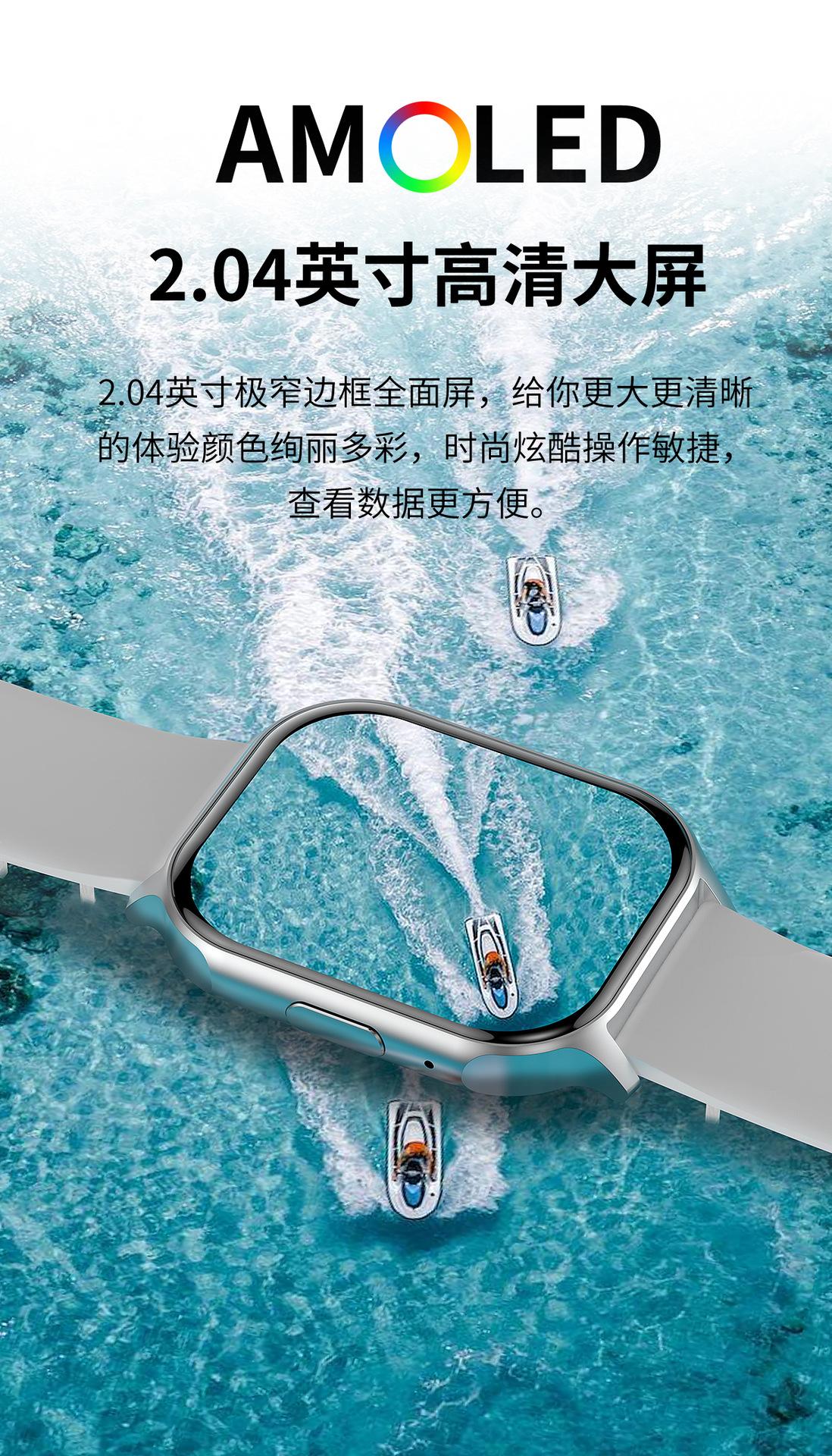 [Exclusivamente para suministro transfronterizo] Pulsera inteligente Hk26 con Bluetooth, llamadas, pantalla HD de 2,04 pulgadas, control de la frecuencia cardíaca y la presión arterial, multideportiva.