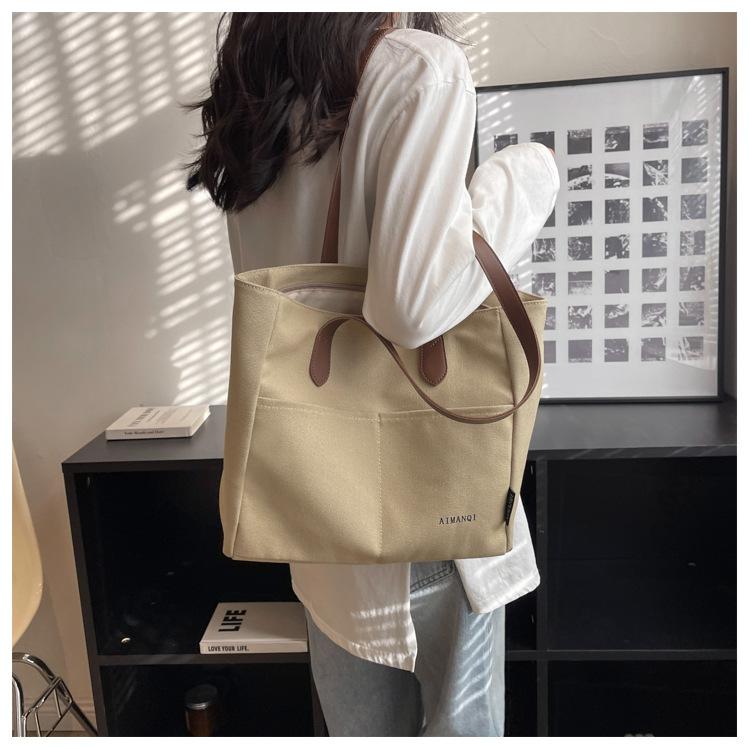 Bolso de lona para mujer, gran capacidad, nueva moda 2023, combina con todo, bolso de hombro para otoño e invierno, bolso de mano con textura de clase para viajeros