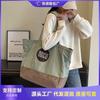 Bolso de lona para mujer, gran capacidad, 2024, nueva textura, color contrastante, bolso bandolera de verano, bolso de mano popular para ir al trabajo
