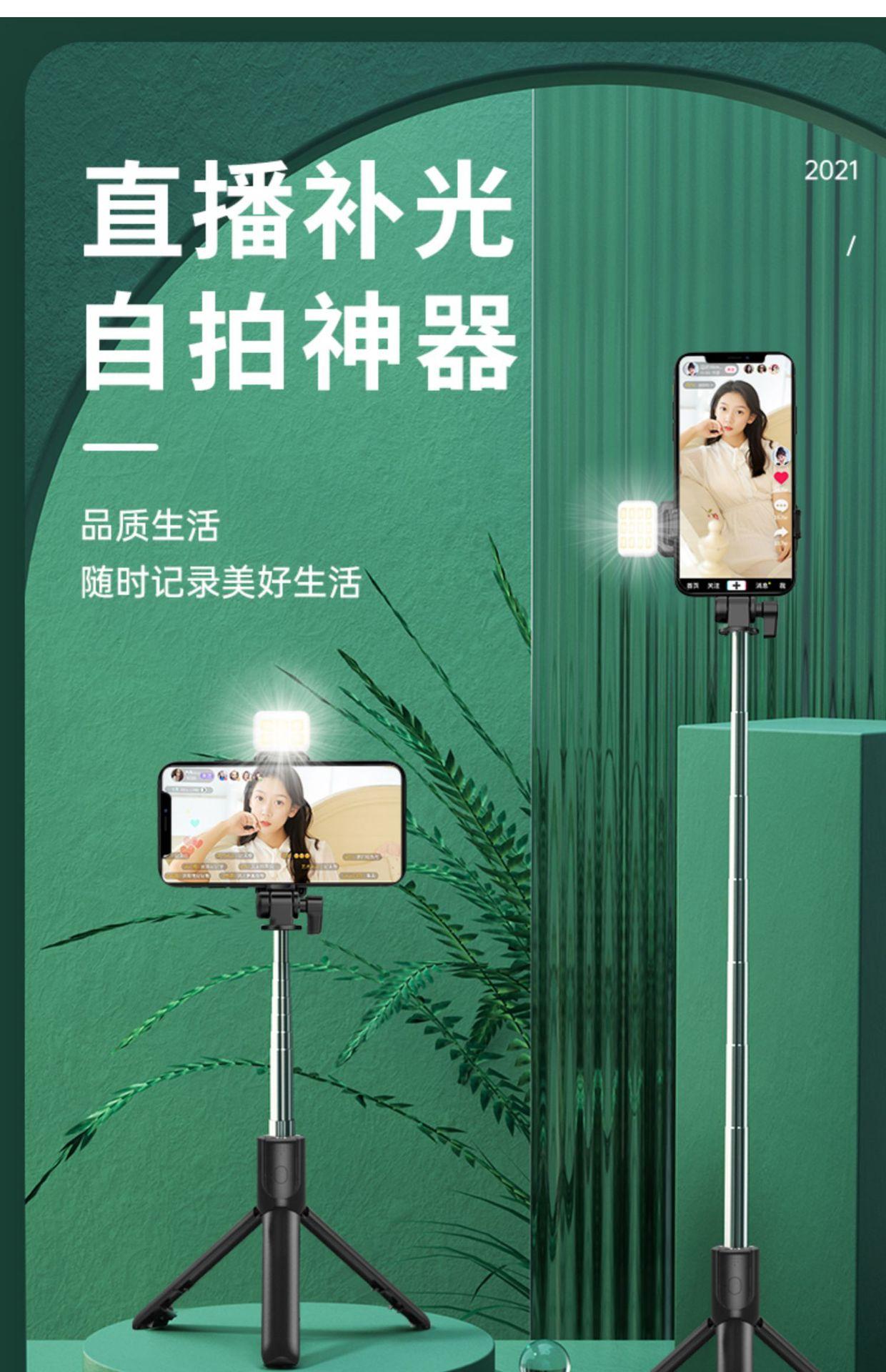 Palo Selfie para Teléfono Móvil Trípode para Transmisión en Vivo Luz de Relleno Artefacto de Cámara Bluetooth Portátil Telescópico Todo en Uno Mini Palo Selfie