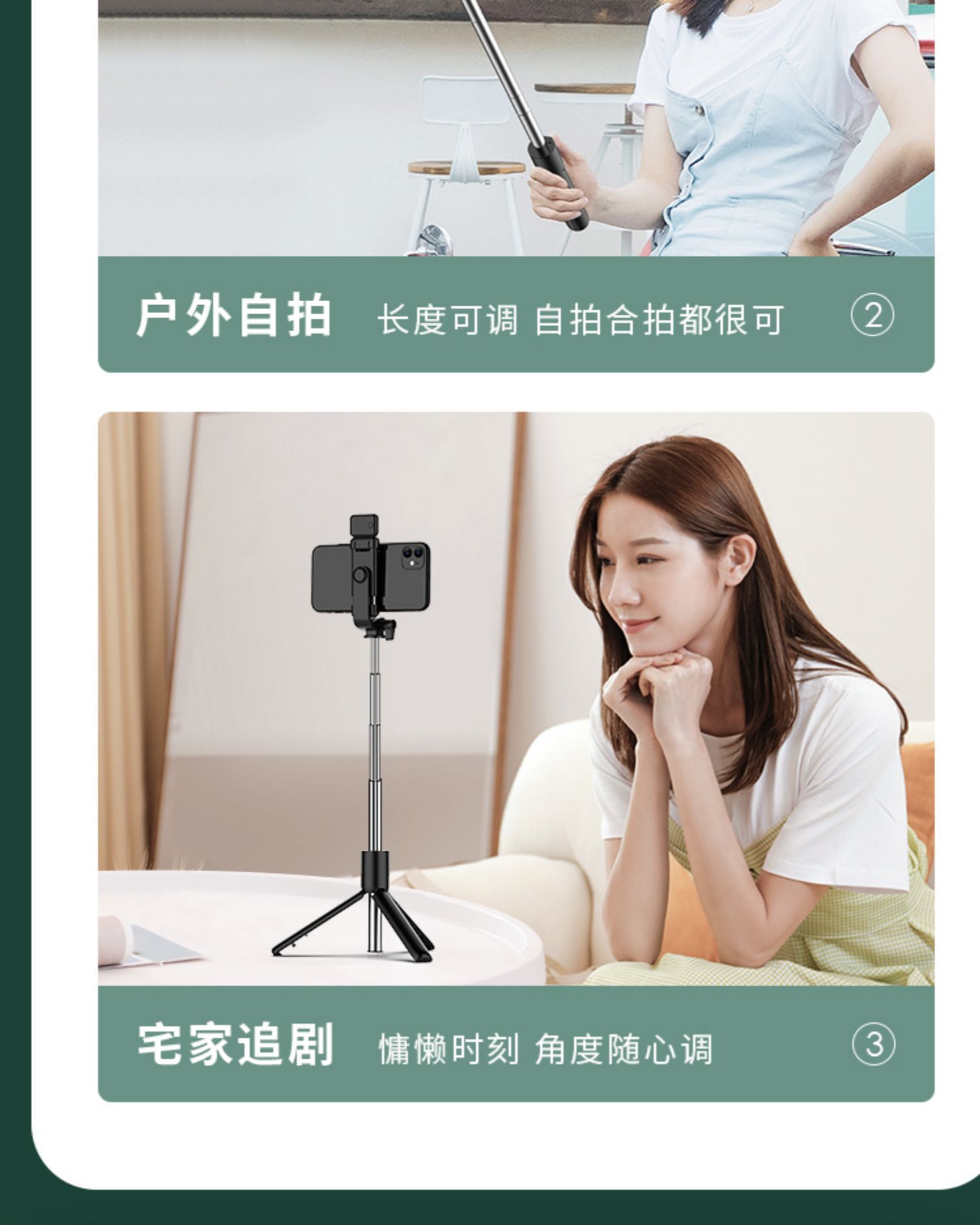Tripod selfie stick 1m (lengthened light supplement version)-white