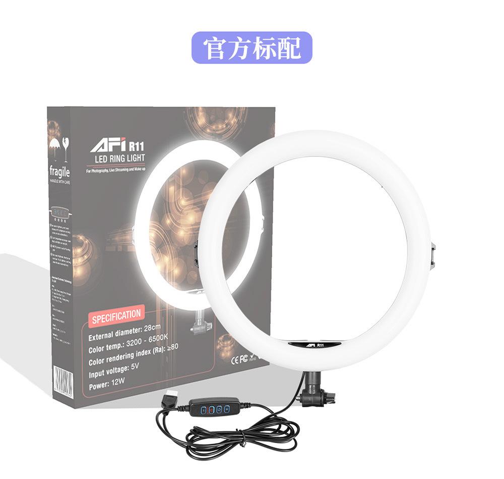Brown box + bag + ring light + mobile phone clip + pan/tilt + replacement nut + power cord