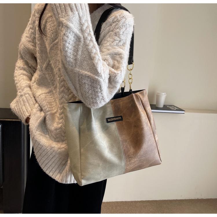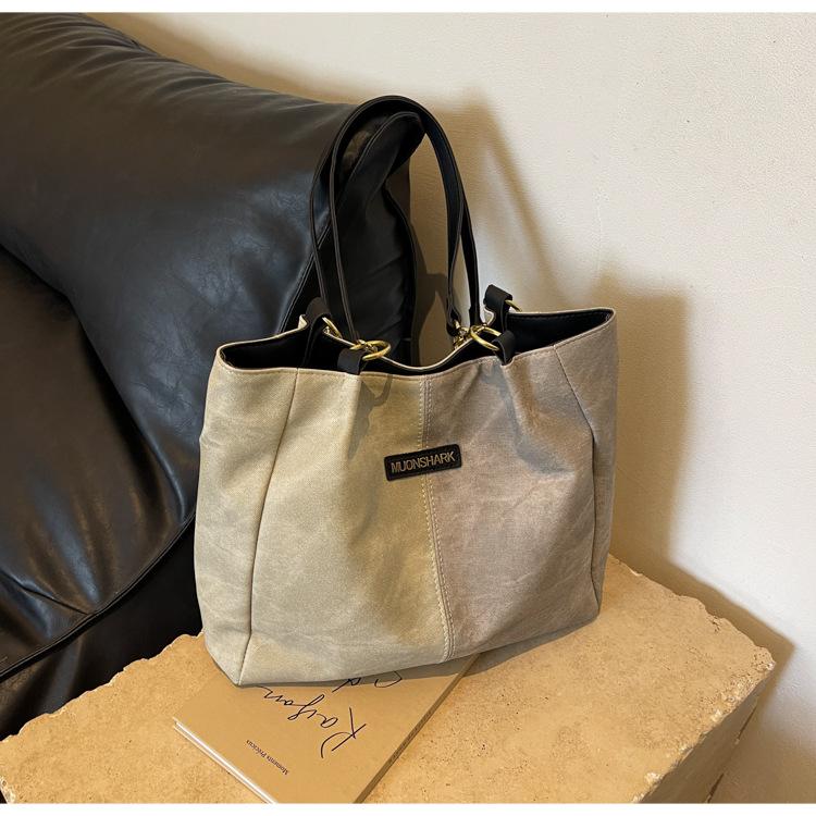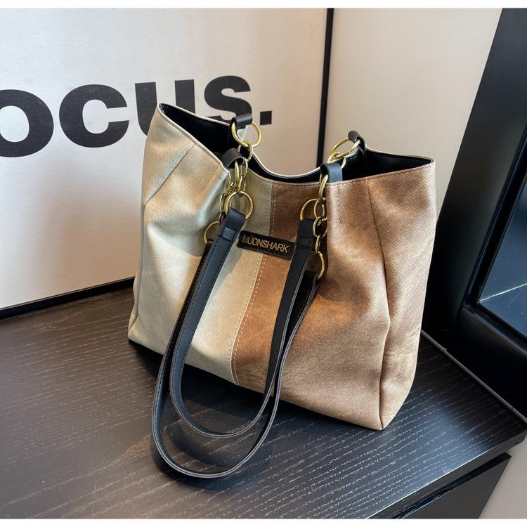 Bolso de lona para mujer, gran capacidad, 2024, nueva textura, color contrastante, bolso bandolera de verano, bolso de mano popular para ir al trabajo