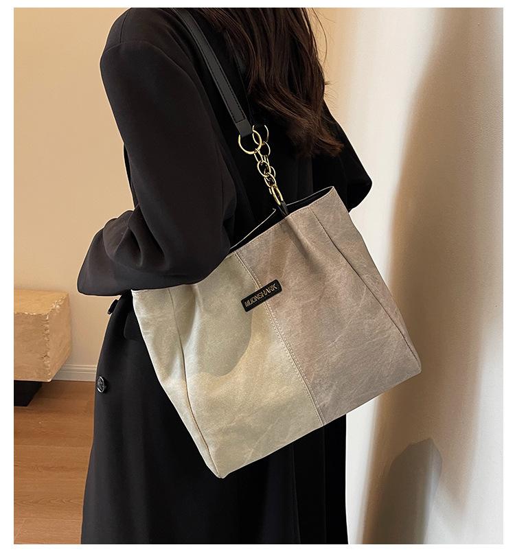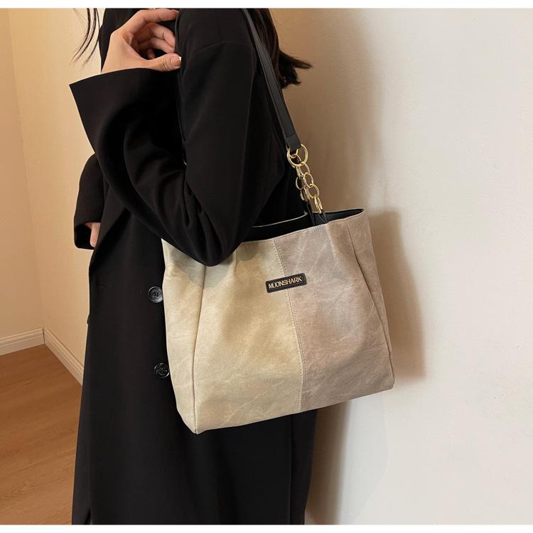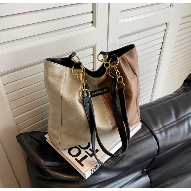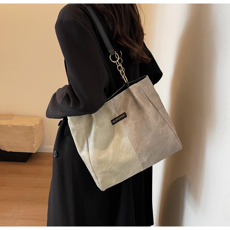 Bolso grande de estilo coreano popular de este año para mujer, nuevo bolso de hombro tipo cubo de alta gama retro combinable para otoño e invierno 2024