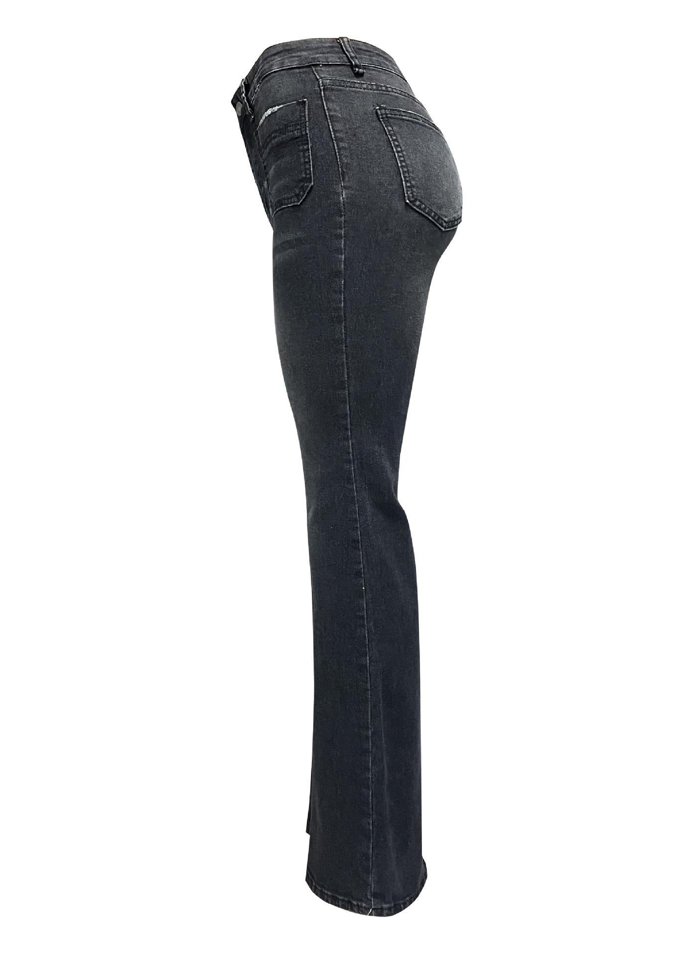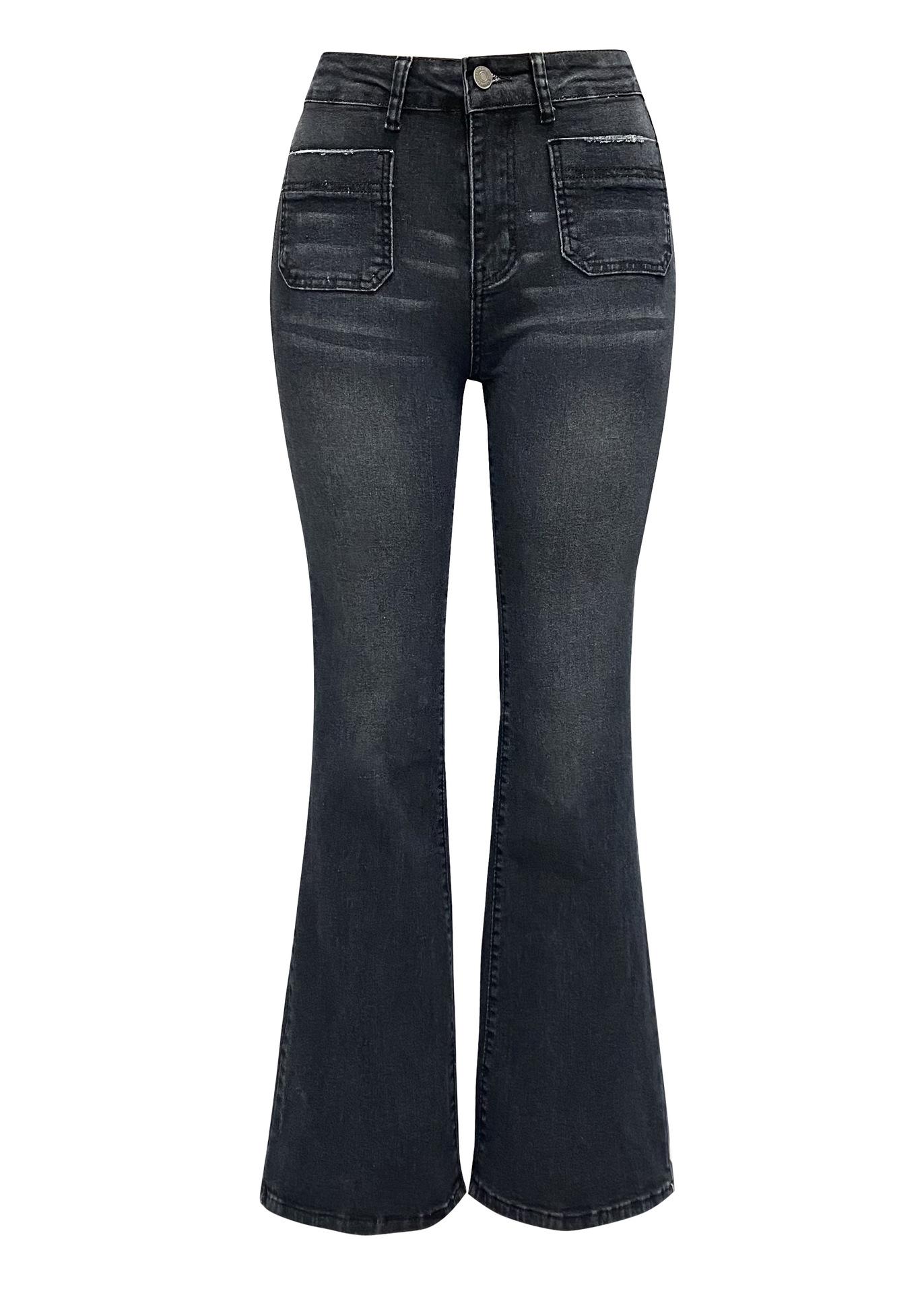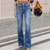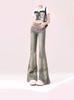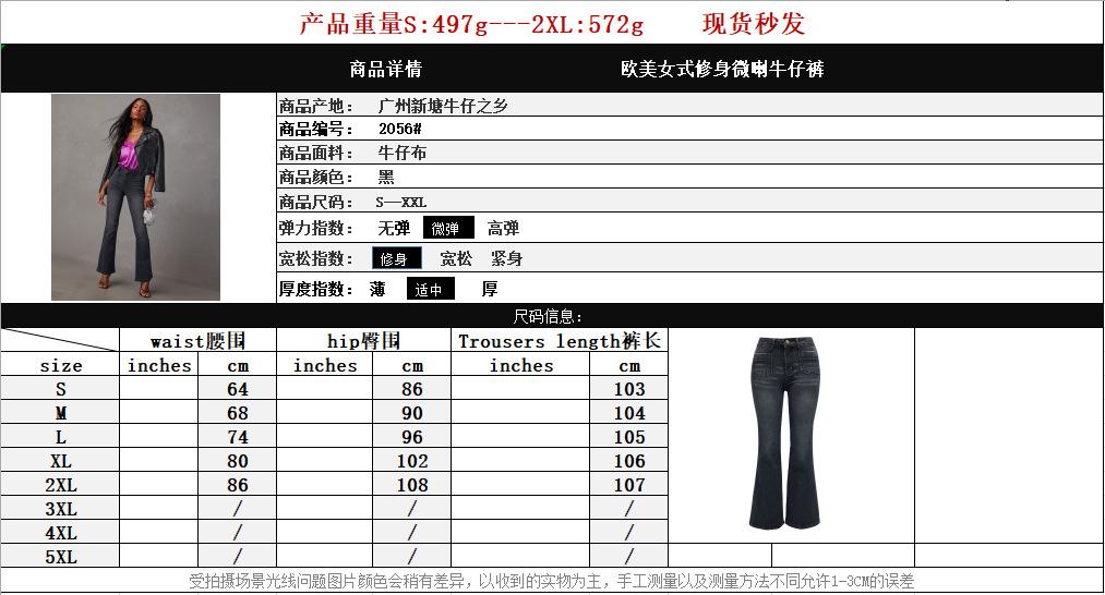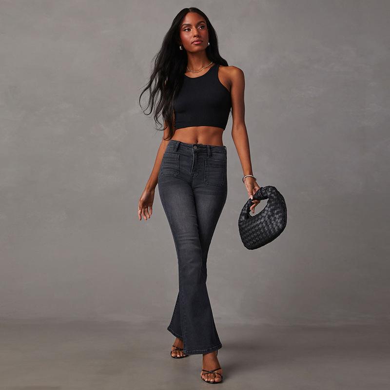 2025 Amazon Estación Independiente Transfronteriza Jeans de Mujer Retro Lavados de Cintura Alta Slim Elásticos Micro Acampanados en Stock