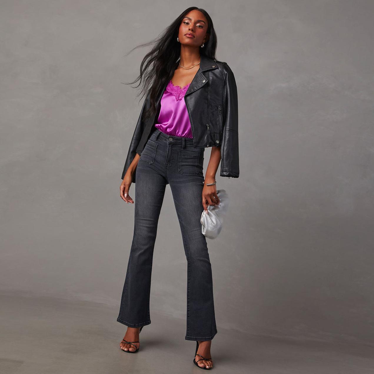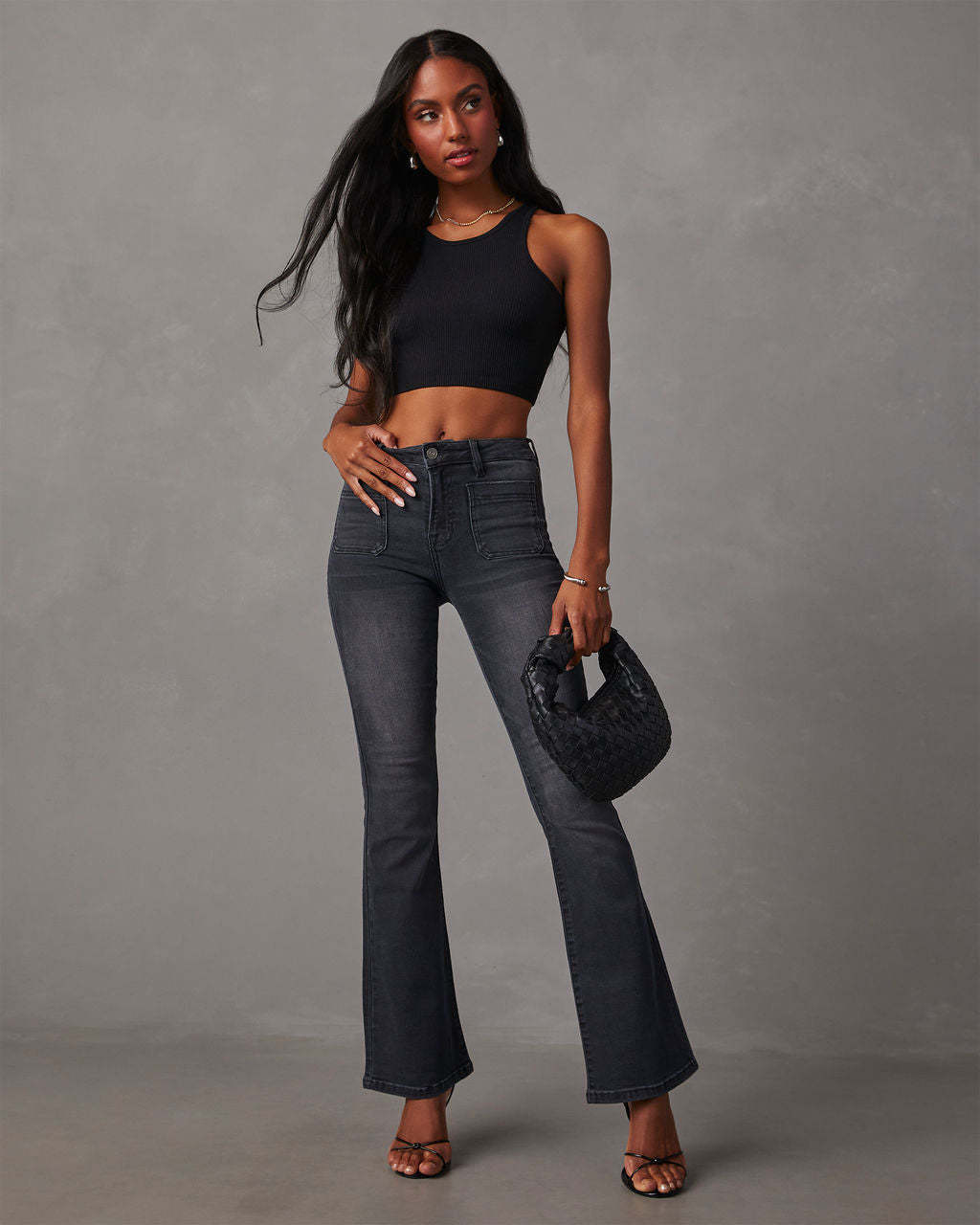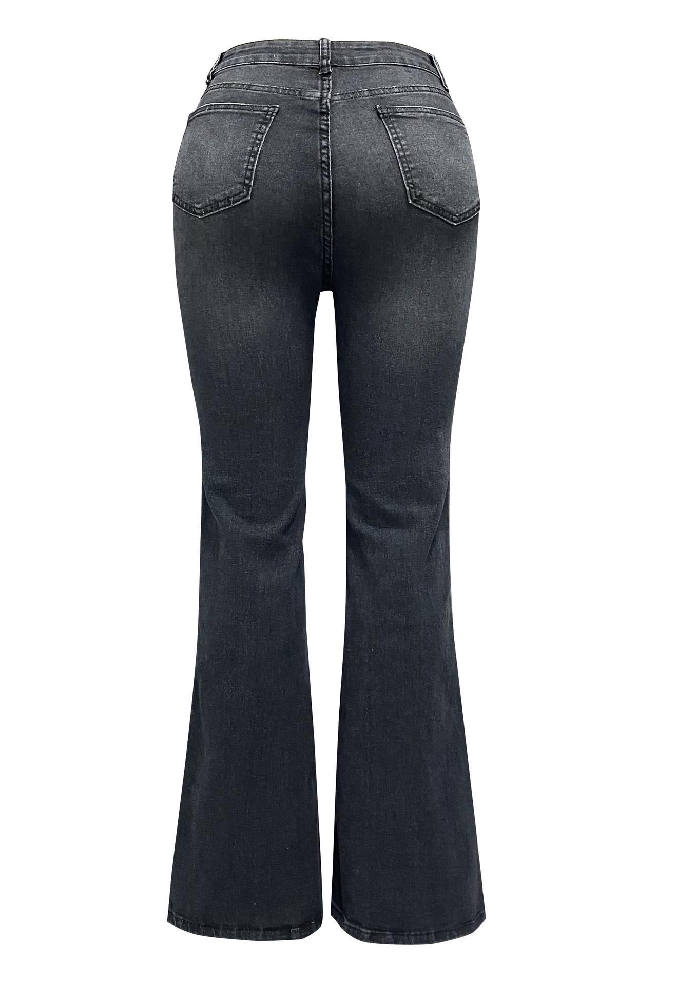 2025 Amazon Estación Independiente Transfronteriza Jeans de Mujer Retro Lavados de Cintura Alta Slim Elásticos Micro Acampanados en Stock