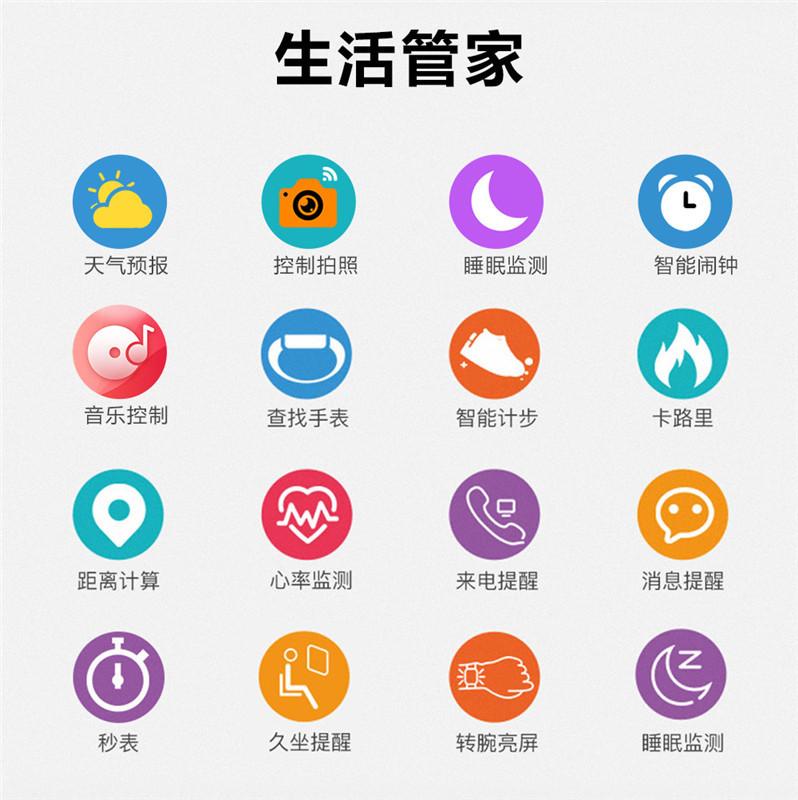 | habilidades básicas | Podómetro, distancia, calorías, monitorización de frecuencia cardíaca/presión arterial/oxígeno en sangre, monitorización del sueño, recordatorio de llamadas, recordatorio de SMS, recordatorio de mensajes de aplicaciones sociales, recordatorio de alarma, recordatorio de sedentarismo, más ejercicio, girar la muñeca para iluminar la pantalla, buscar la pulsera, buscar el teléfono, toma de fotografías a distancia, rechazar llamadas, modo no molestar, cambio de marcación múltiple, control de música, llamada Bluetooth | |