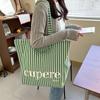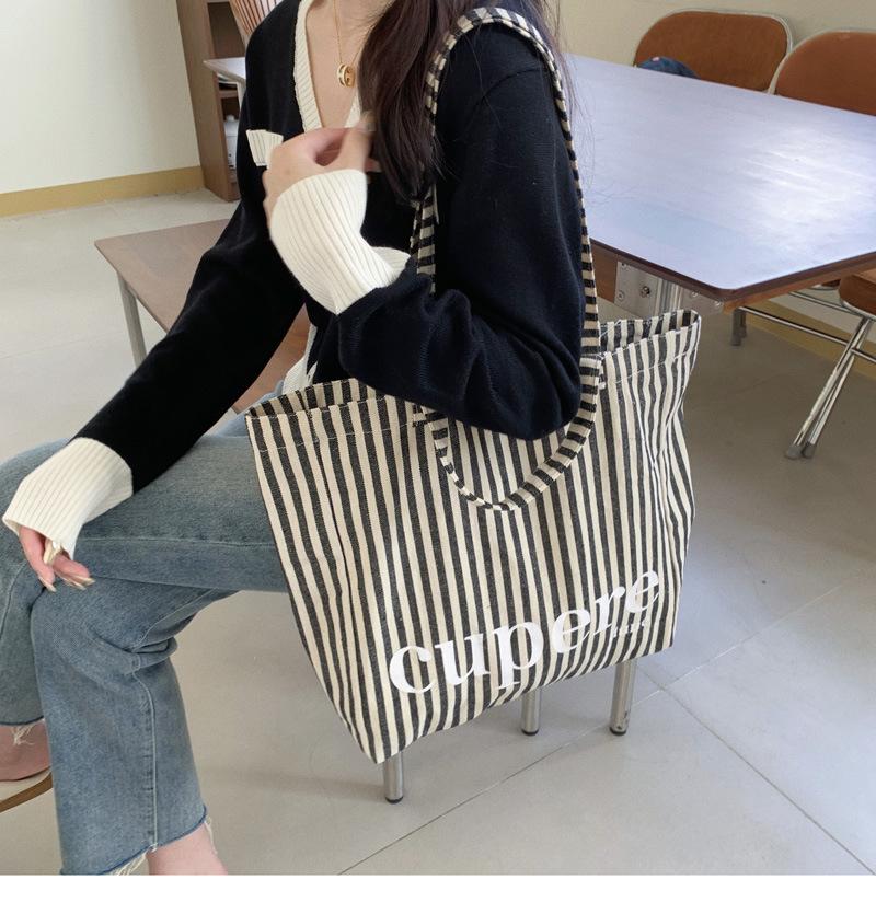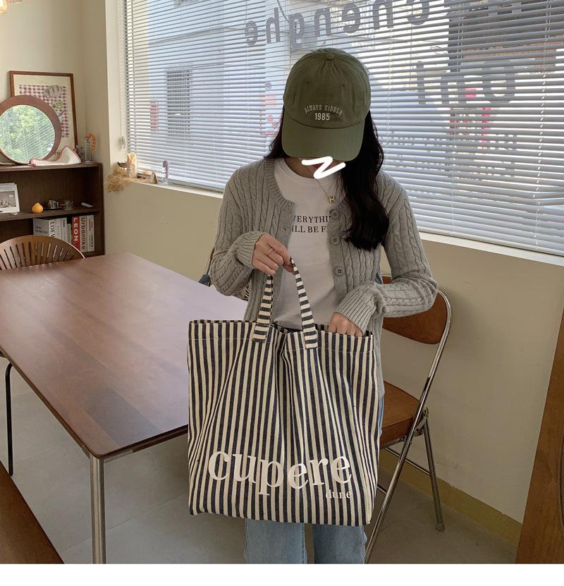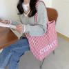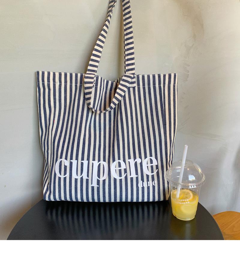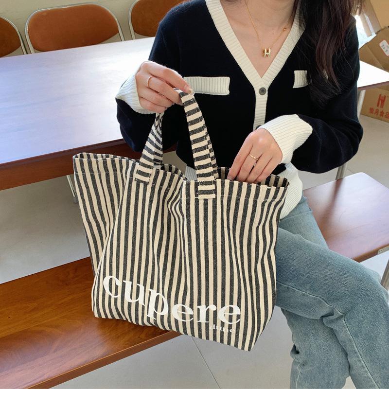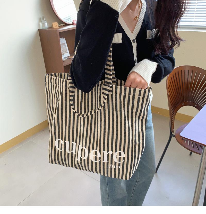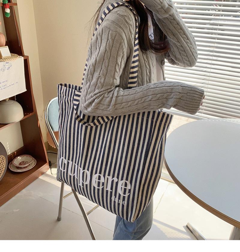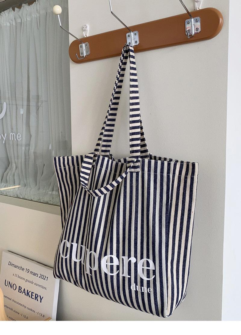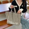 Compra Bolsa Tote Rayada de Gran Capacidad Bolsa de Hombro de Lona Bolsa Casual Abierta con Letra 2023 Nueva Mochila de Clase para Estudiantes al por mayor en Joom.pro