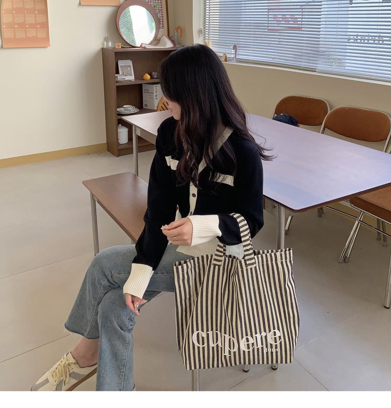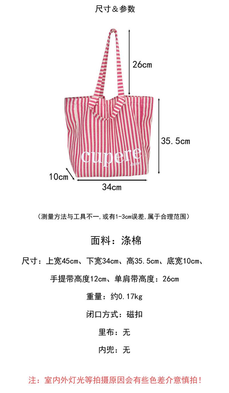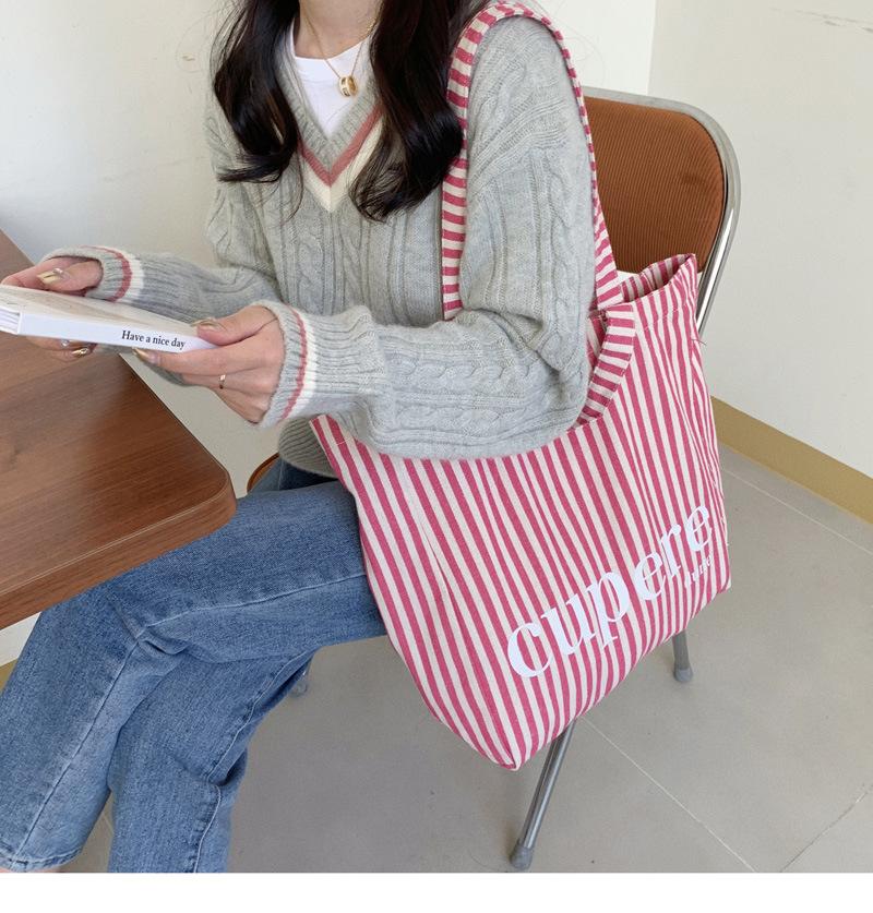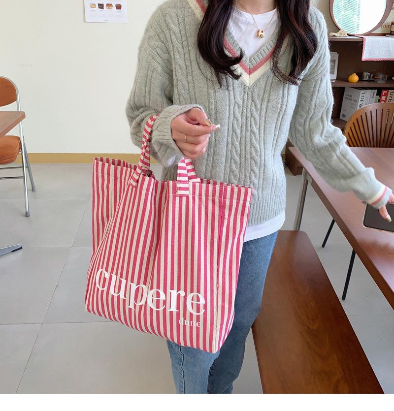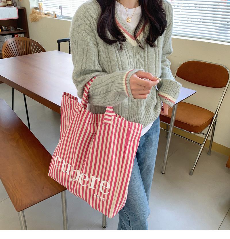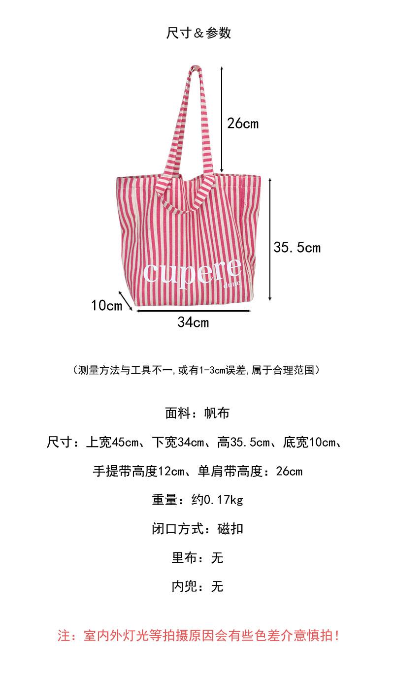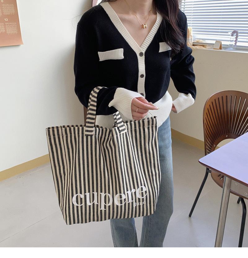 Compra Bolsa Tote Rayada de Gran Capacidad Bolsa de Hombro de Lona Bolsa Casual Abierta con Letra 2023 Nueva Mochila de Clase para Estudiantes al por mayor en Joom.pro