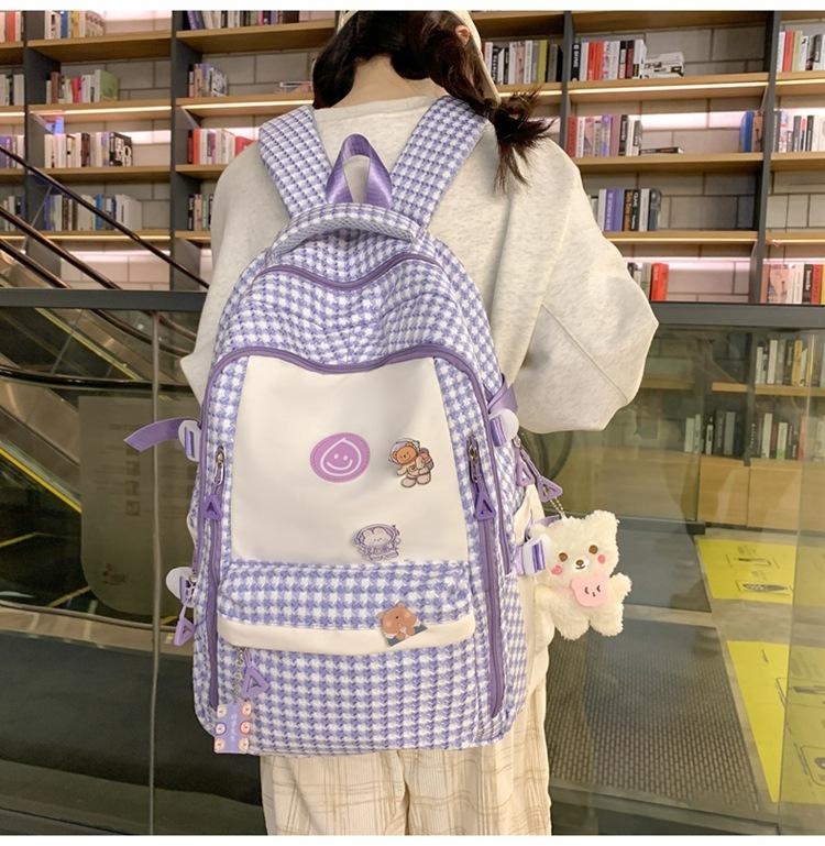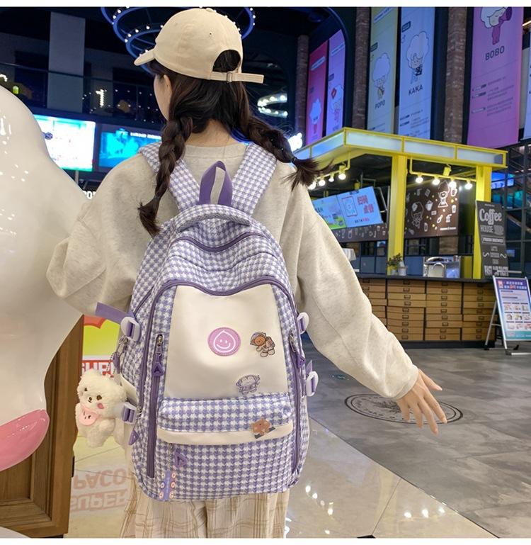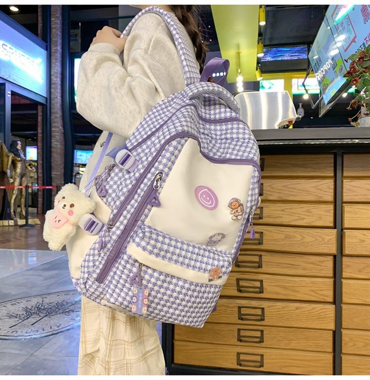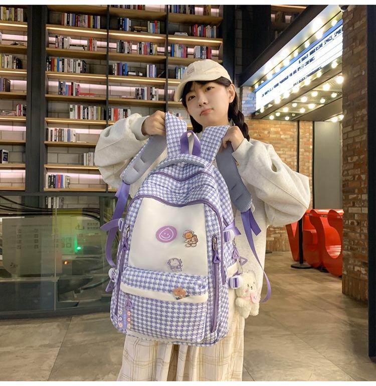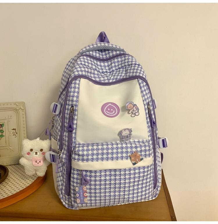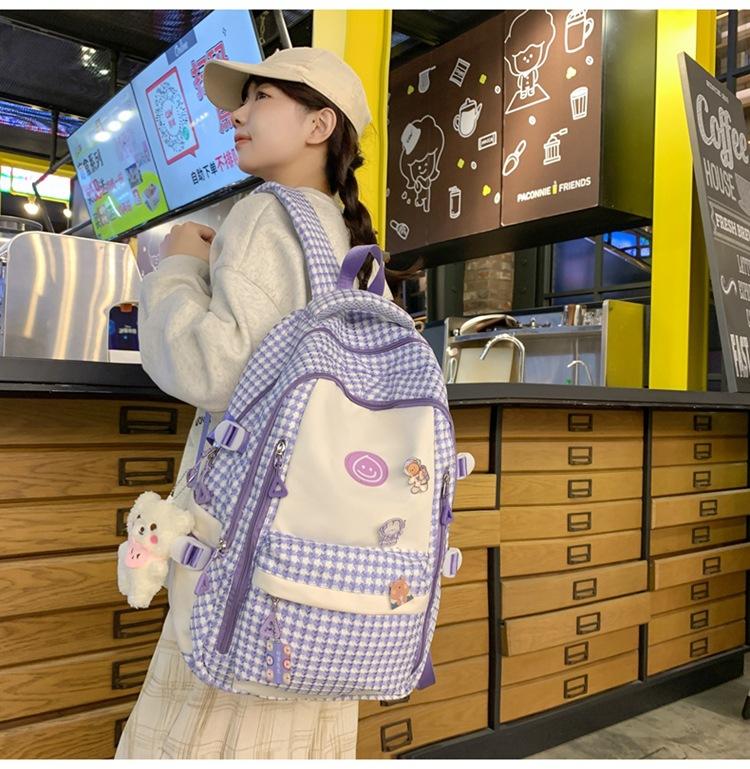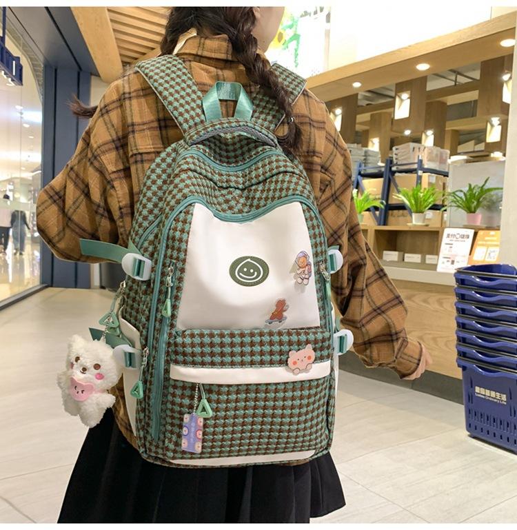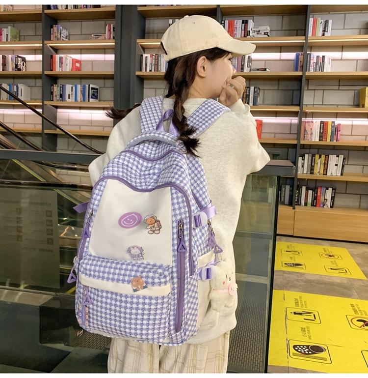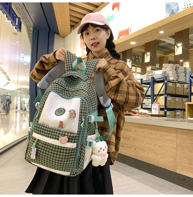 Mochila escolar de color contrastante para estudiantes de primaria, de 3.º a 6.º grado, de gran capacidad, para estudiantes de secundaria y preparatoria, con estampado de campamento Rui.
