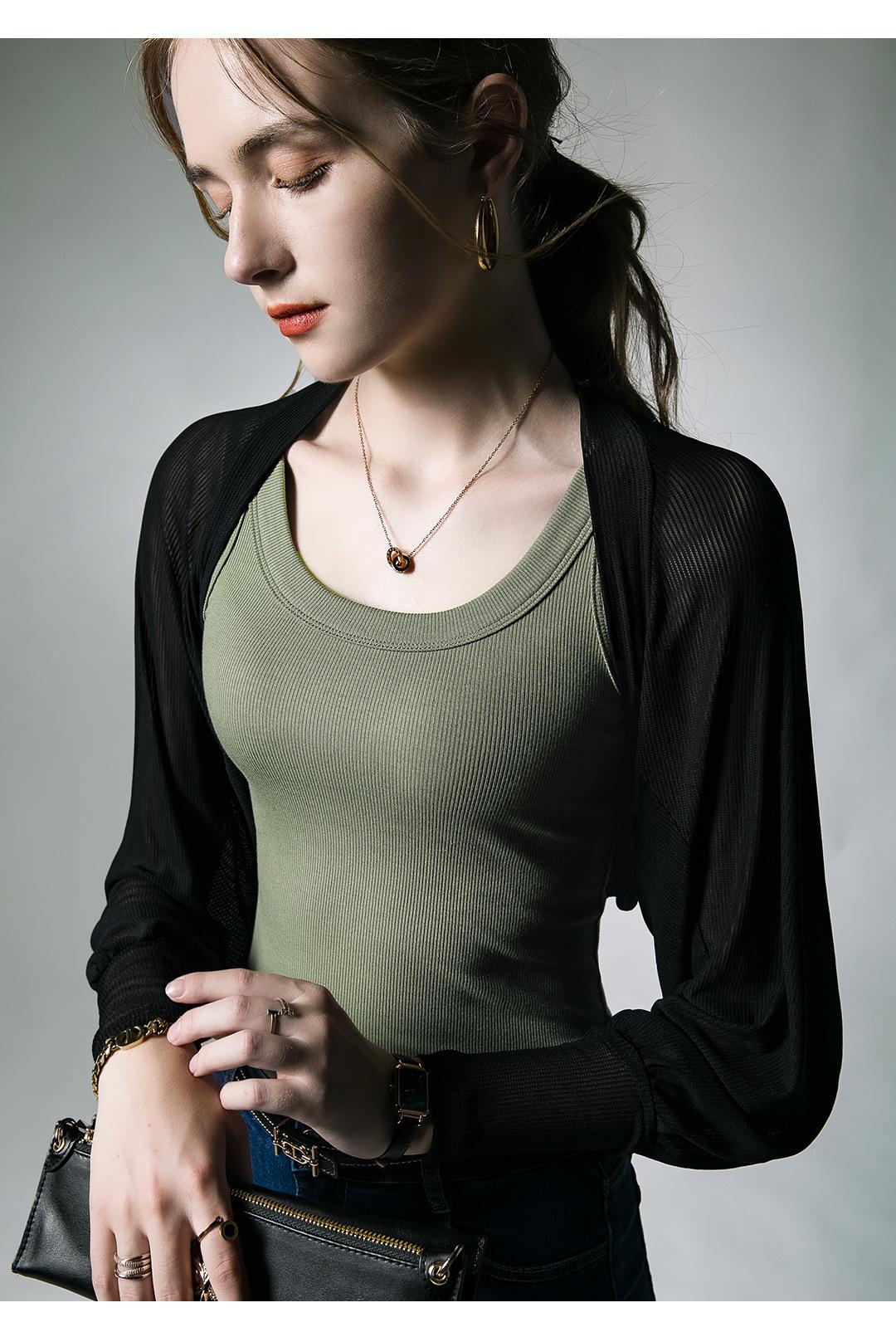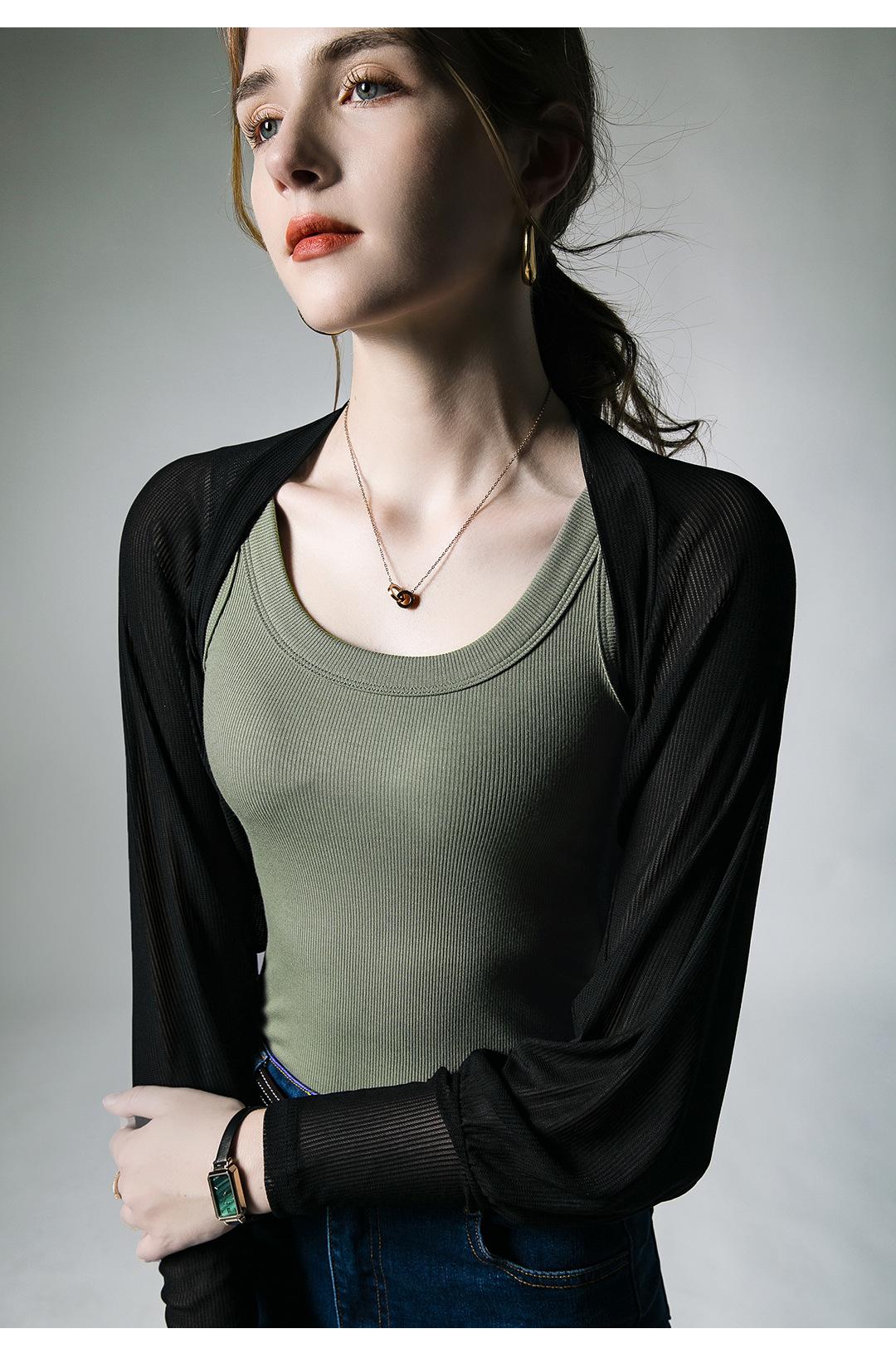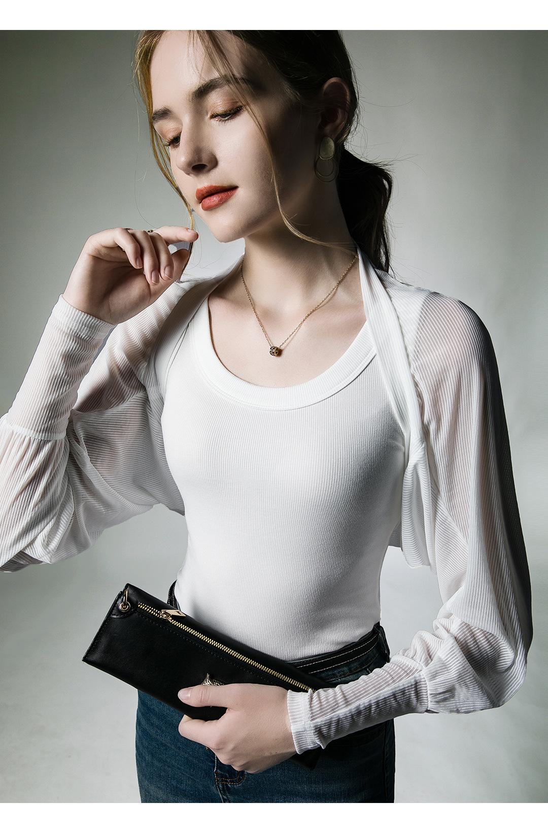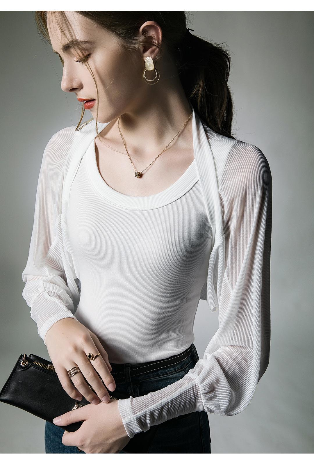Otoño Nuevo Diseño Sentido Chaqueta Corta Color Sólido Malla Transpirable Camisa Pequeña Top Francés Manga Larga