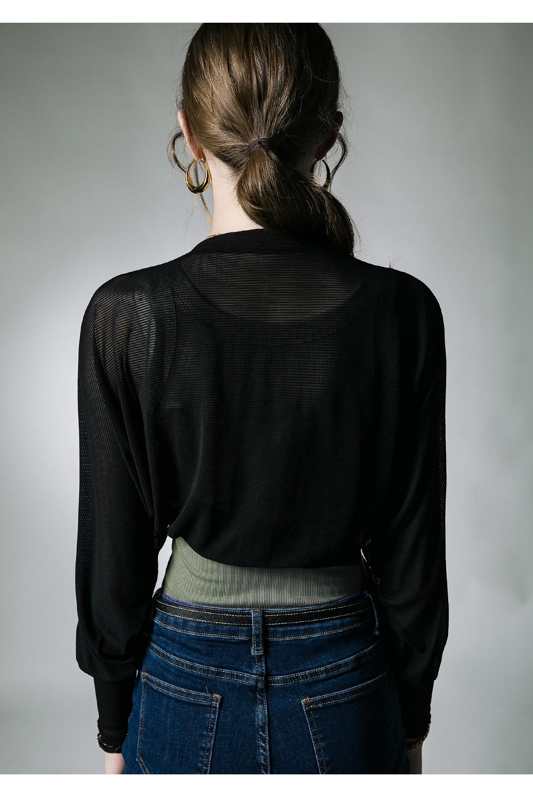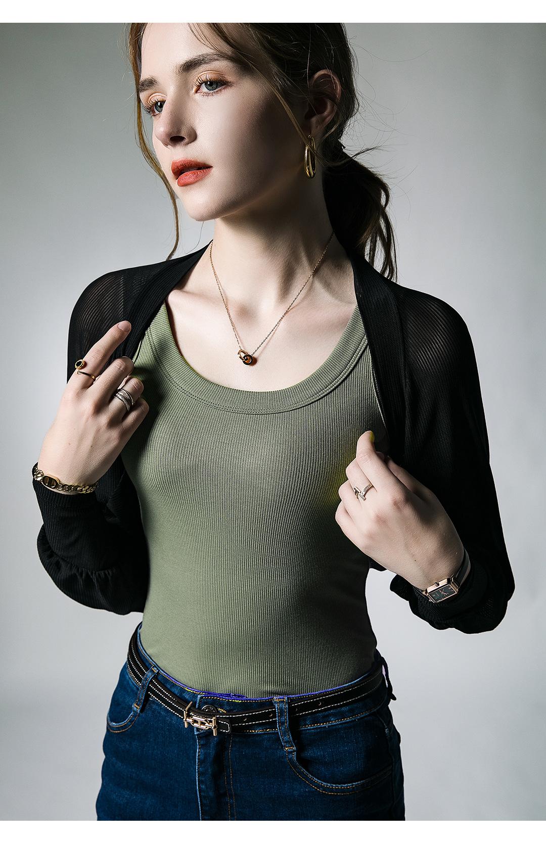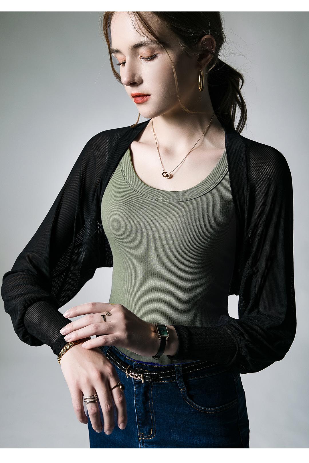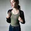 Otoño Nuevo Diseño Sentido Chaqueta Corta Color Sólido Malla Transpirable Camisa Pequeña Top Francés Manga Larga