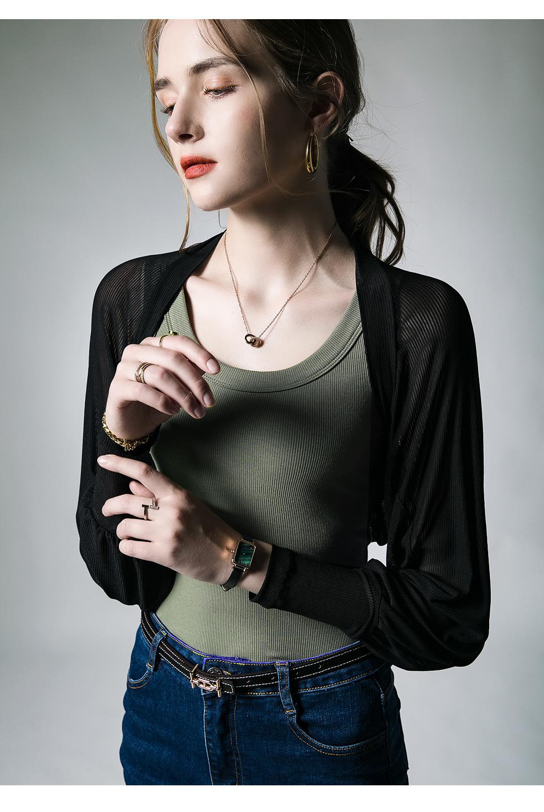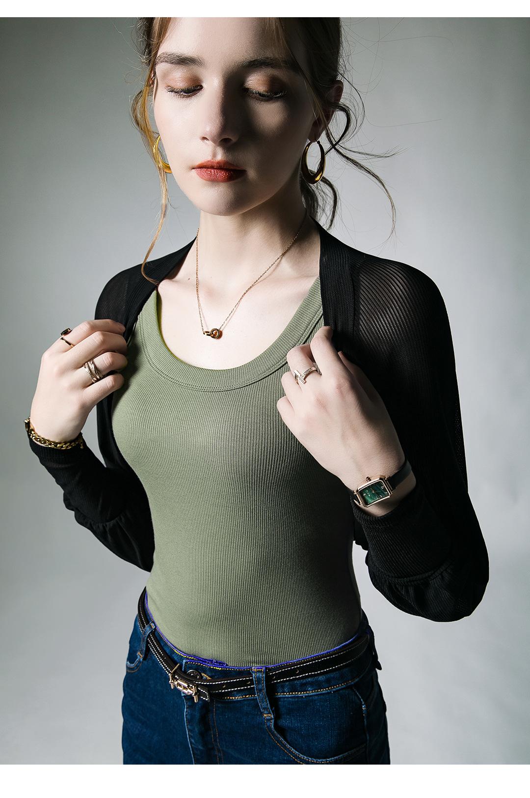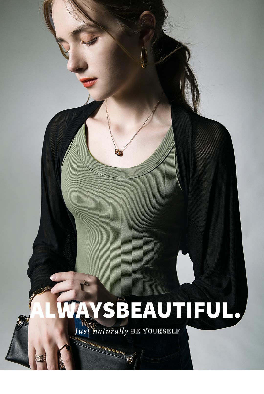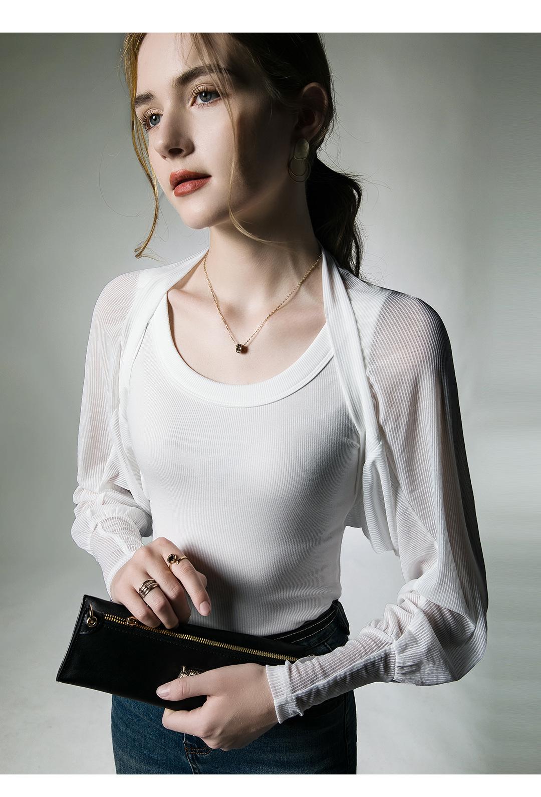 Otoño Nuevo Diseño Sentido Chaqueta Corta Color Sólido Malla Transpirable Camisa Pequeña Top Francés Manga Larga