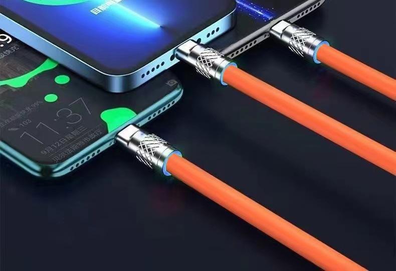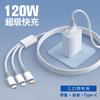 Cable de datos uno a tres para máquina de aleación de zinc de 120 W, adecuado para Apple Android, cable de carga tres en uno TIPO C, carga rápida