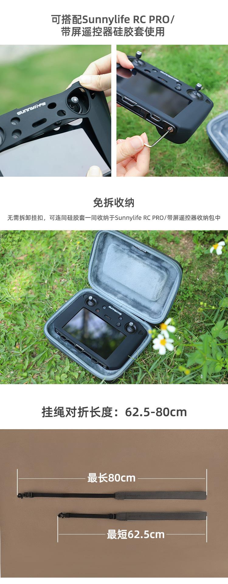 No es necesario quitar el gancho y se puede guardar junto con la funda de silicona en la bolsa de almacenamiento para el control remoto con pantalla Sunnylife RC PRO.