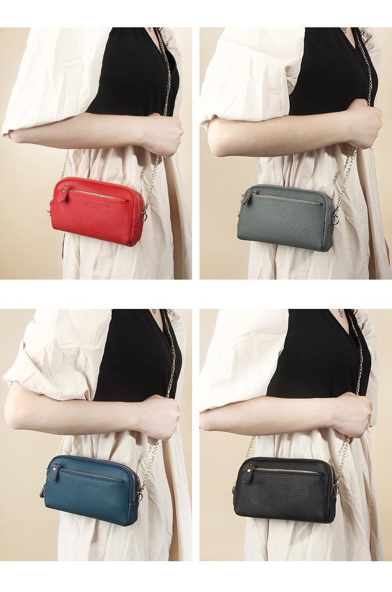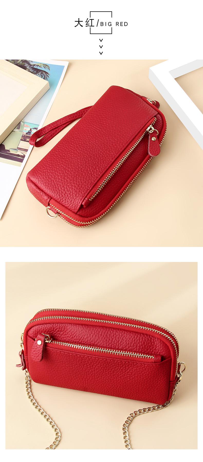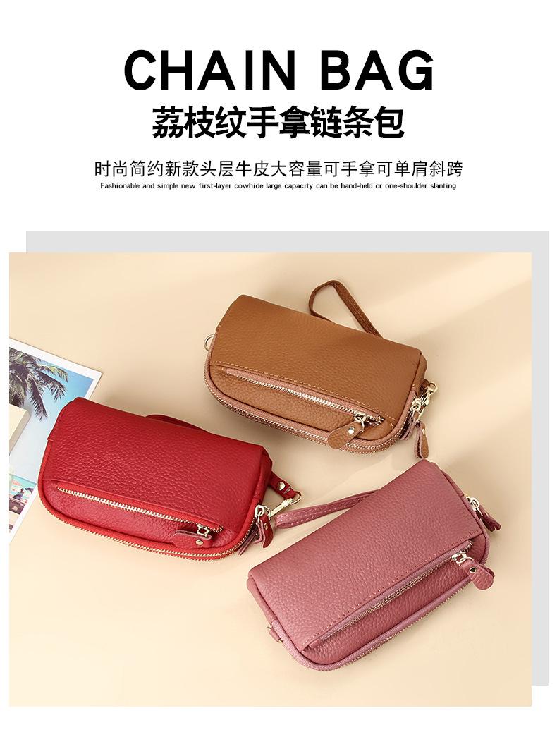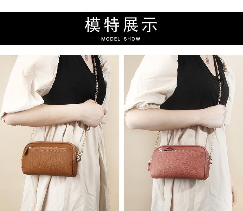 Bolso bandolera de piel de vaca de primera capa para mujer, moderno y versátil, con cadena de cuero genuino, para teléfono móvil, 2022