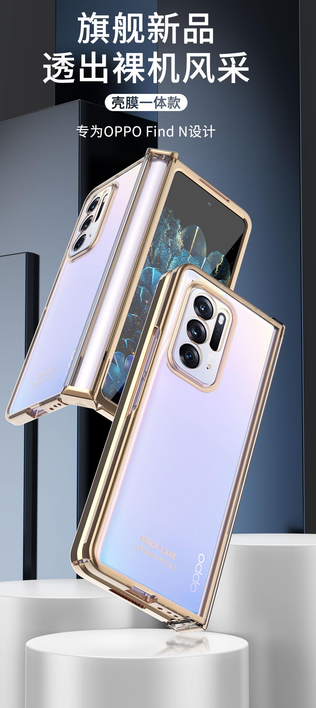 Funda para teléfono móvil Oppo Find N, plegable, galvanizada, transparente, con bisagras, anticaídas, color sólido, 5 g