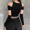 Compra Ropa de Mujer Transfronteriza de Estilo Europeo y Americano 2024 Otoño e Invierno Nueva Moda Etiquetado Slim Cuello Redondo Hombro Descubierto Camiseta Corta para Mujer al por mayor en Joom.pro