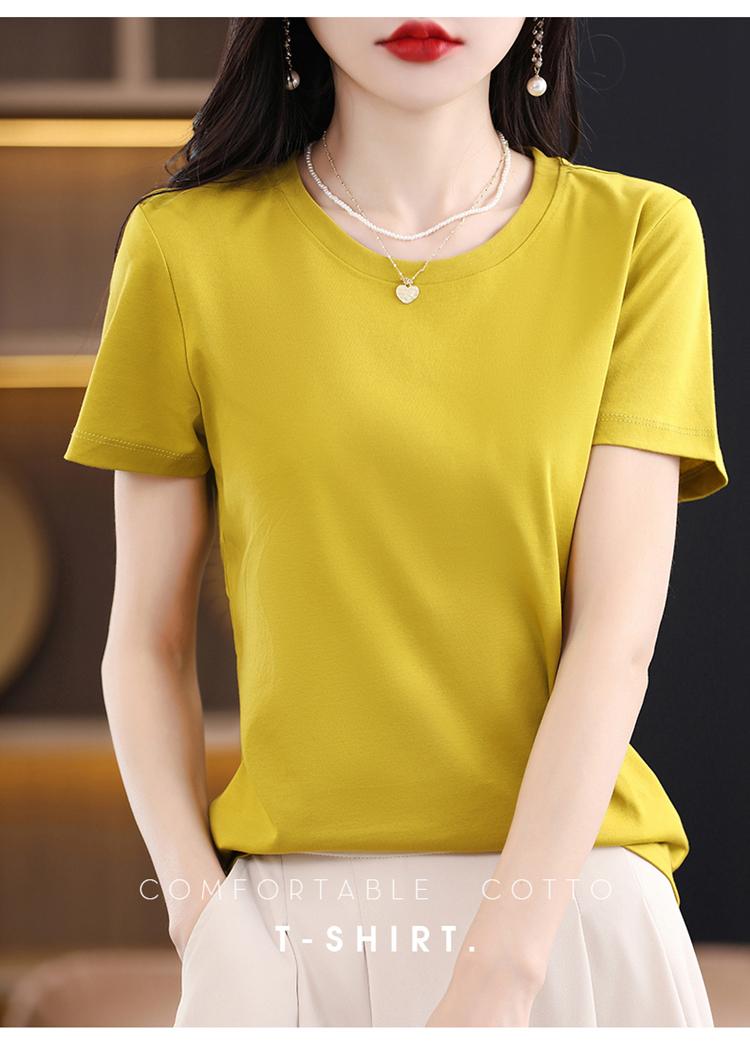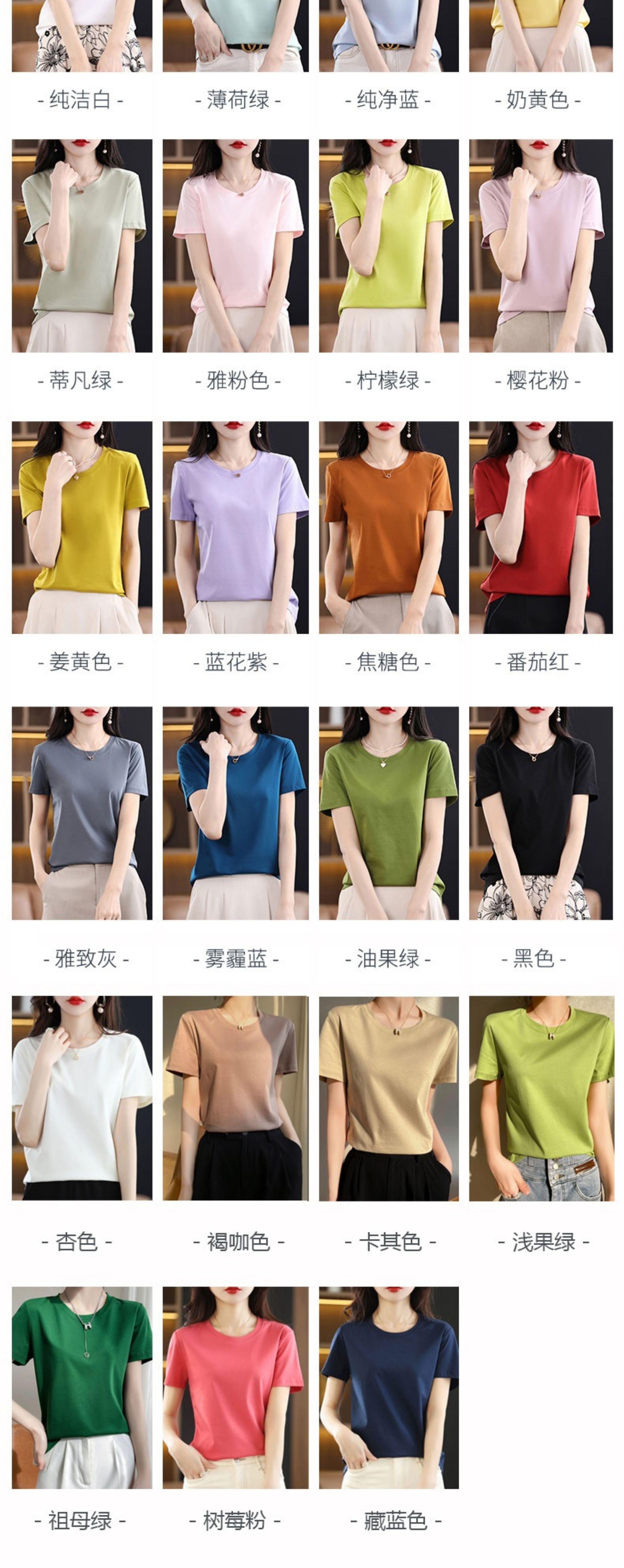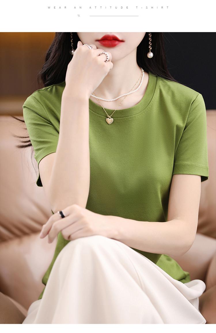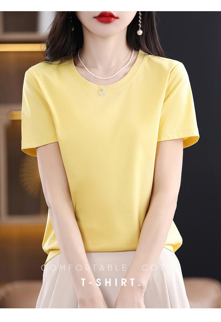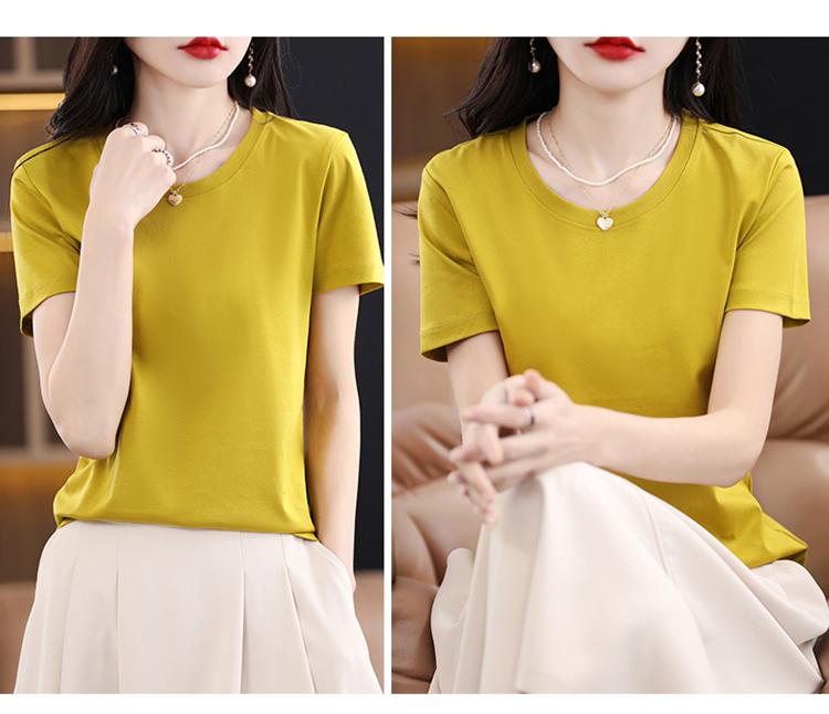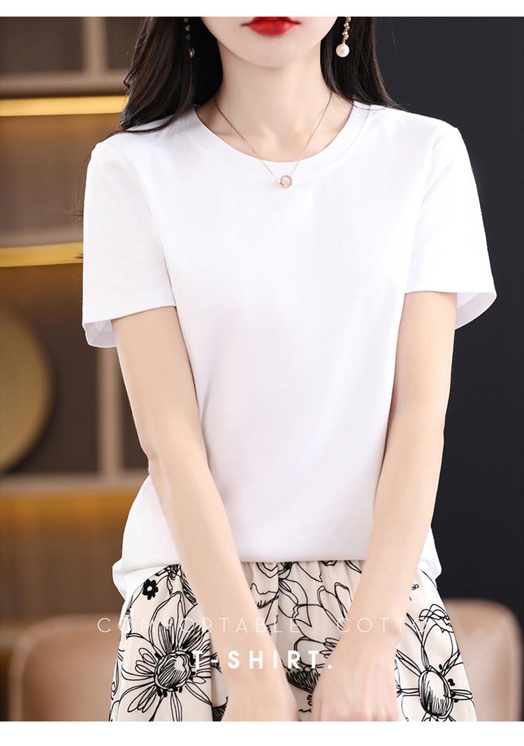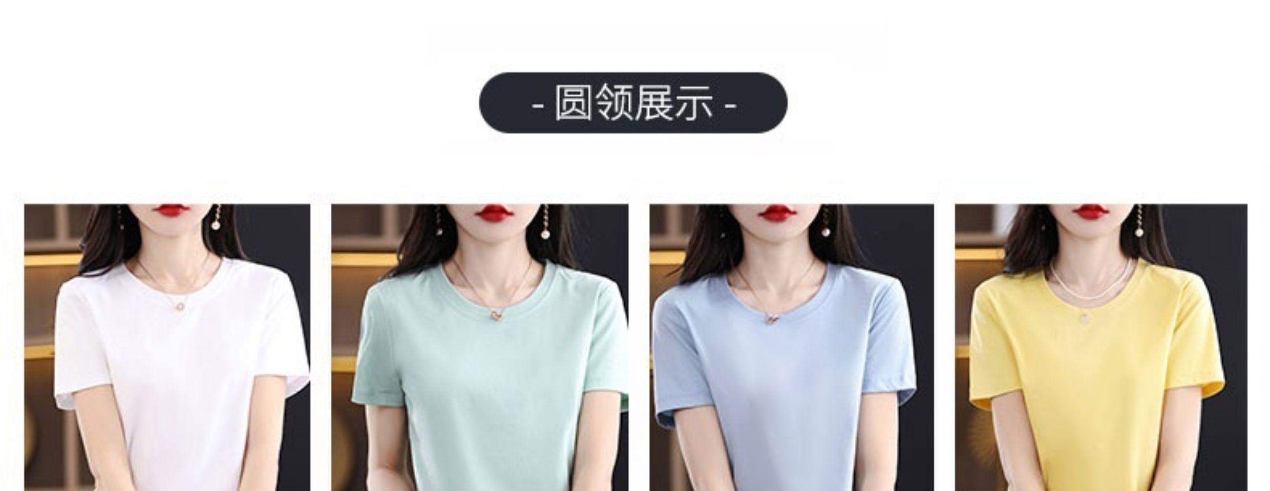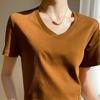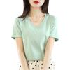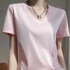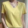 Camiseta de algodón mercerizado con cuello en V para mujer, manga corta, verano 2023, manga corta, blanca, holgada, cuello redondo, algodón puro, cuello de pollo, color liso