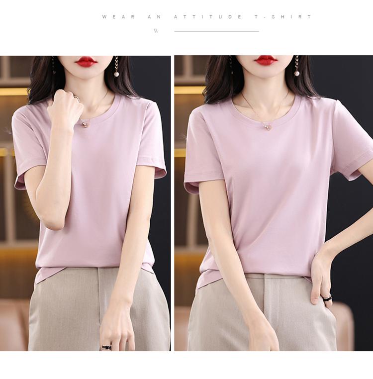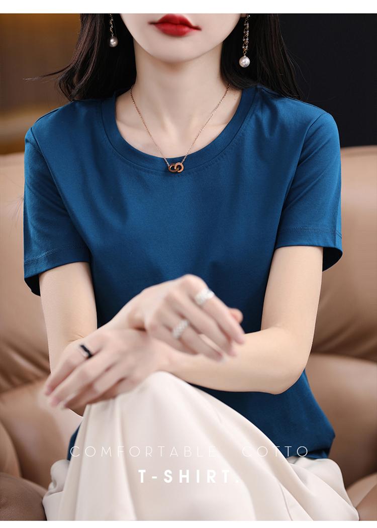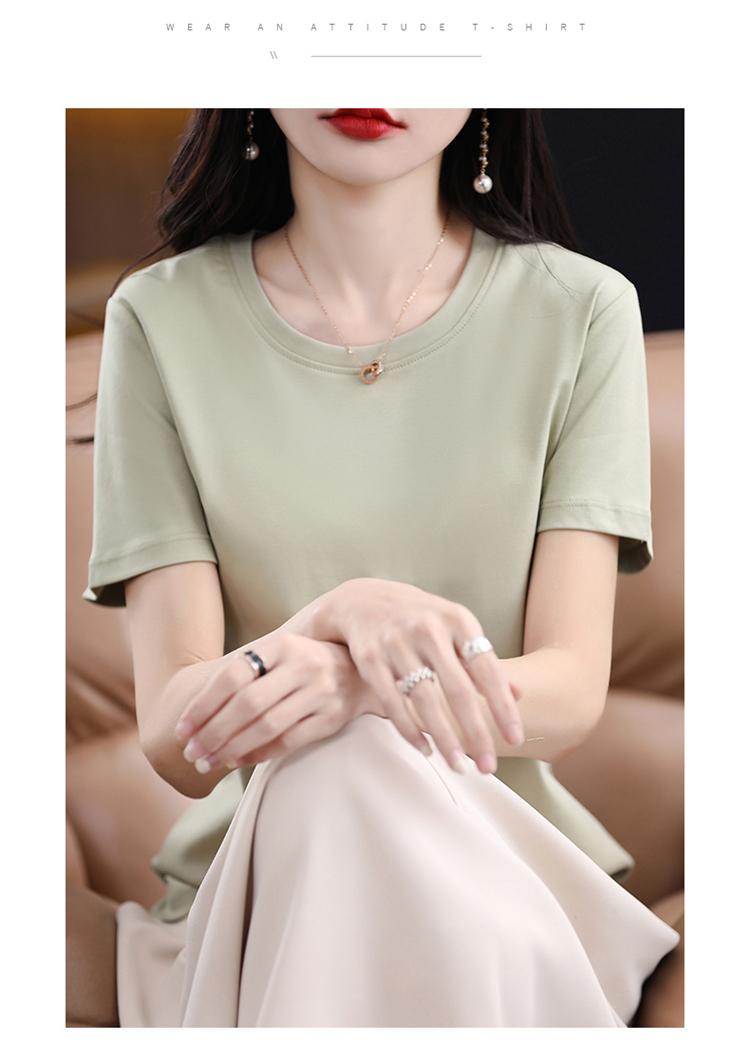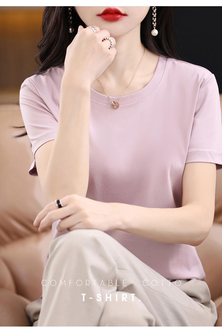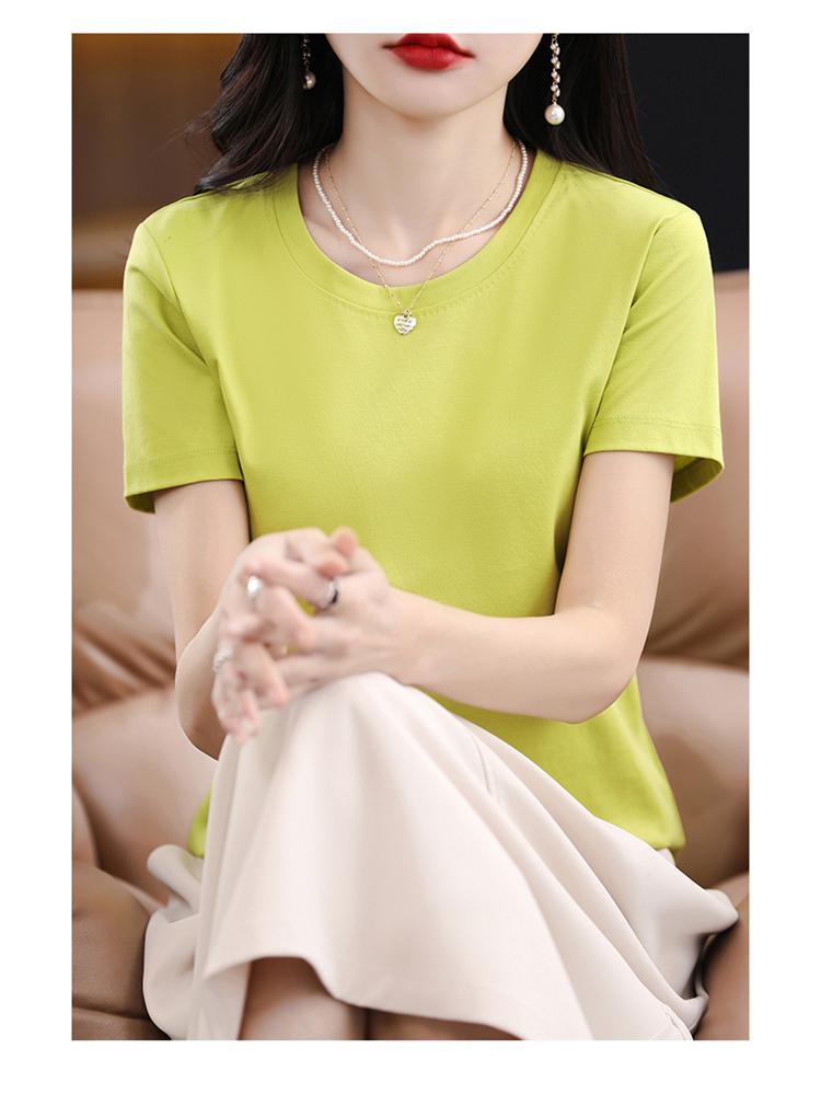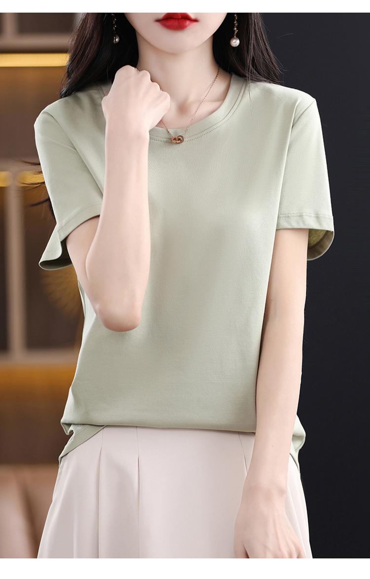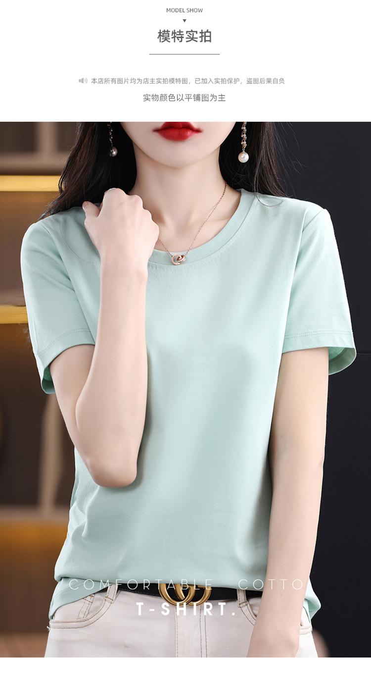 Camiseta de algodón mercerizado con cuello en V para mujer, manga corta, verano 2023, manga corta, blanca, holgada, cuello redondo, algodón puro, cuello de pollo, color liso