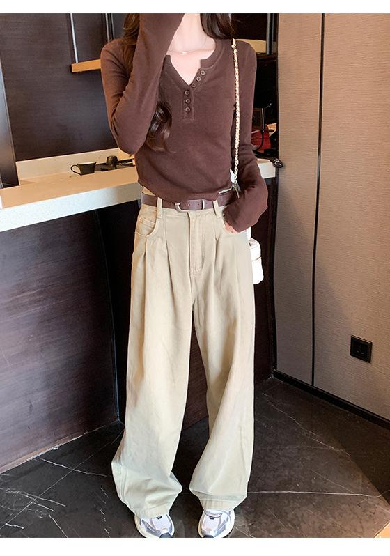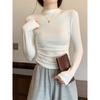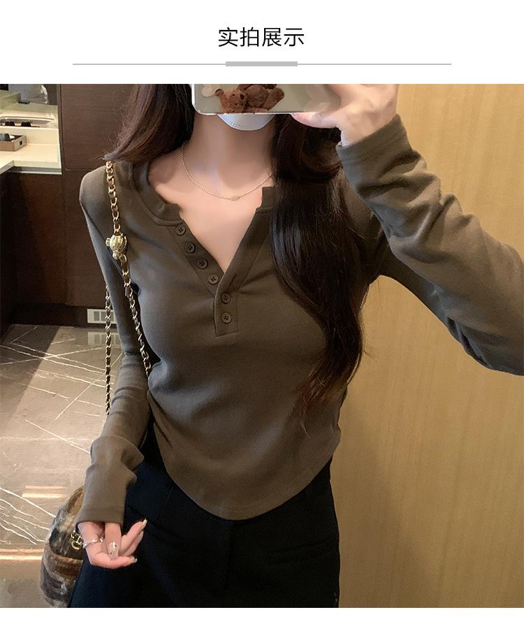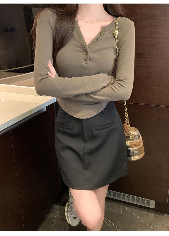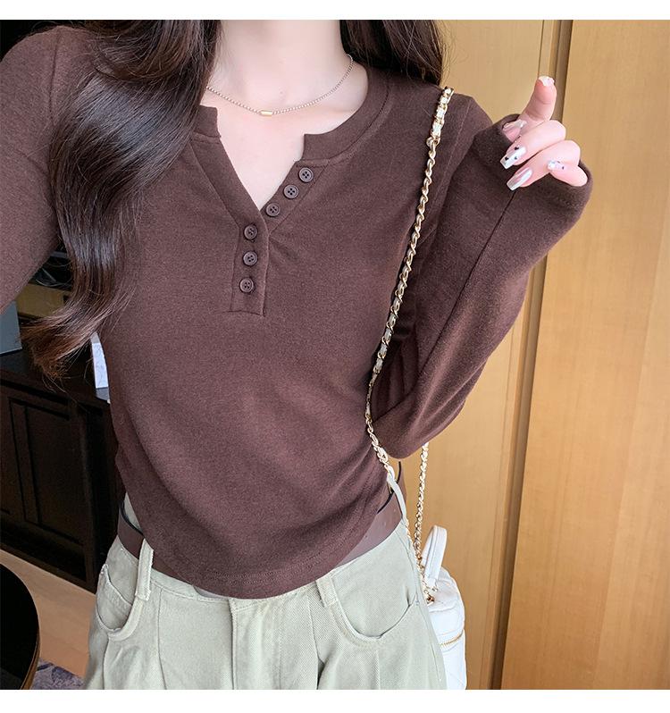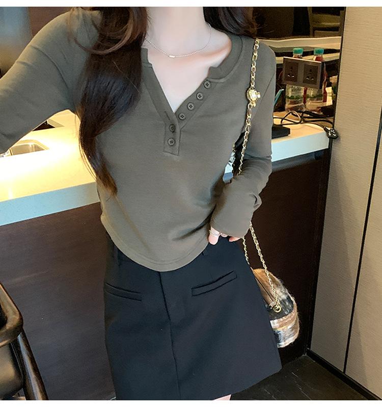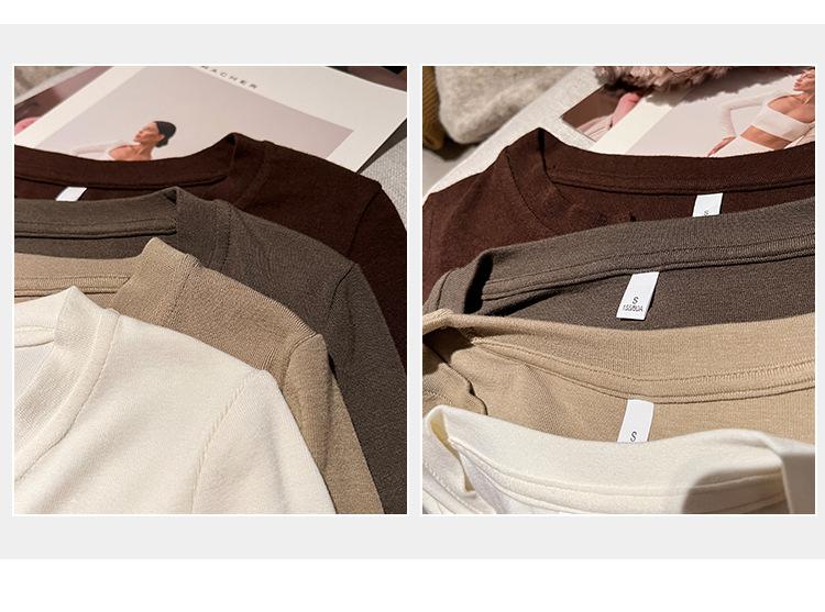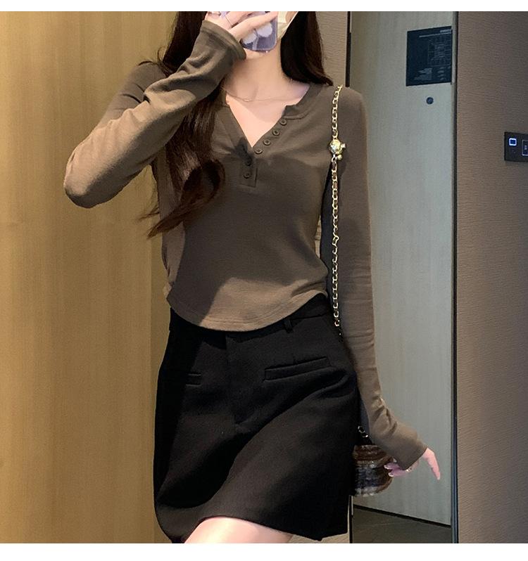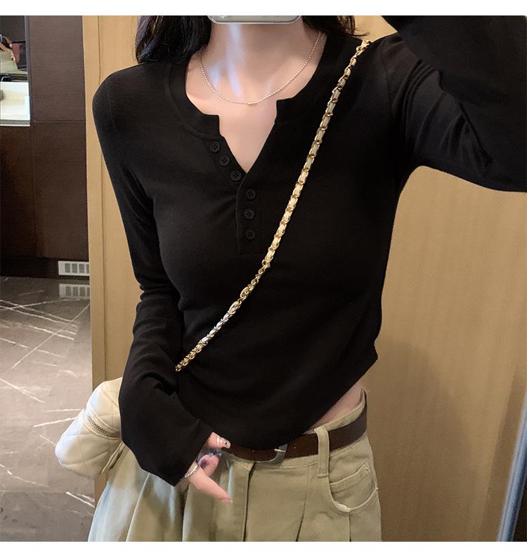 Ropa Nueva de Otoño 2023 Principios de Otoño Camisa Básica de Color Puro con Botones Camiseta de Aspecto Adelgazante Top de Manga Larga Ropa Interior para Mujer Otoño e Invierno