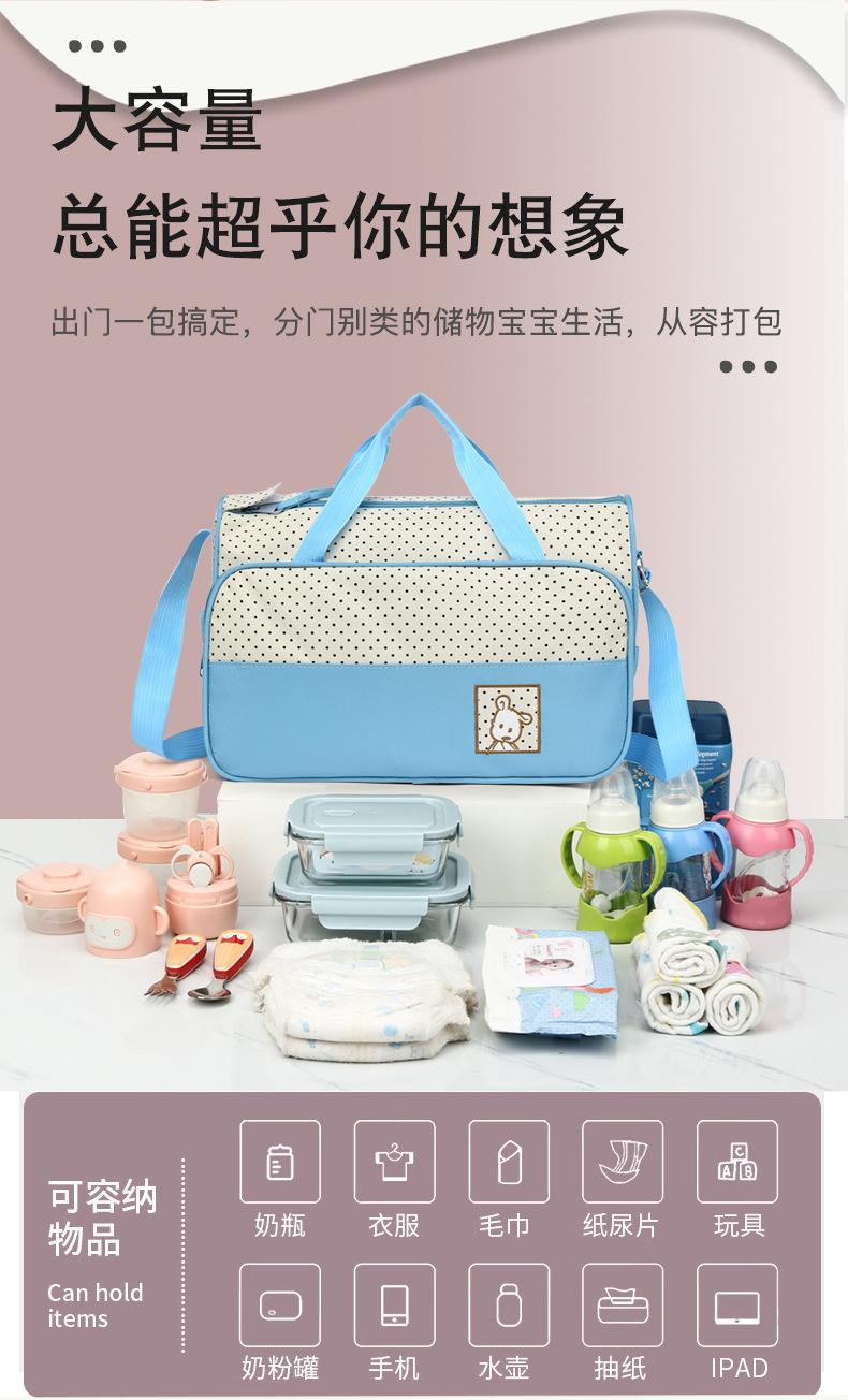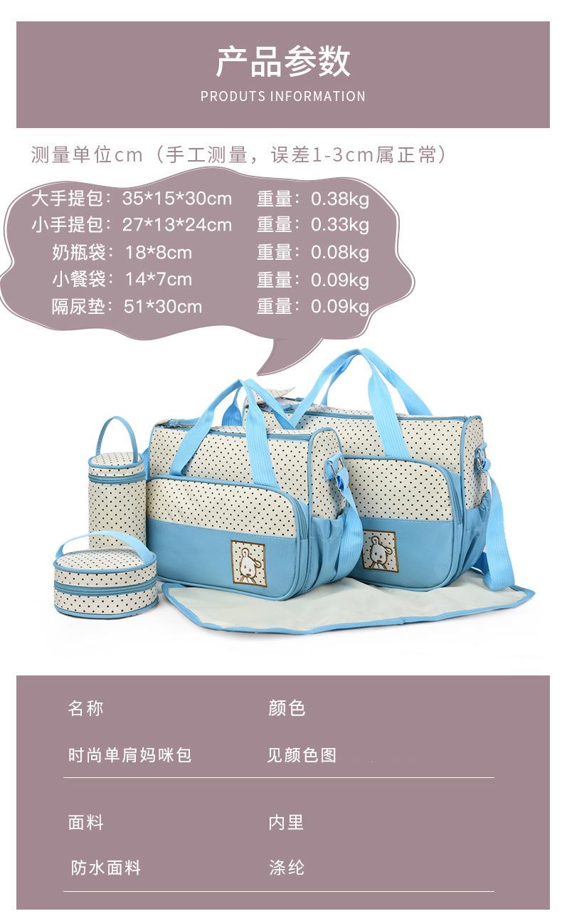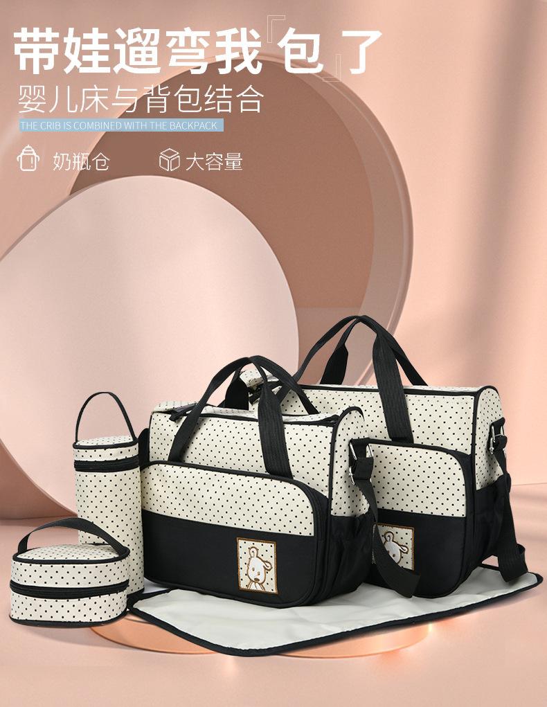 Set de cinco piezas madre y bebé bolsa de mamá gran capacidad multifunción bolsa para madre y bebé para llevar al hombro o cruzada bolsa para pañales