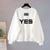 Blusa de manga larga gruesa con forro polar de estilo coreano para otoño e invierno, diseño americano de alta calidad, cuello redondo, ropa informal para mujer