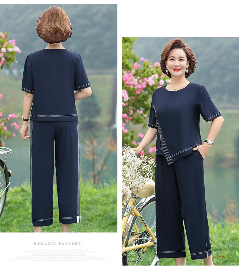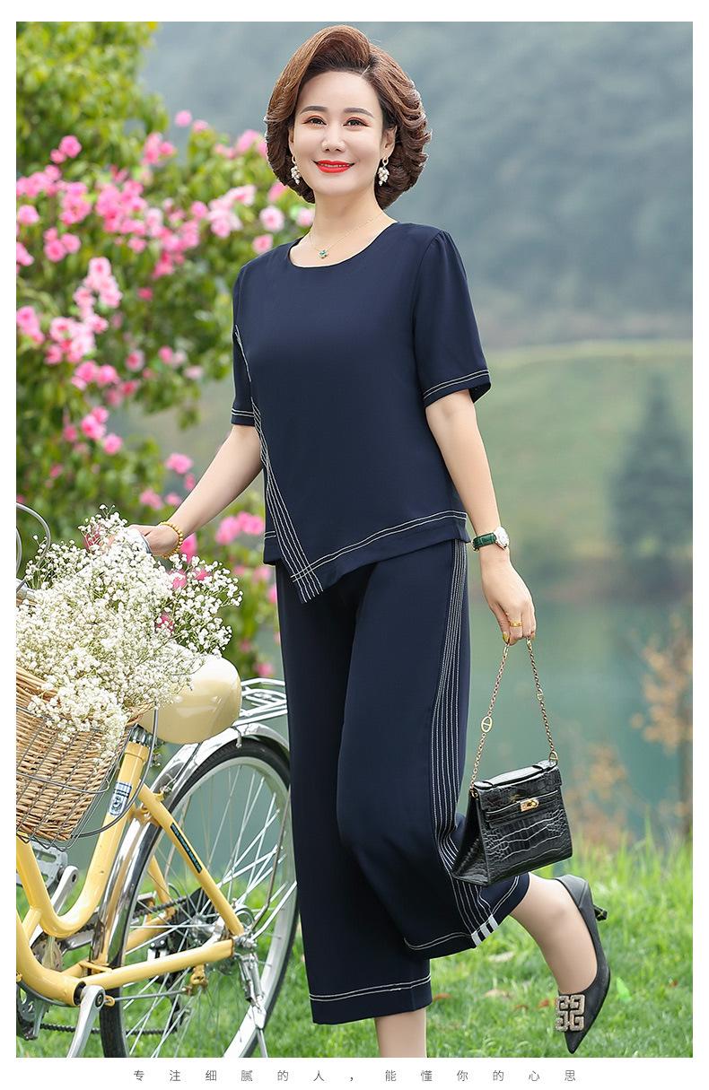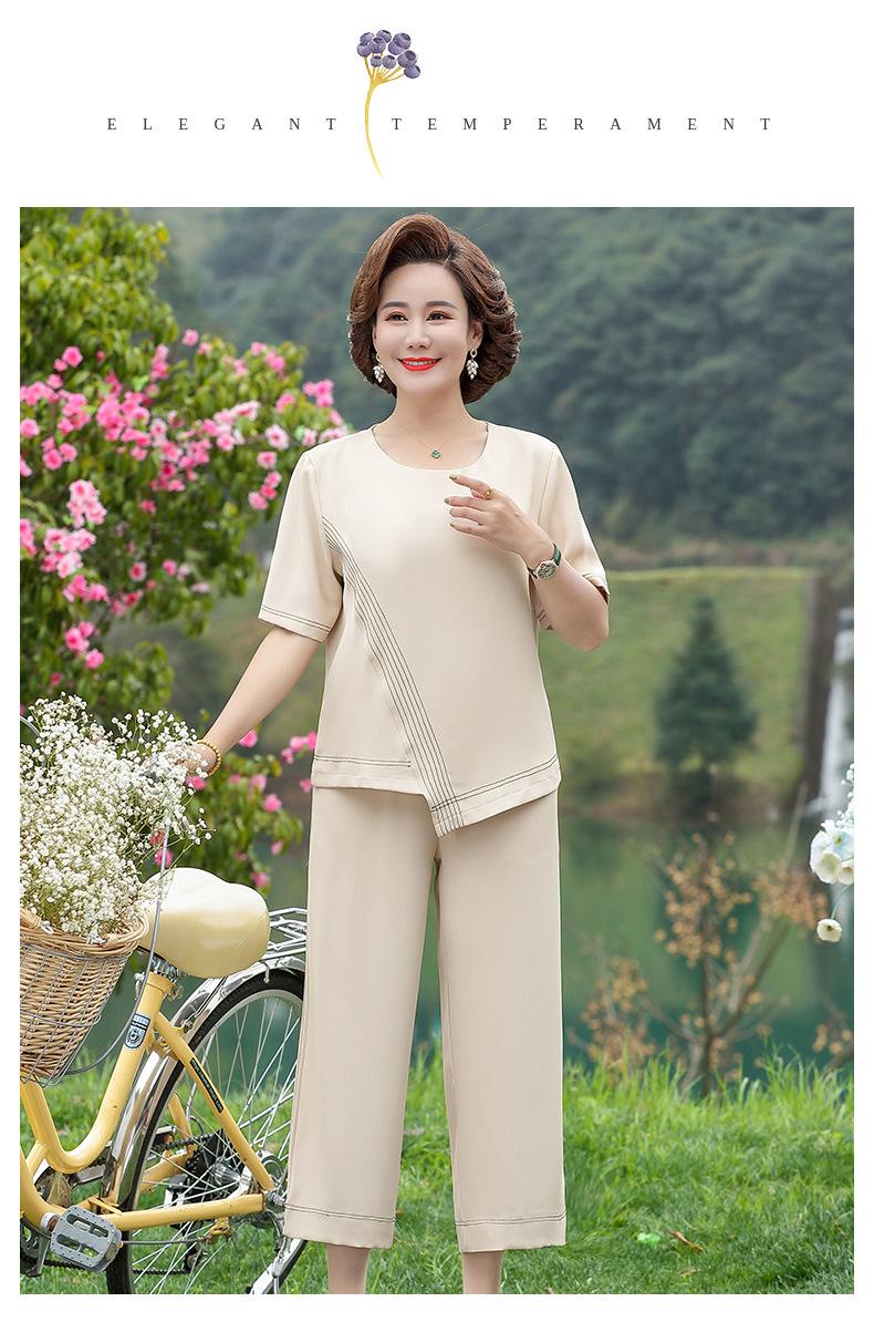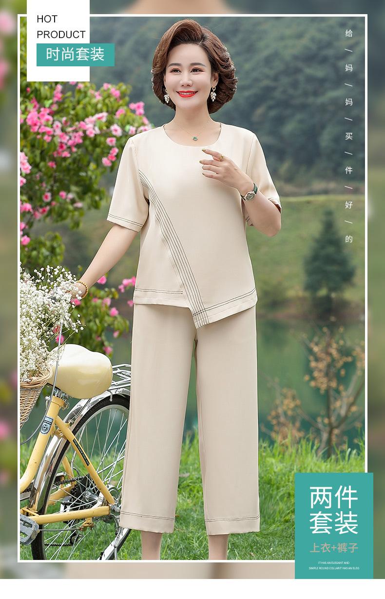 Vestido Huayi Oveja Madre Estilo Occidental Traje de Verano para Mujeres de Mediana Edad 40 Años 50 Camiseta de Manga Corta Traje Casual de Dos Piezas para Mediana Edad