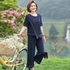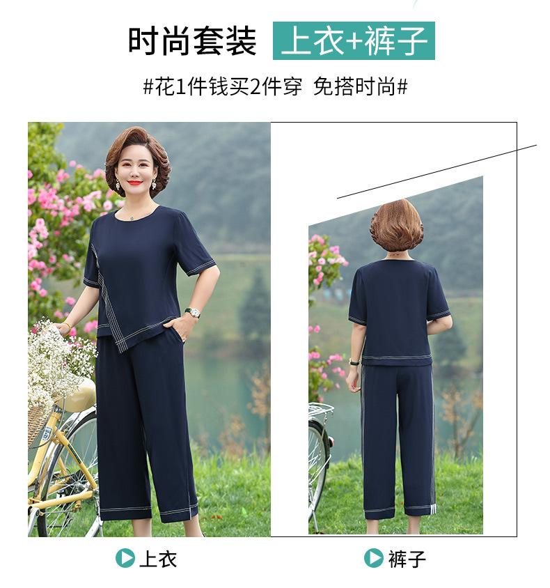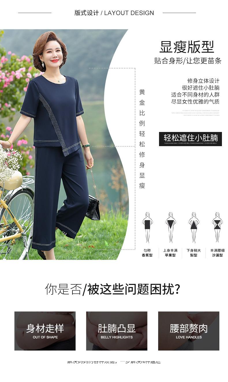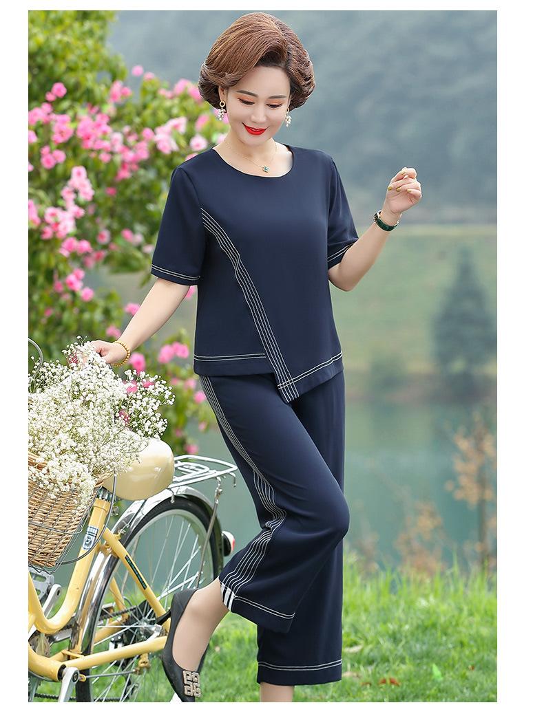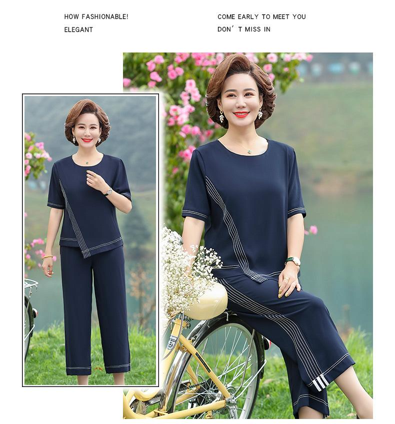 Vestido Huayi Oveja Madre Estilo Occidental Traje de Verano para Mujeres de Mediana Edad 40 Años 50 Camiseta de Manga Corta Traje Casual de Dos Piezas para Mediana Edad