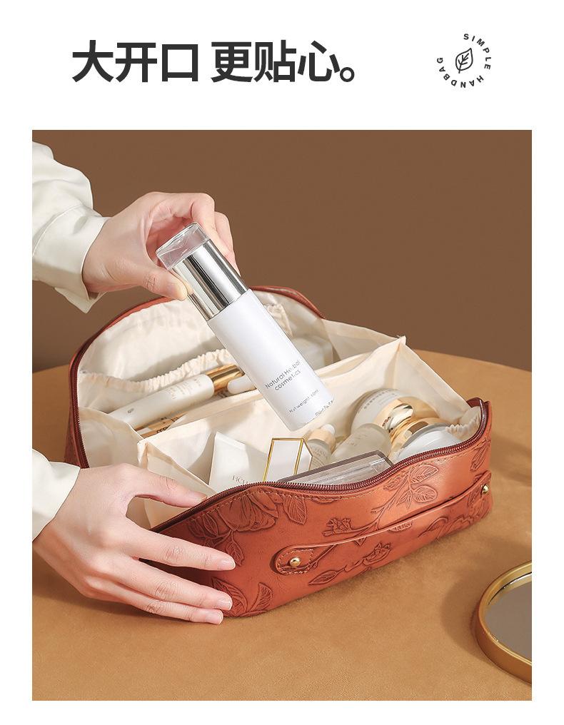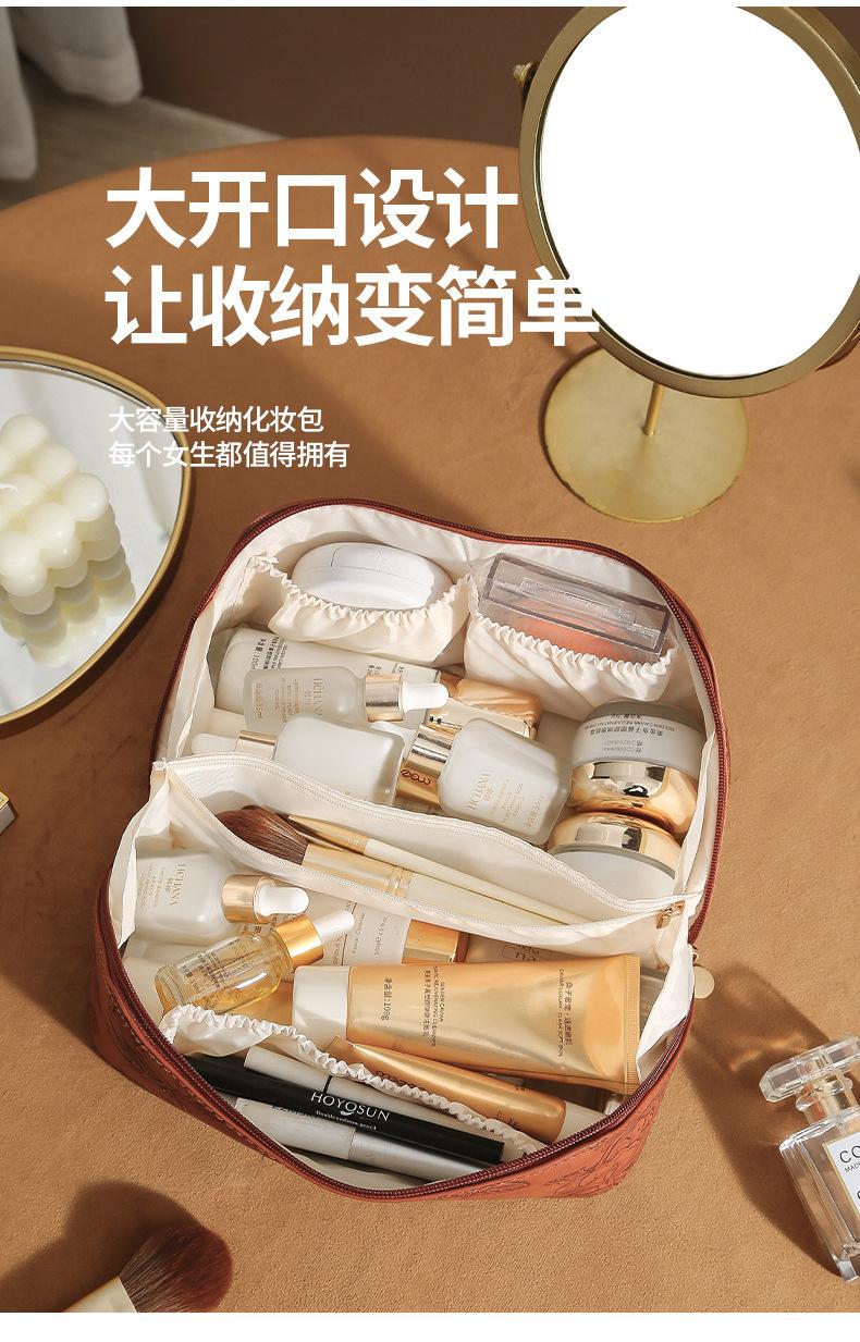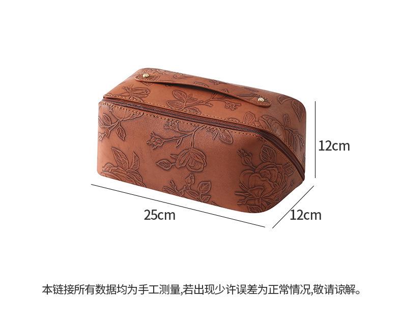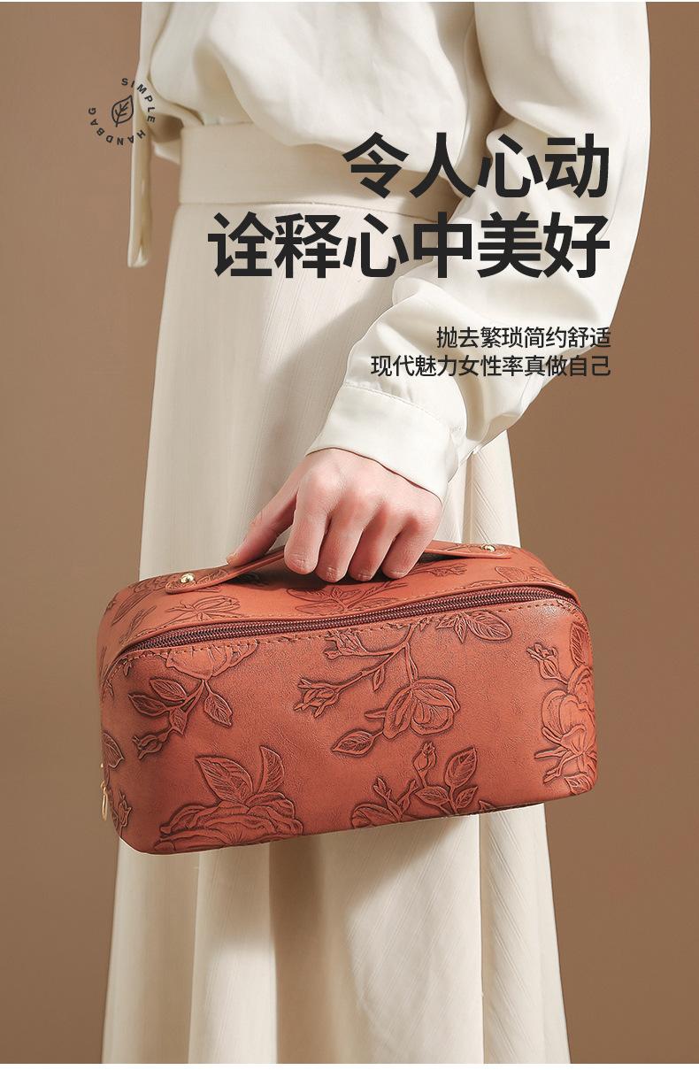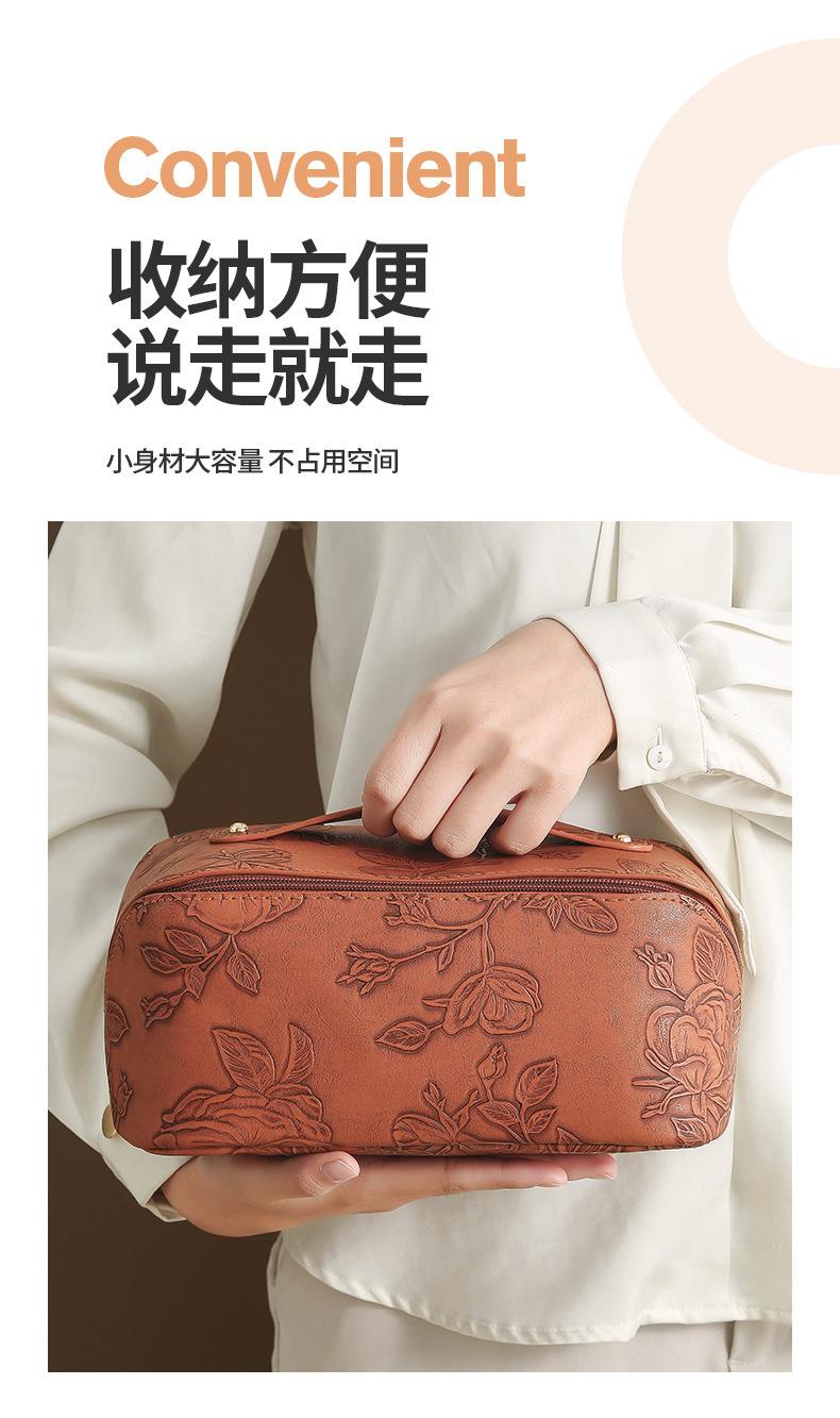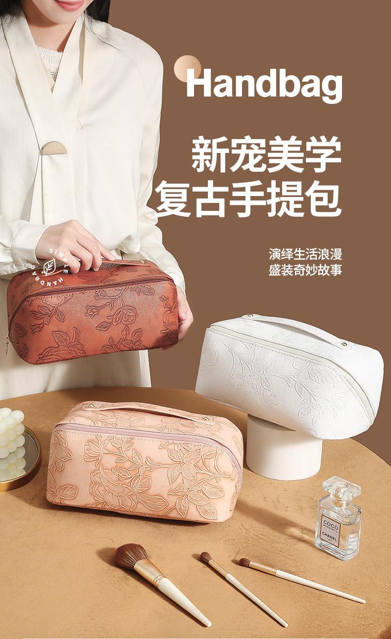 Compra Bolsa Cosmética de Color Retro a la Moda Pu Gran Capacidad Multifuncional Estilo Retro Estéreo en Relieve Bolso Satchel Bolsa Cosmética de Alta Gama al por mayor en Joom.pro