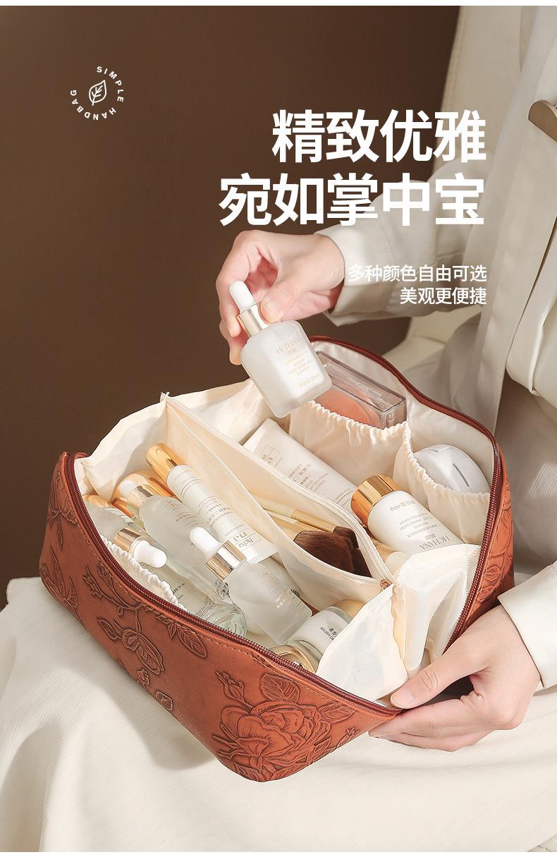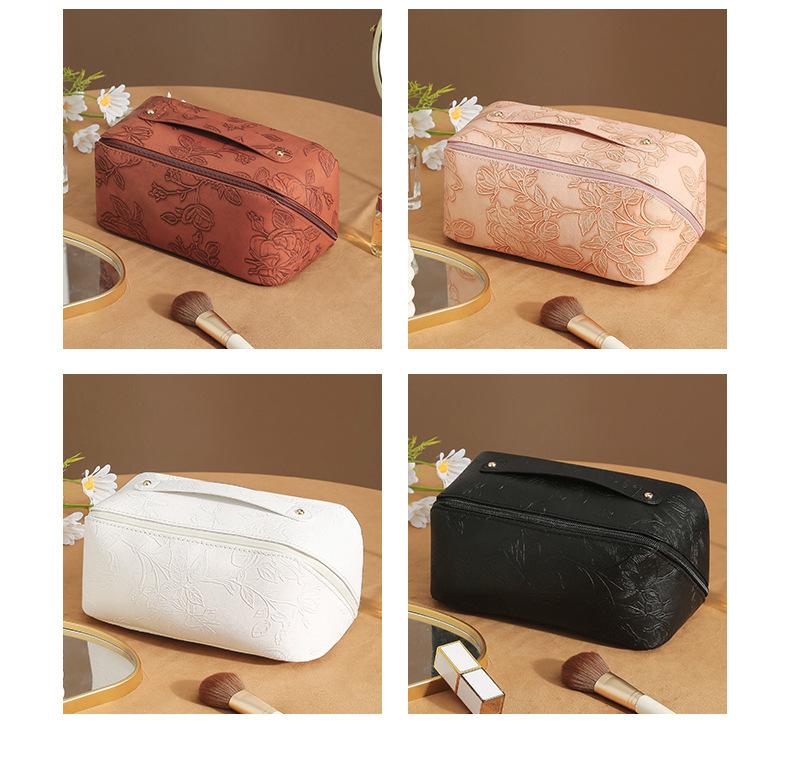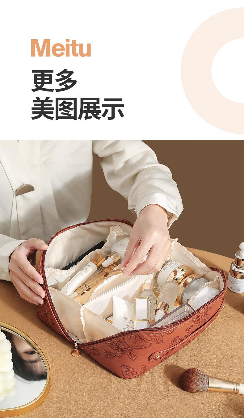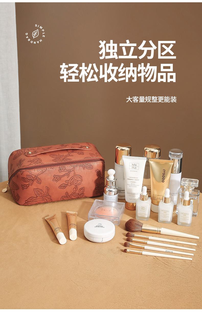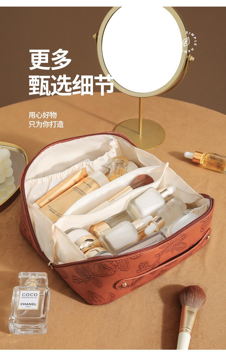 Compra Bolsa Cosmética de Color Retro a la Moda Pu Gran Capacidad Multifuncional Estilo Retro Estéreo en Relieve Bolso Satchel Bolsa Cosmética de Alta Gama al por mayor en Joom.pro