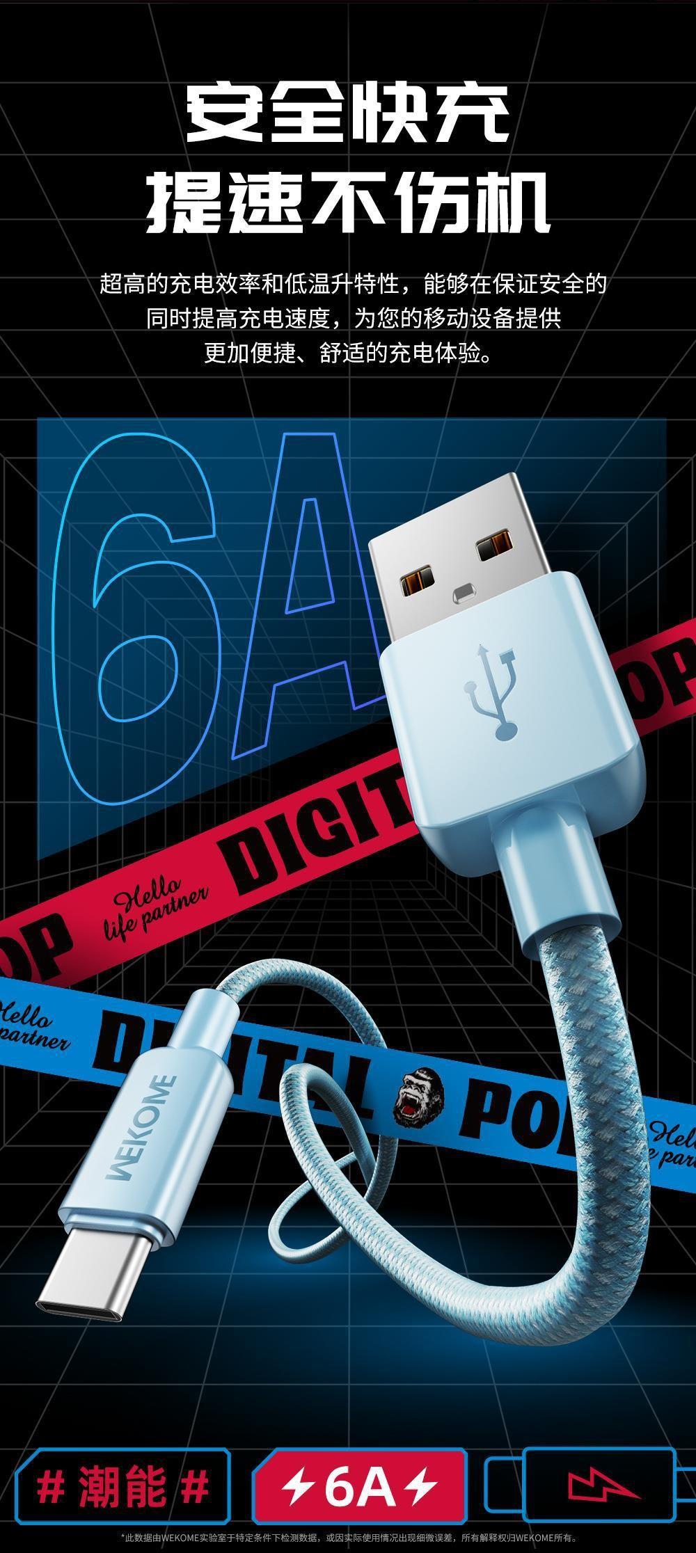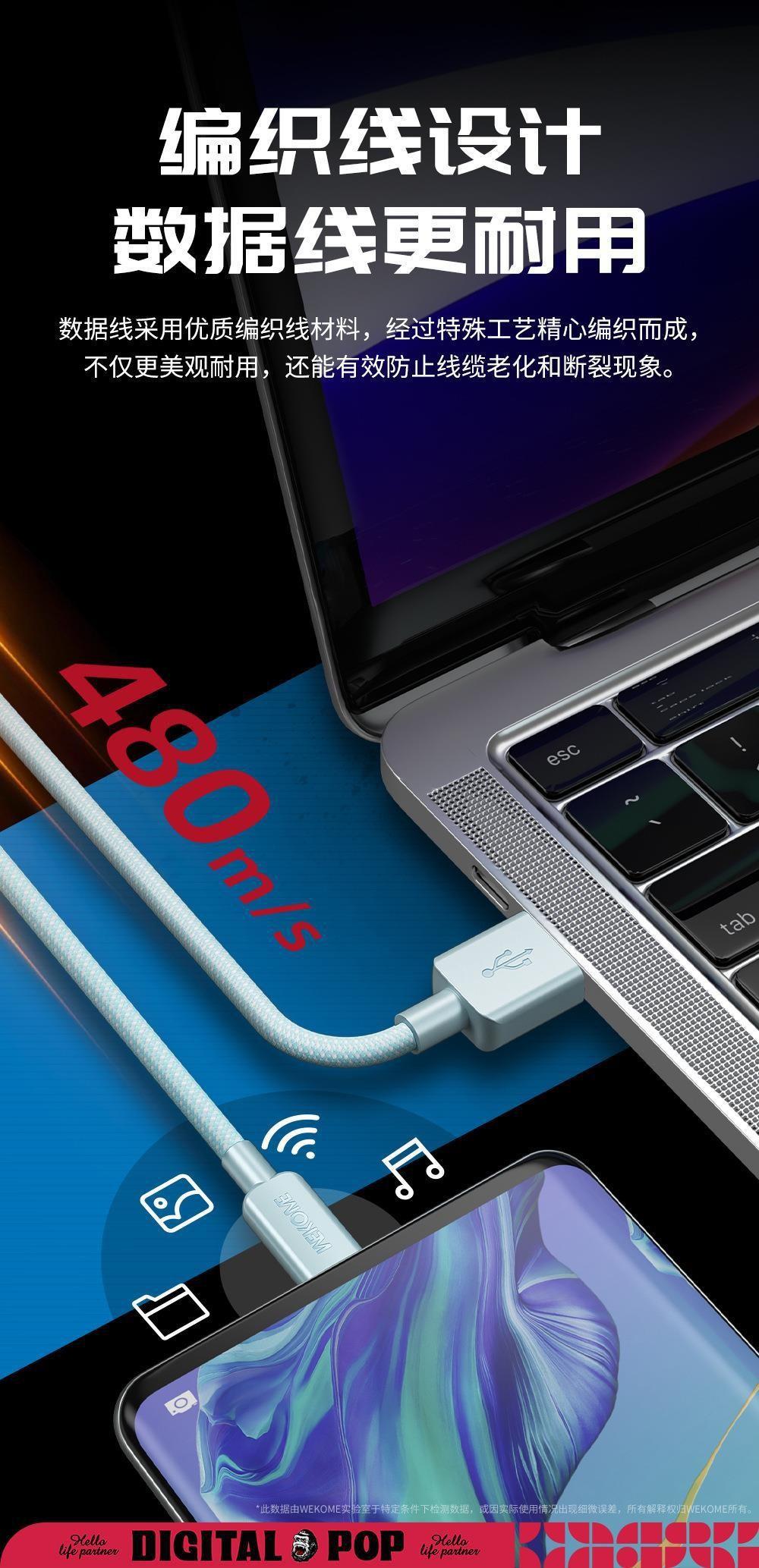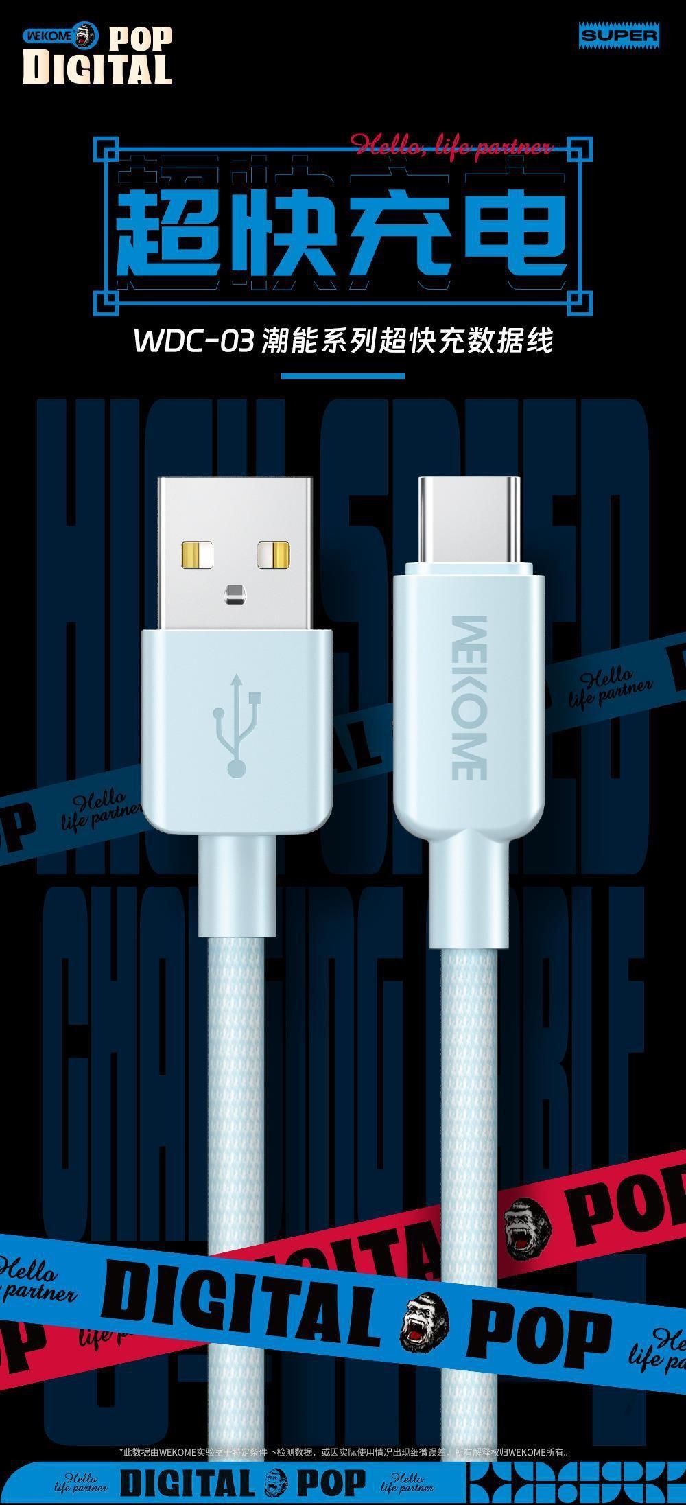 Cable de datos trenzado de nailon de la serie de moda WEKOME de 6 A de carga rápida, compatible con el cable de carga tres en uno Apple TYPE-C.