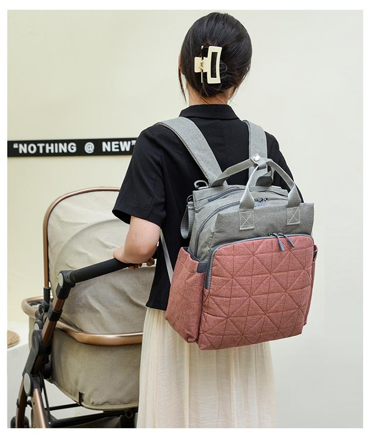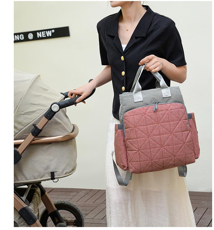 Venta al por mayor de fábrica Bolsa de mamá nueva línea de bordado de celosía de diamantes bolsa para madre y bebé multifuncional bolsa de mamá para salir bolso de hombro ligero
