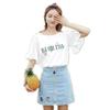 Bordado 2019 verano nuevo coreano para mujer manga trompeta manga corta camiseta señoras estudiante abrigo marea una generación de cabello