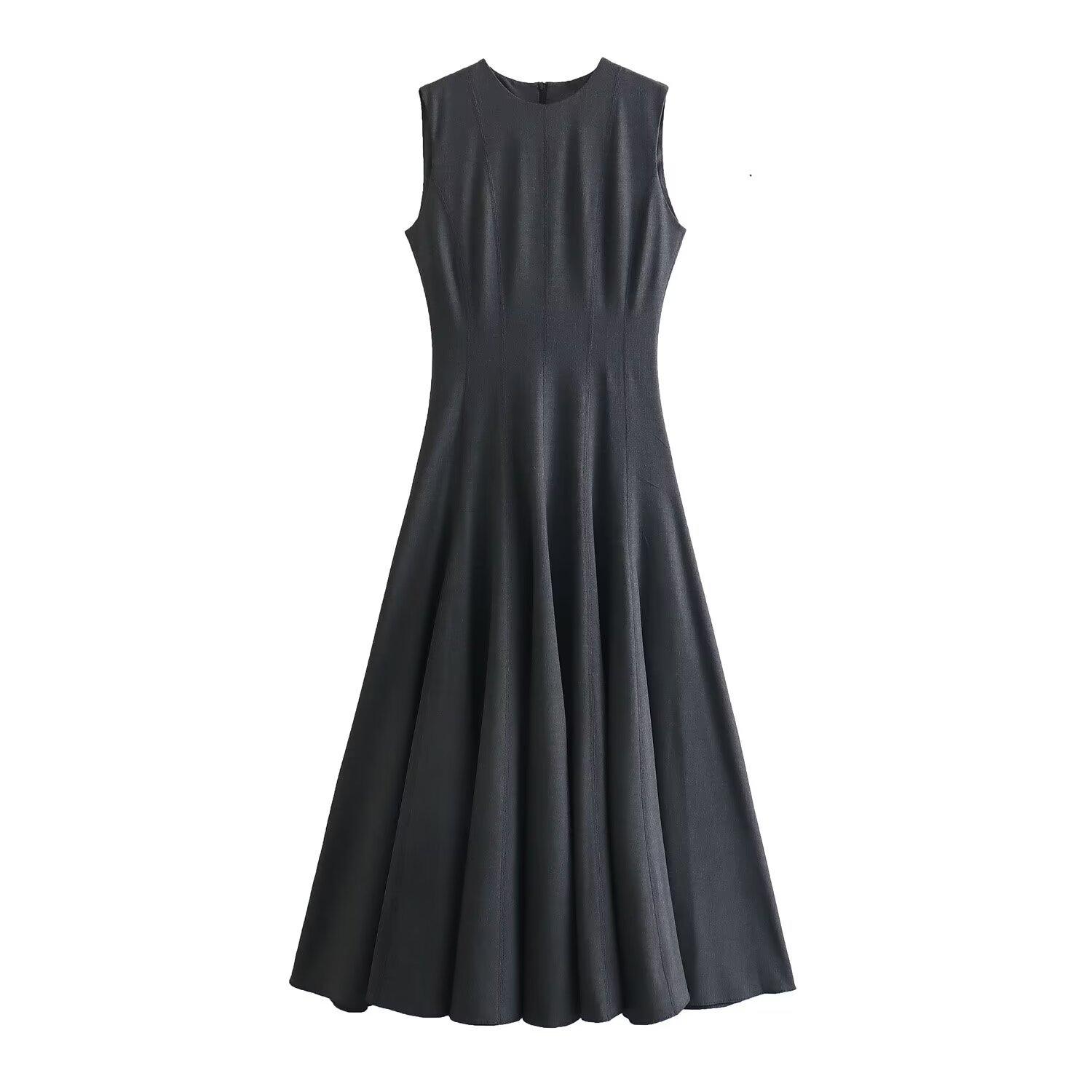 Compra Venta al por mayor de ropa para mujer transfronteriza europea y americana, primavera 2024, nuevo, elegante, ligero, maduro, plisado, sin mangas, cuello redondo, vestido largo al por mayor en Joom.pro